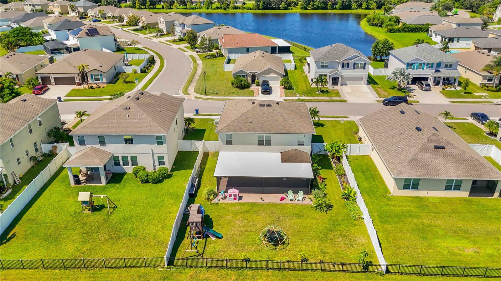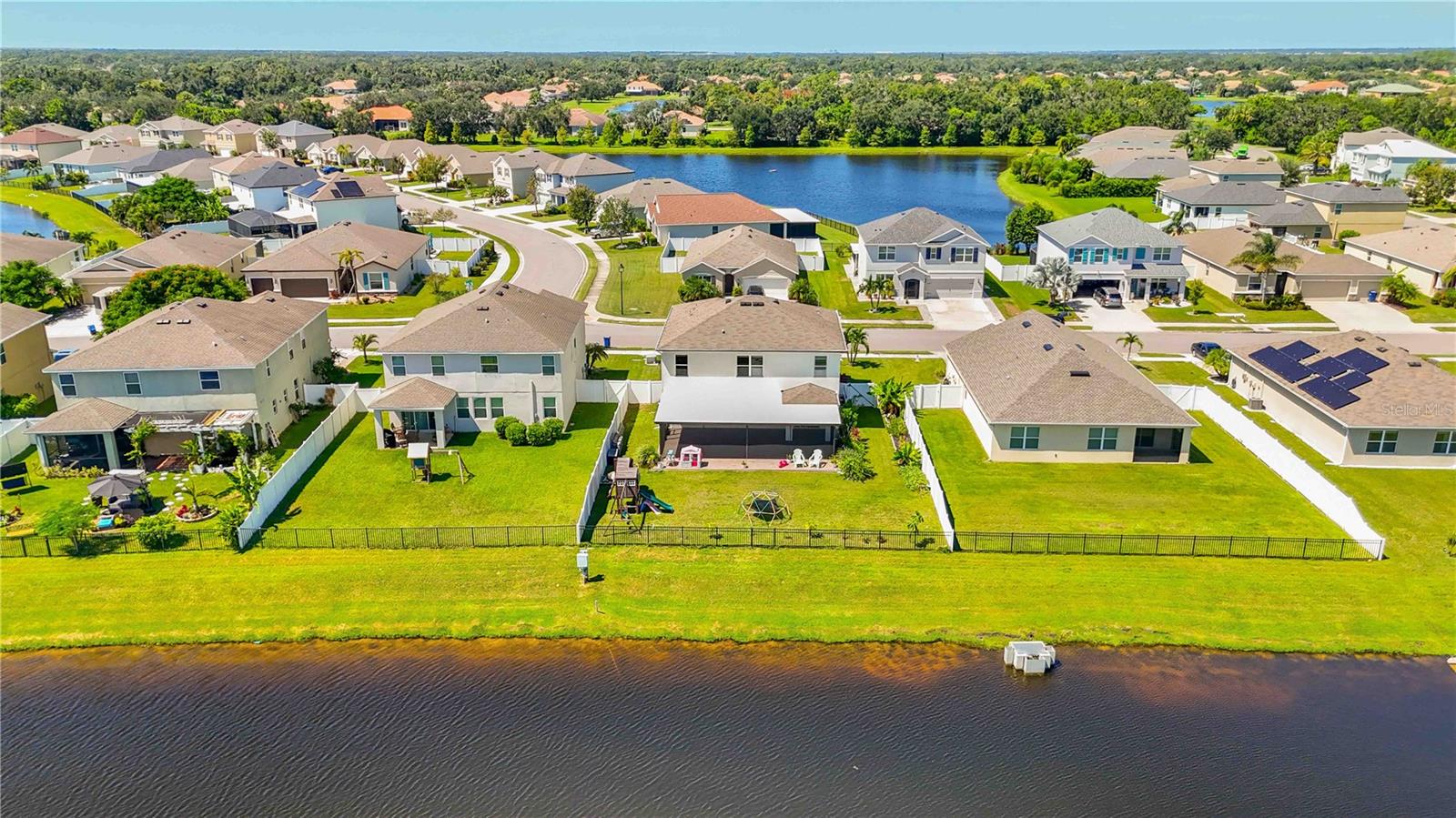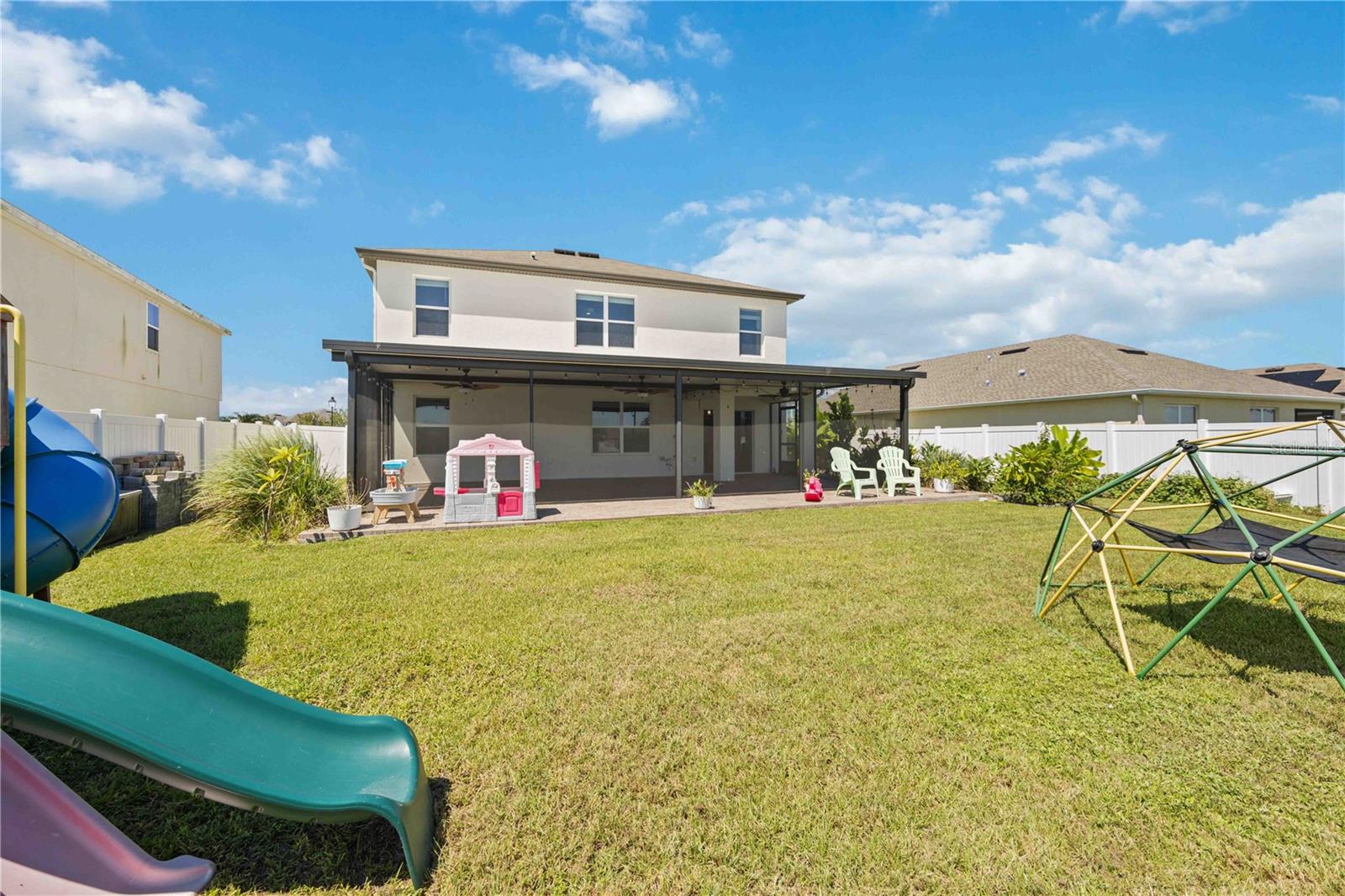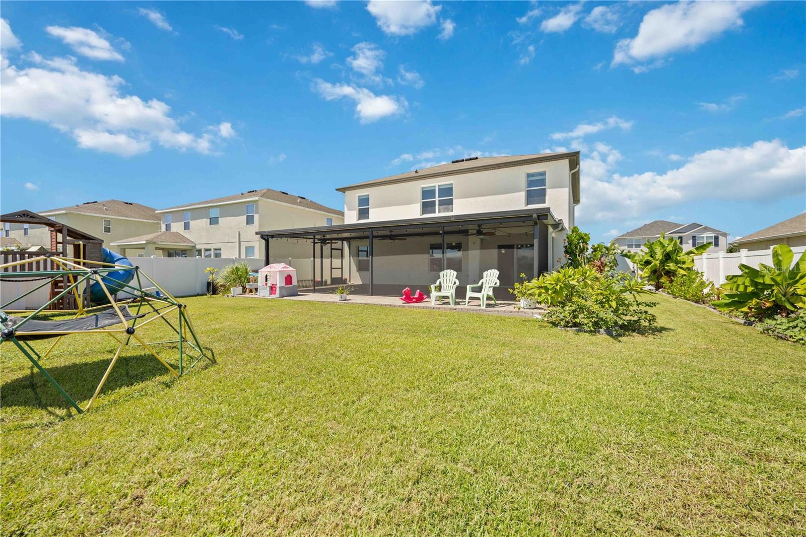 Welcome to your dream home in the peaceful, gated community of Del Tierra, offering NO CDD fees and LOW HOA! This stunning 5-bedroom, 3-bath home features a flex/game room, loft, and open-concept design, all set on a block-on-block construction with a beautiful fountain and large pond view. With over 2,590 sq. ft. of living space and a huge fully fenced backyard, this property is perfect for entertaining or simply relaxing. Enjoy your oversized covered lanai complete with three ceiling fans...while taking in breathtaking Florida sunrises. Recent Updates Include: Fresh interior and exterior paint. New kitchen cabinets and a newer dishwasher. New toilets and exhaust fans in all bathrooms. Hyper filter, and new coils for improved air quality. 30-amp breaker for generator hookup. Inside, you'll be welcomed with style! Crown molding on the first floor with luxury vinyl flooring throughout, NO CARPET, and a thoughtfully designed open kitchen featuring stainless steel appliances, granite countertops, a tile backsplash, and new cabinetry. A flex/game room sits just off the entry, while a guest bedroom and full bath provide convenience on the main level. Upstairs, the oversized master suite boasts dual vanities with granite countertops, a stand-up shower, and two separate walk-in closets. A great-sized laundry room is located on the second floor. Three additional bedrooms, a full bath, and a loft complete the second floor. Outside, you'll appreciate rain gutters, an extended paver driveway for extra parking, and a charming front covered porch, which is the perfect spot to unwind and enjoy spectacular sunsets. Reclaimed water Irrigation on the front and side of the home. Minutes to SR-64, I-75, and Ft. Hamer Bridge. Close to Gene Witt Elementary (bike ride away). Nearby shopping includes Costco and many more! Residents of Del Tierra enjoy access to a resort-style pool, fitness center, and gated entry, all while being surrounded by nature and tranquility. This home offers it all...stylish design, tasteful upgrades, and a prime location. Don't miss your chance to make it yours!