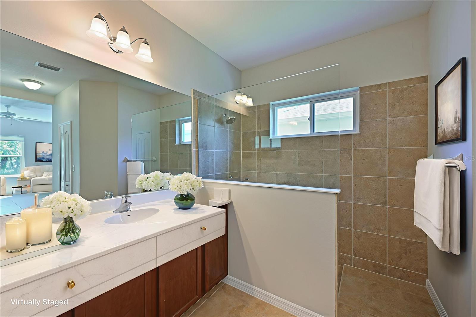 One or more photo(s) has been virtually staged. Welcome to a lifestyle of comfort and security in this Neal Homes Bay Breeze model, nestled on a peaceful cul-de-sac in the ideally situated Woodbrook community. This home offers the ultimate protection with IMPACT WINDOWS, a remote KEVLAR SCREEN on the lanai, and a WHOLE_HOUSE GENERATOR. The stylish, recently painted interior reflects a modern HGTV aesthetic, with a flexible den, custom primary suite closets, and elegant ceramic tile floors. Step outside to your private, south-facing yard, where upgraded landscaping and a paver driveway create a retreat with room to expand. Beyond your property, a short walk leads to the community center, where you can unwind by the pool or enjoy the playground. Experience the best of community life, gated living, all within easy reach of the UTC Mall and numerous dining options!