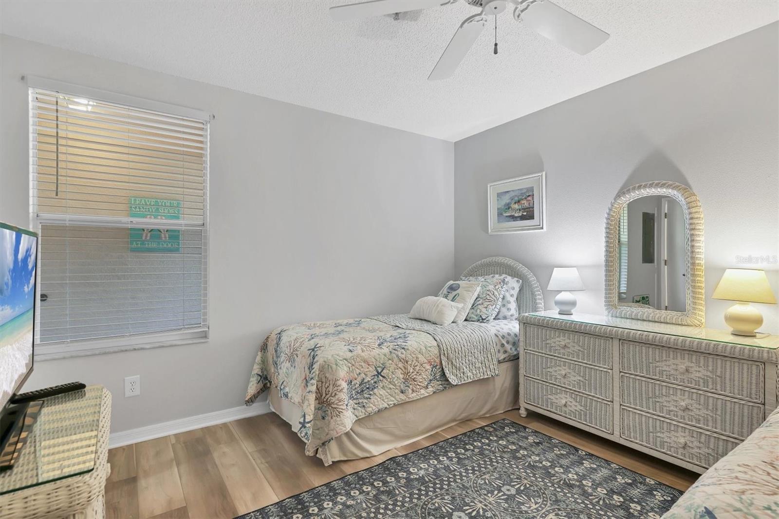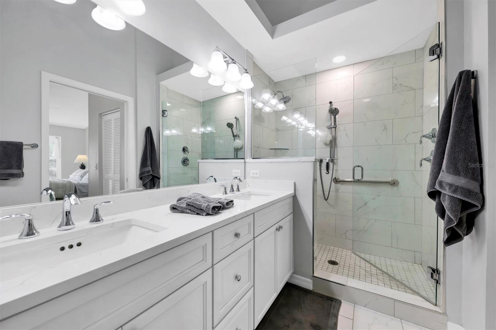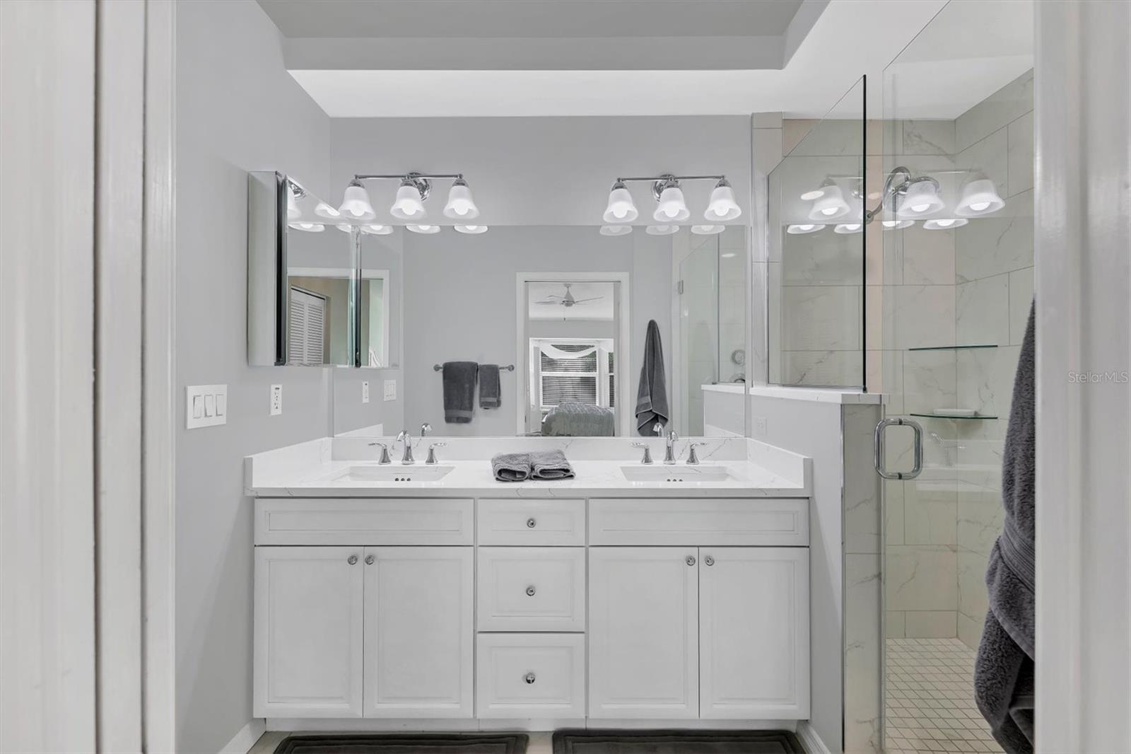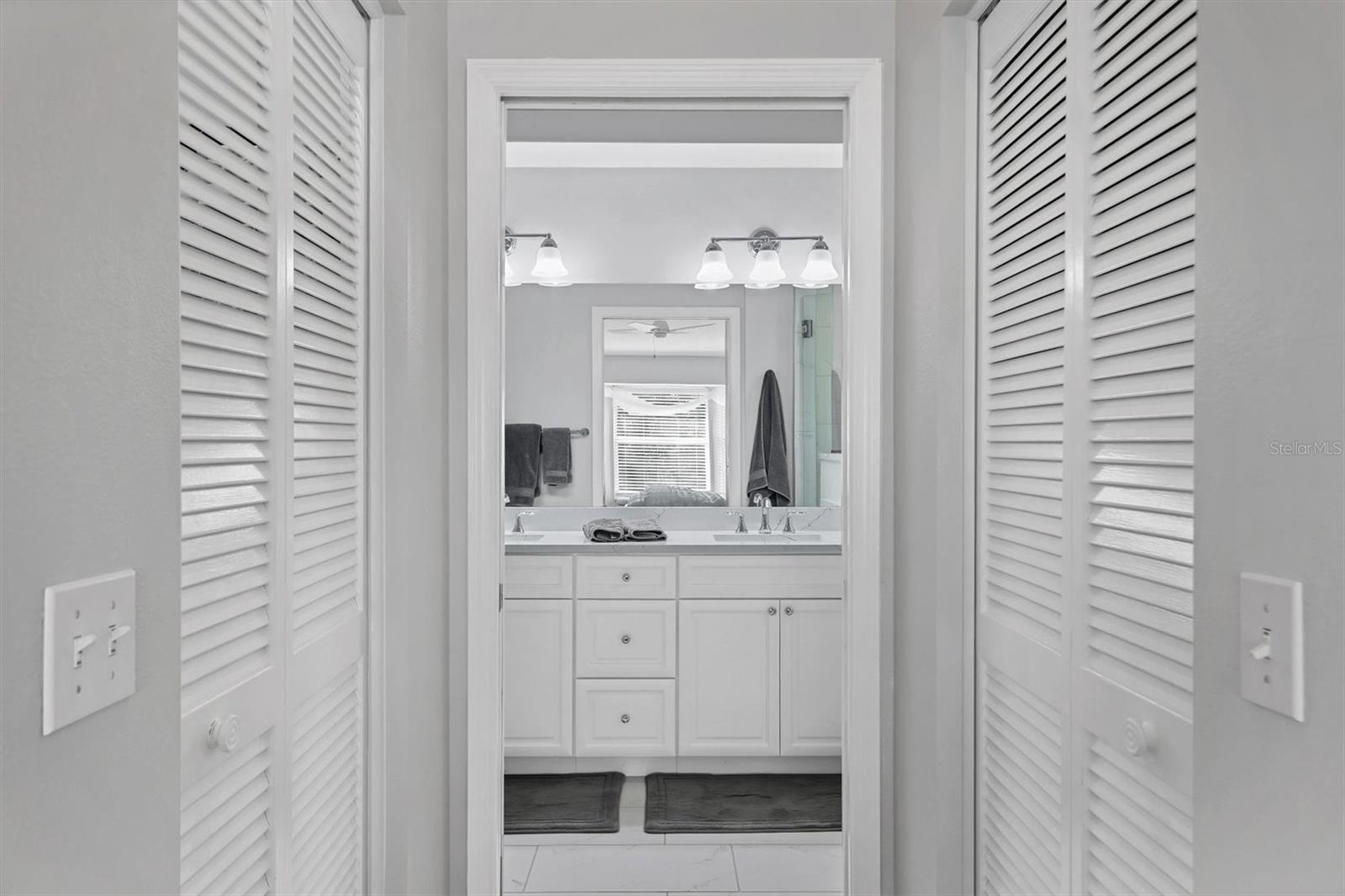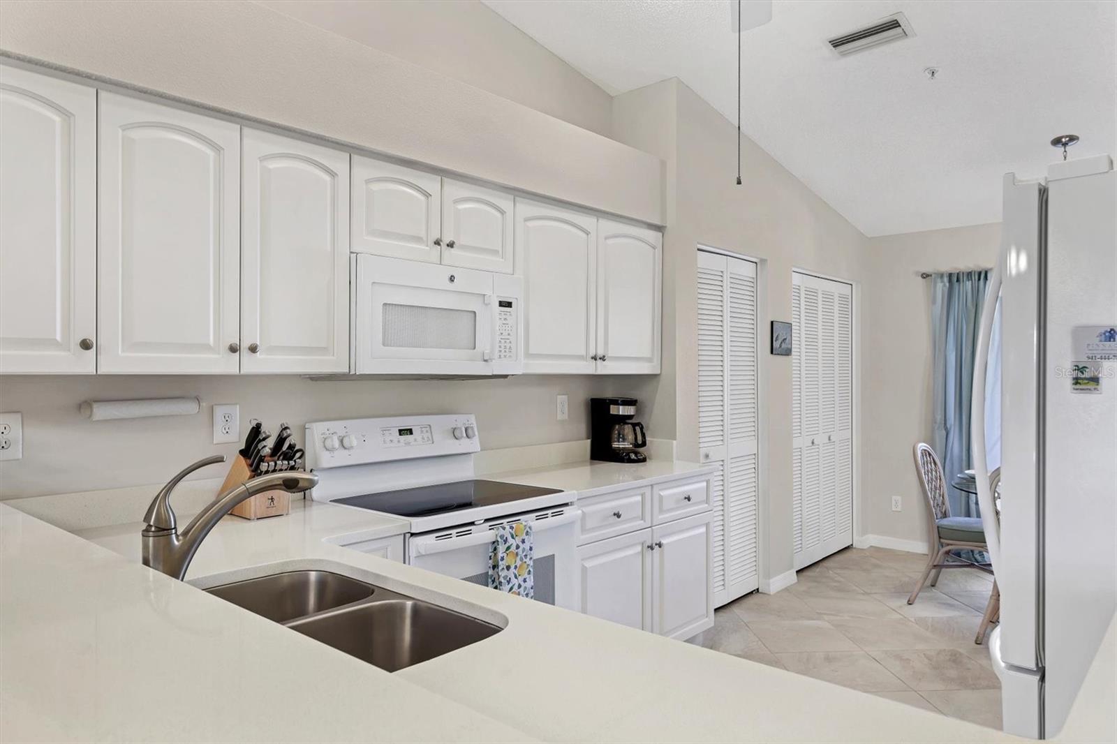 Welcome to Your Next Home. This beautifully remodeled Barrington floorplan offers 1,414 sq. ft. of comfortable living with 2 bedrooms, 2 baths, a den, and a detached garage. Freshly painted in neutral tones, the condo features tile flooring throughout the main living areas and lanais, with luxury vinyl plank in the bedrooms and den for a stylish, low-maintenance finish. Furniture is negotiable. Perfect for entertaining, the living and kitchen areas open seamlessly to the outdoors through sliding glass doors, creating the indoor/outdoor lifestyle Florida is known for. Start your day with sunrise coffee on the front lanai overlooking the courtyard and wind down with sunset cocktails on the rear lanai while taking in tranquil golf course views. The kitchen shines with white cabinetry, quartz countertops, newer appliances, and a breakfast bar that flows into the dining and living rooms. A dry bar adds convenience for hosting, while vaulted ceilings flood the space with natural light. The primary suite offers a private retreat with bay window views of the golf course, direct lanai access, two walk-in closets, and a spa-like updated bath. The den doubles as an office or extra guestroom, and the split floorplan ensures privacy for all. The second bedroom easily accommodates two twins or a king and has a nearby full bath and laundry closet. A detached garage provides storage for all your toys, while the Verandas' community pool and tennis/pickleball courts are just steps away. At Stoneybrook Golf & Country Club, enjoy a newly modernized golf course, Har-Tru tennis, pickleball, bocce, fitness center, dining, and more--all minutes from Legacy Trail, Siesta Key, Nokomis Beach, shopping, and dining. Bonus: The seller has already paid the golf modernization assessment in full--a savings of $812 annually for the next 9 years. Why settle for just a condo when you can own a lifestyle? Discover it all at Stoneybrook Golf & Country Club. Call today for your private showing.