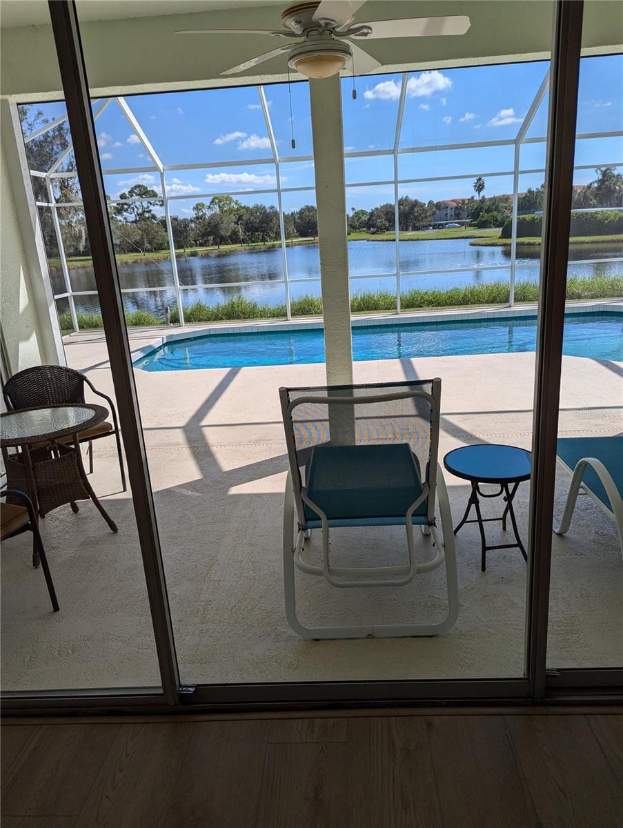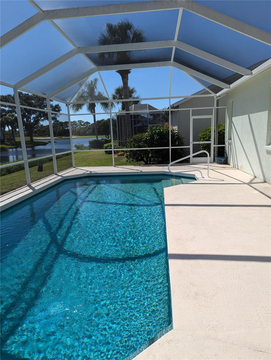 One of the best views in Stoneybrook Golf & Country club from this 2 bed 2 bath den and pool home. Through the screened porch and front door you enter the open-plan living area with bright view of the pool and expansive lake beyond. Enjoy the open kitchen and nook with bay window. Relax on the covered lanai or in the sun on the full house wide screened pool deck with views across the lake to the golf course. Membership of Stoneybrook Golf & Country Club is mandatory. The amenities include the 18 hole recently renovated championship golf course, lighted har-tru tennis courts, fitness center with pool and spa and bocce court. The clubhouse has a full dining restaurant, grille room and large circular bar.