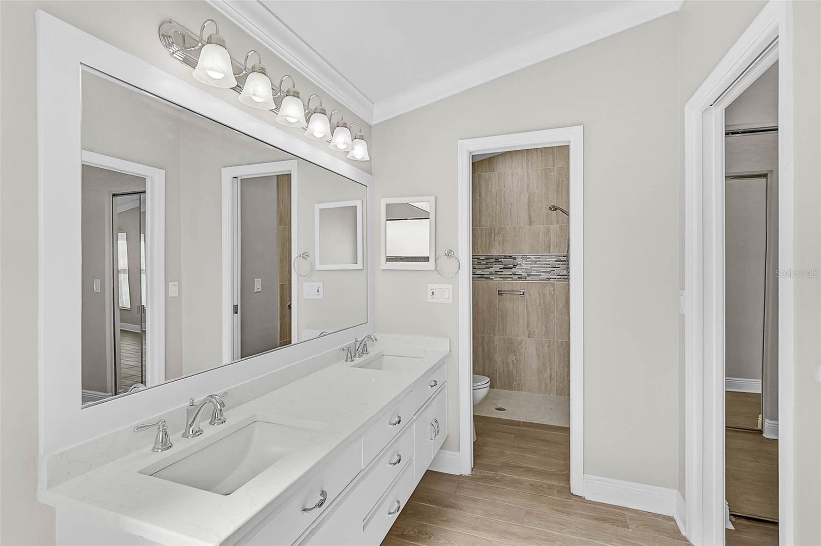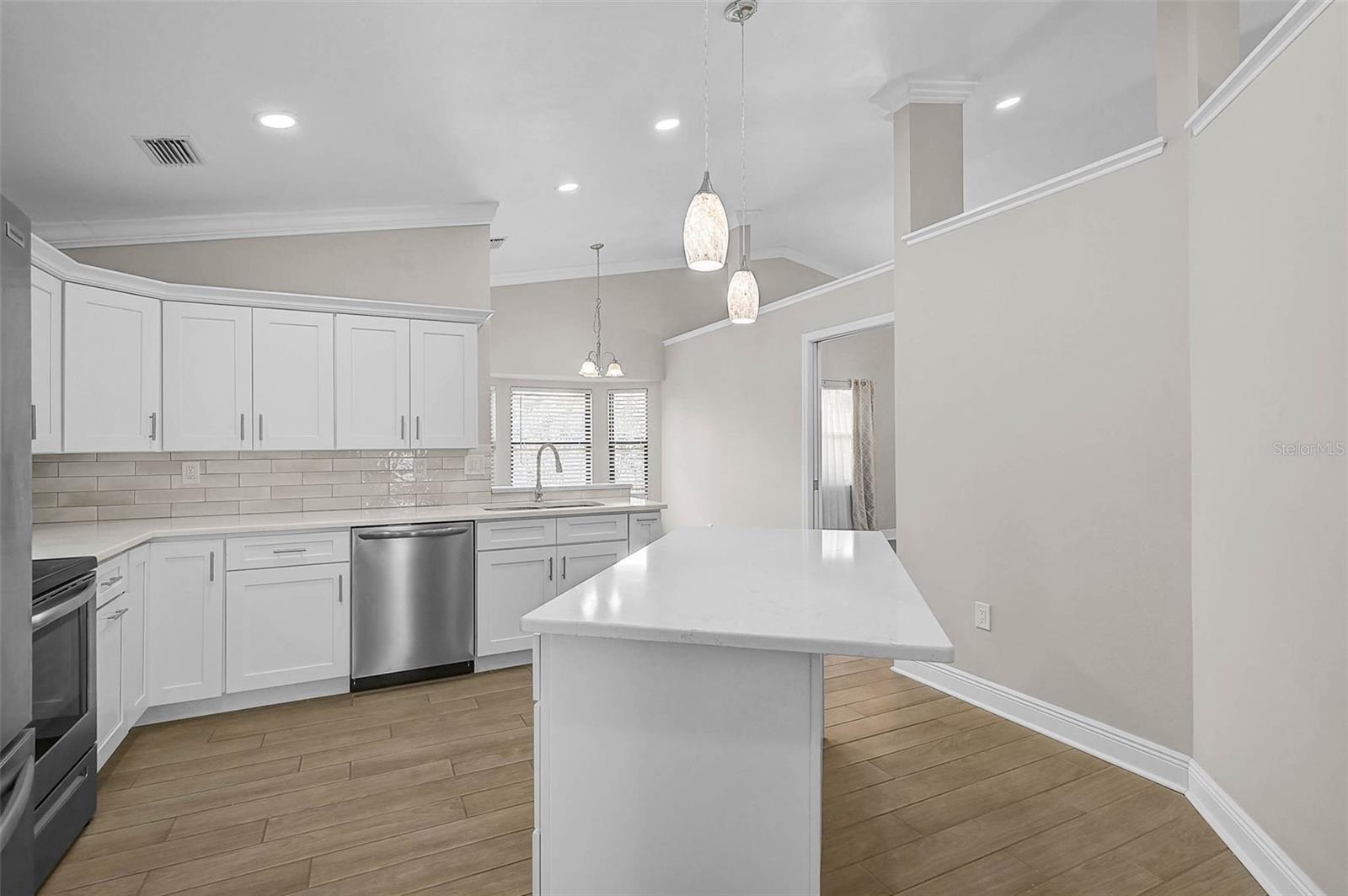 One or more photo(s) has been virtually staged. Discover the perfect blend of comfort, style, and waterfront tranquility in this beautifully maintained 3 bedroom, 2 bath home in the highly sought after Longwood Run community. Designed with a desirable split bedroom floor plan, this home offers both privacy and versatility. The second bedroom and a full bath are conveniently located near the entry, while the third bedroom with sliding doors can easily serve as a guest room, home office, or playroom.The renovated kitchen is a chef's delight, featuring sleek stainless steel appliances, abundant cabinetry, elegant quartz countertops, and a cozy breakfast nook. Adjacent to the kitchen, the laundry room leads directly to the spacious two car garage for added convenience. The bathrooms have been tastefully updated, and the home has been freshly repainted, creating a crisp, move in ready feel.Throughout the home, stylish wood look tile flooring complements the vaulted ceilings, beautifully enhanced with crown molding. The expansive great room seamlessly connects to the dining area, creating an inviting space for both relaxation and entertaining. Triple sliding glass doors open to an oversized screened lanai, where breathtaking pond views and a lush backyard provide a peaceful retreat.The private primary suite, located at the back of the home, offers vaulted ceilings, two generous walk in closets, an en suite bath, and direct access to the lanai, allowing you to wake up to serene water views every day. A barrel tile roof was replaced in 2014. The home's prime location is less than three miles west of I 75 with easy access to University Town Center Mall, Publix, CVS, and Walgreens. World famous St. Armands Circle and the stunning Gulf Coast beaches are just a short drive away.Don't miss the opportunity to own this exquisite waterfront home in one of the area's most desirable communities.
