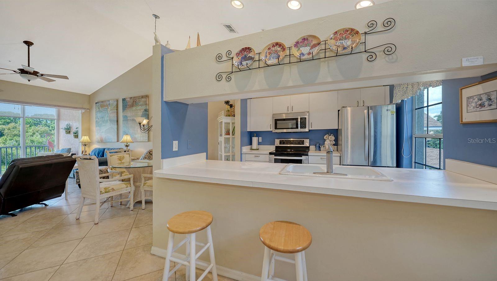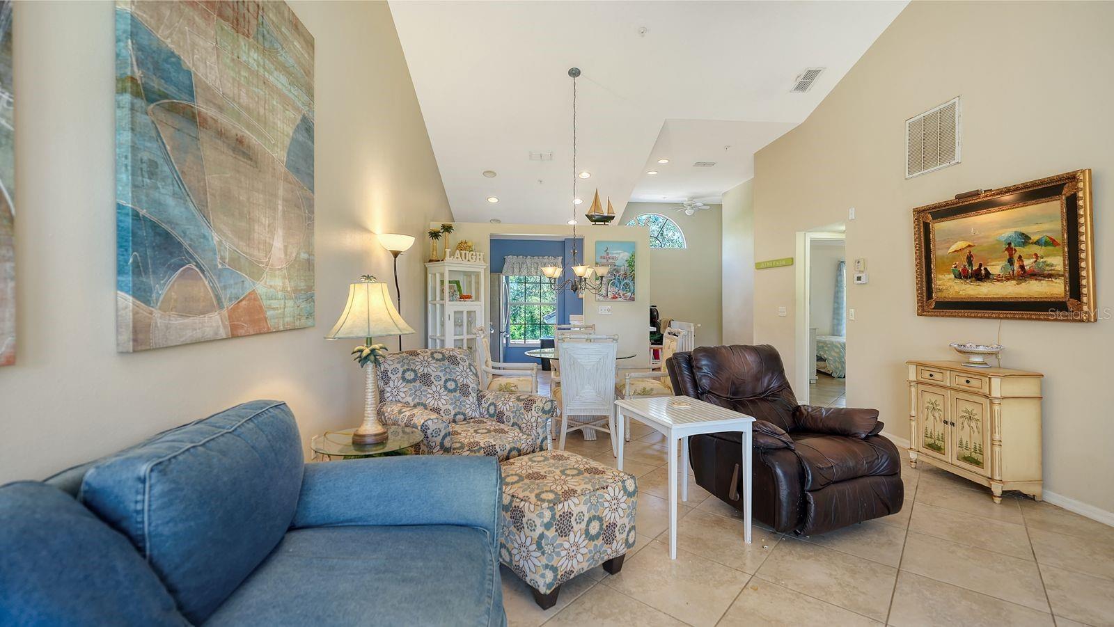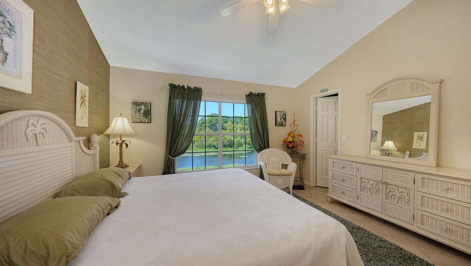 Welcome to Pinestone at Palmer Ranch....this second floor condominium has a large volume open air feel with it's cathedral ceilings in each room. By far the best deal in all of Palmer Ranch! Situated in a Gated Community with a greenbelt and westerly Lake view. High ceilings and ready for new owner. Owner says, "it's time to sell" and has priced this condominium to move. Perfect for the investor as a seasonal rental (condominiums in Pinestone are easy to rent and are limited for rentals in the first 2 years of ownership), as a vacation property or a primary residence. Pinestone at Palmer Ranch is just miles from Siesta Key and other beaches, restaurants, shopping, grocery stores and more. Pinestone amenities can not be matched in this price range. Large 'olympic' sized heated swimming pool with large deck area, tables, chairs, lounges, umbrellas, wet bar, BBQ grills and covered picnic area. Don't miss the 2 lighted tennis courts, 1/2 basketball court, hot tub/spa, gym/fitness room, billiard room, card room, 32 seat movie theater, library, onsite manager's office, pickle ball, bocci ball, firepit, cornhole, conversation area, locked bike storage and more. This is the BEST DEAL IN THIS RESORT STYLE DEVELOPMENT so don't delay!