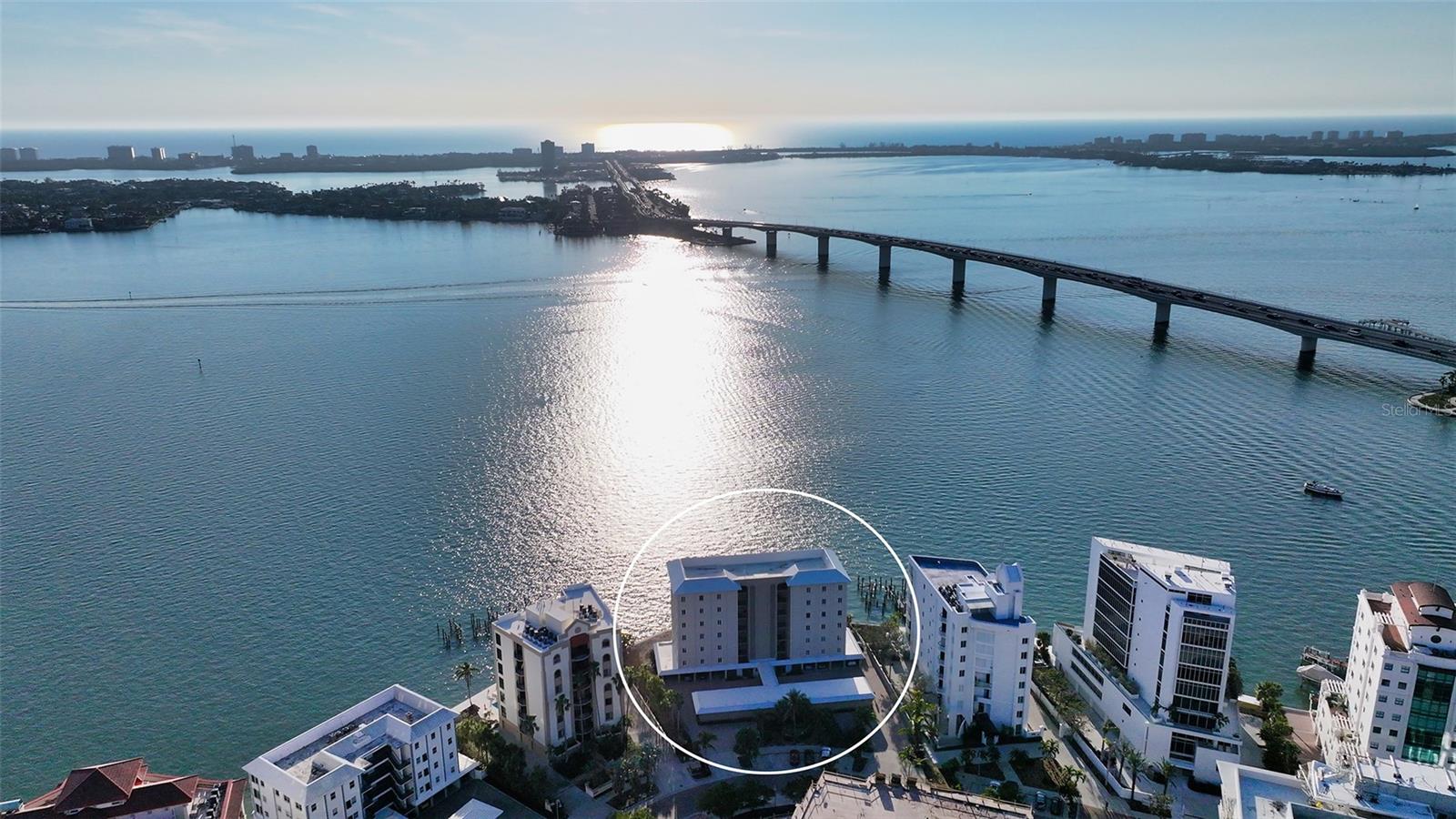 Experience the best of Sarasota living from this exceptional southwest corner residence on the 6th floor of a boutique condominium nestled on the prestigious Golden Gate Point peninsula. Located in an established, quiet bayfront community with only four residences per floor, this move in ready, furnished 2-bedroom, 2-bath home offers 1,786 square feet of thoughtfully designed living space. Soak in breathtaking panoramic views that span from the iconic John Ringling Bridge and Sarasota Bay to Bird Key, Big Pass, downtown Sarasota's twinkling city lights, and glorious Gulf of Mexico sunsets. Abundant natural light pours through storm-rated PGT hurricane impact windows, accentuating the updated kitchen and bathrooms, and creating a bright, welcoming ambiance throughout. The spacious primary suite features a custom room-size walk-in closet and spa-inspired en suite bath, while the second bedroom also offers generous closet space with custom fittings. A separate laundry room, newer HVAC system, and a tankless water heater provide modern comfort and efficiency. Residents of this intimate bayfront community enjoy a waterfront pool, shaded seating area, day dock, and a fishing pier -- all just steps from your door. Covered parking and on-site guest parking complete the package. Enjoy serene waterfront living just moments from downtown Sarasota, St. Armands Circle, and the Gulf beaches. A rare opportunity in one of the city's most coveted neighborhoods.