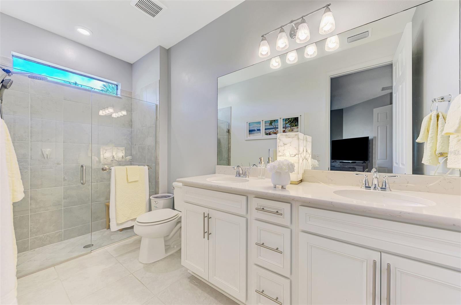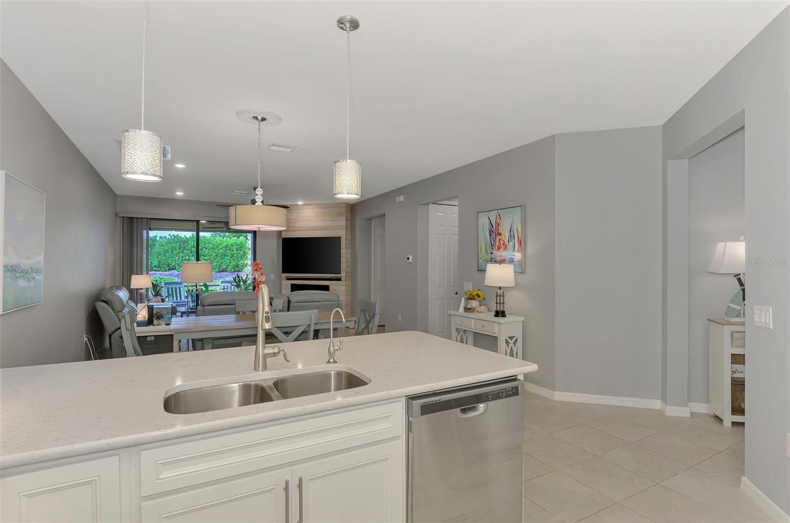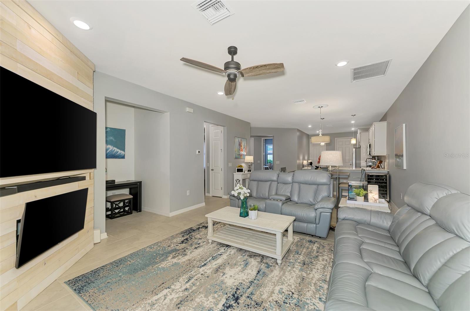 Elegant 2 Bedroom + Office Home with 2 car garage in IslandWalk, Venice, FL. Discover resort-style living in this beautifully maintained 2-bedroom, 2-bath plus office home located in the highly desirable IslandWalk gated community in Venice, Florida. Designed for comfort and functionality, this home features an inviting open-concept layout with tile flooring throughout the main living areas and office.The modern kitchen boasts stainless steel appliances, light countertops, and light cabinetry with a kitchen reverse-osmosis and a whole house water softener system. The spacious primary bedroom suite offers an L-shaped walk-in closet and a luxurious ensuite bathroom with dual vanities and a walk-in shower with natural light. The guest bath has a shower/tub combo. A dedicated office/den provides flexibility for remote work, hobbies, or close the French doors for a quiet reading room with lots of light.Step outside to the extended screened lanai, ideal for relaxing or hosting gatherings. Storm Smart screen is located between the covered patio and the vaulted screened area. The 2 car garage has shelving for extra storage and for beach chairs.IslandWalk is one of Venice's premier gated, maintenance-free communities, known for its beautiful landscaping, lakes, and world-class amenities. Enjoy two resort-style clubhouses with a multitude of social and fitness activities, Heated lagoon and lap pools, Pickleball courts, tennis, and bocce ball court, state-of-the-art fitness center, Walking and biking trails winding through scenic waterways, Full-time activities director and a calendar of events year-round. Close to Wellen Park & Gulf Beaches. This home offers quick access to shopping, dining, and entertainment at Downtown Wellen Park, plus easy proximity to CoolToday Park, spring training home of the Atlanta Braves. Just a short drive away are Venice's pristine Gulf beaches, including Venice Beach, Manasota Key, and Caspersen Beach, where you can enjoy sunset strolls, shelling, and fishing. Experience the best of coastal Florida living - where luxury, convenience, and community come together.