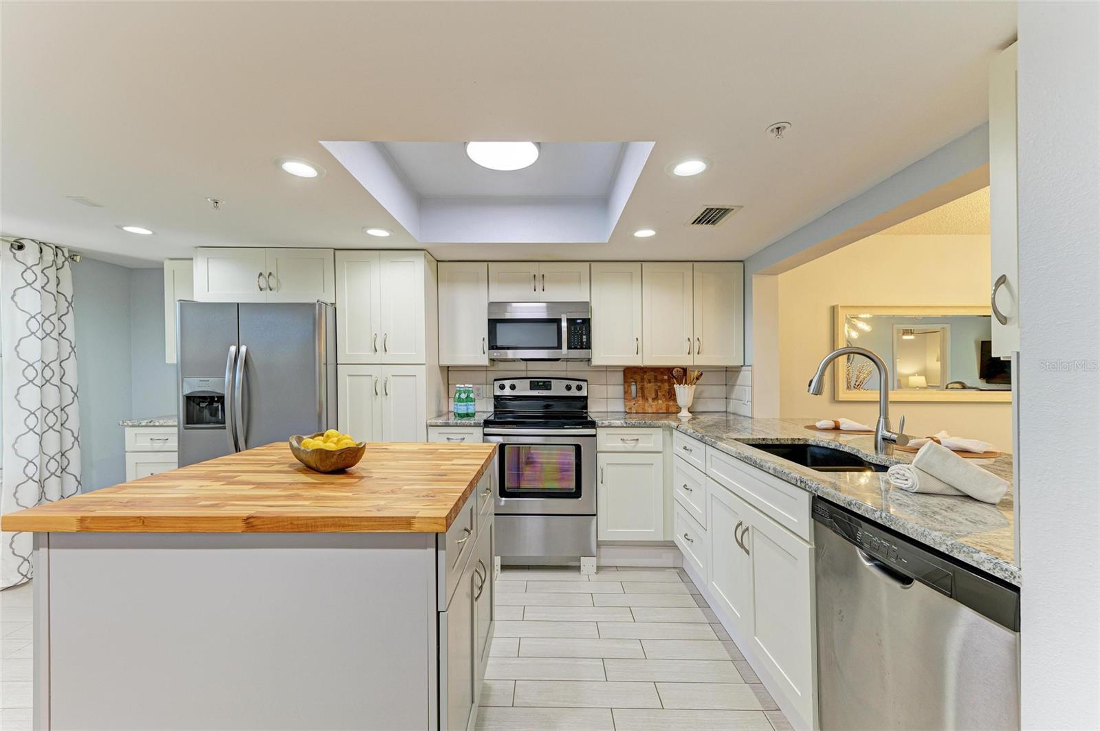 Discover the epitome of modern living in this fully renovated, ground floor unit in the renowned Stoneybrook Golf and Country Club! This two-bedroom, two-bathroom corner unit will wow you from the moment you step inside. The meticulous renovations showcase sleek finishes, an open-concept layout, and premium upgrades, blending style and functionality seamlessly. Luxury vinyl floors, granite counter tops, solid wood, soft close cabinets, a butcher's block kitchen island, modernized bathrooms with a dual sink in the primary en-suite and a fully refurbished HVAC are just a few of the many features that makes this unit a standout from the rest. And the best part?! It's the only unit in the community boasting a full view lanai! This home offers an unparalleled outdoor retreat. Perched on the second hole of the golf course, the property provides breathtaking views of lush fairways and a west-facing orientation, perfect for soaking in spectacular sunsets that paint the sky in hues of orange and pink each evening. Steps away from the community pool, well-maintained tennis courts, and convenient parking and shed storage, this unit has it all. The Stoneybrook Golf and Country Club has just completed a stunning renovation of the golf course, enhancing its appeal, while the clubhouse is set to begin renovations, adding a new restaurant, pickleball courts, and more, promising an even more vibrant lifestyle. The golf and country club has frequent golf and member events, making it easy to meet fellow residents and keep active. Centrally located near plenty of restaurants and shopping and just minutes from beautiful Siesta Key Beach and Downtown Sarasota. This is a fabulous opportunity to own a truly exceptional condo!