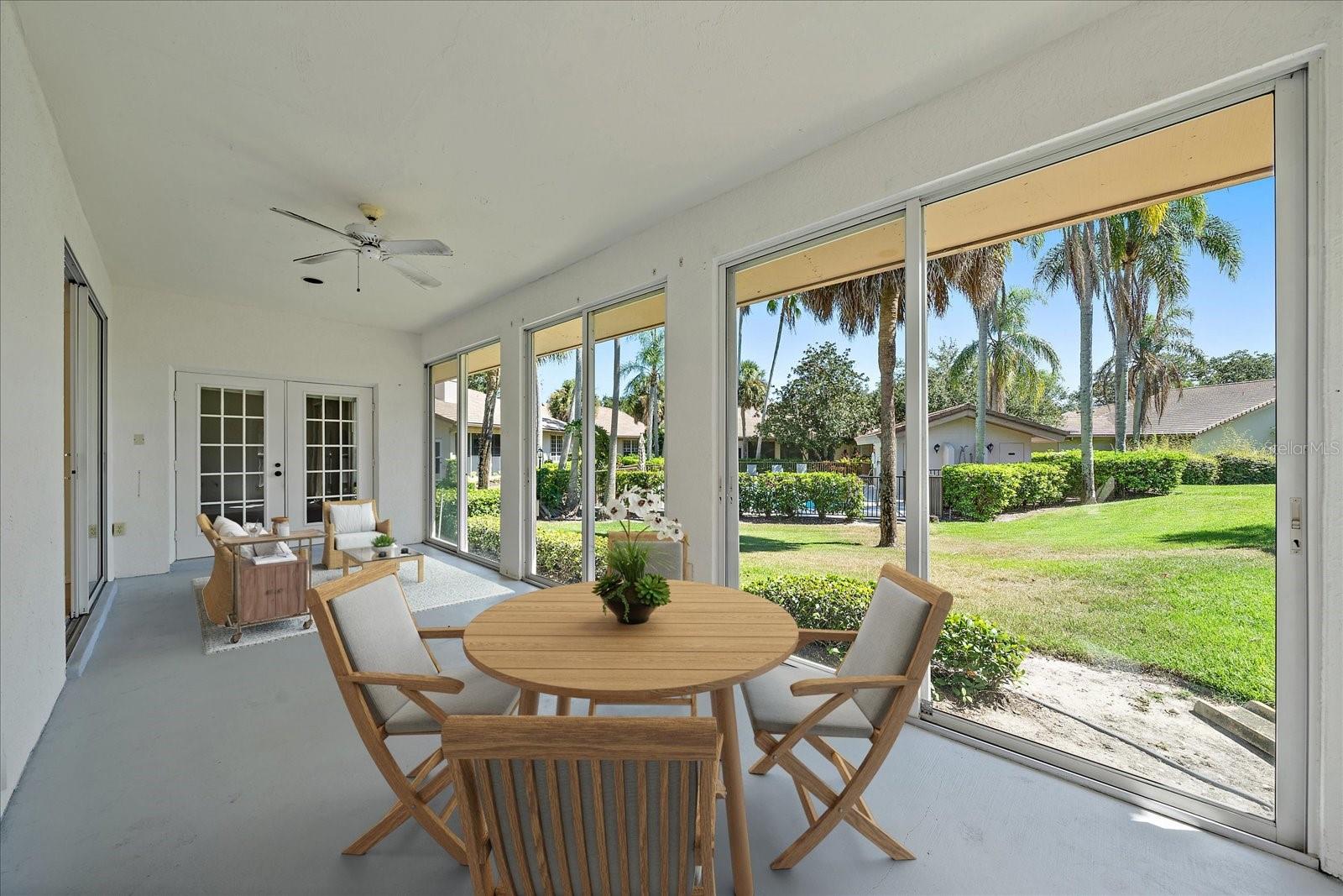 One or more photo(s) has been virtually staged. Enjoy all the beauty and ambiance of living in the premier community of The Meadows, with 85 lakes and waterways, 14 miles of walking and bike trails, majestic oak trees, and the convenience to everything Sarasota offers in close range! An unsurpassed lifestyle that includes golf, 15 har-tru tennis courts, eight new pickleball courts (completed this year), lifestyle center, and a Junior Olympic size pool! The Meadows takes great pride in preserving its grand open spaces, and commitment to wildlife and ecology -- which is truly exceptional! With eight foot sliding glass doors and high ceilings, this home is drenched in sunshine and beautiful views. The floor plan flows exceptionally well, with the feel of spaciousness and privacy, and is located in the charming small enclave of Highland Park; this villa style home is free standing with no adjoining walls and a generously large two-car garage. The large kitchen offers plenty of space for preparing those special evenings with family and friends. Situated between the mall at UTC and downtown Sarasota, it provides an opportunity to take advantage of the abundance of amenities, including sparkling beaches, a vibrant downtown, world renowned restaurants, exclusive shopping, the newly opened Mote Marine Aquarium, and the esteemed Nathan Benderson Park!
