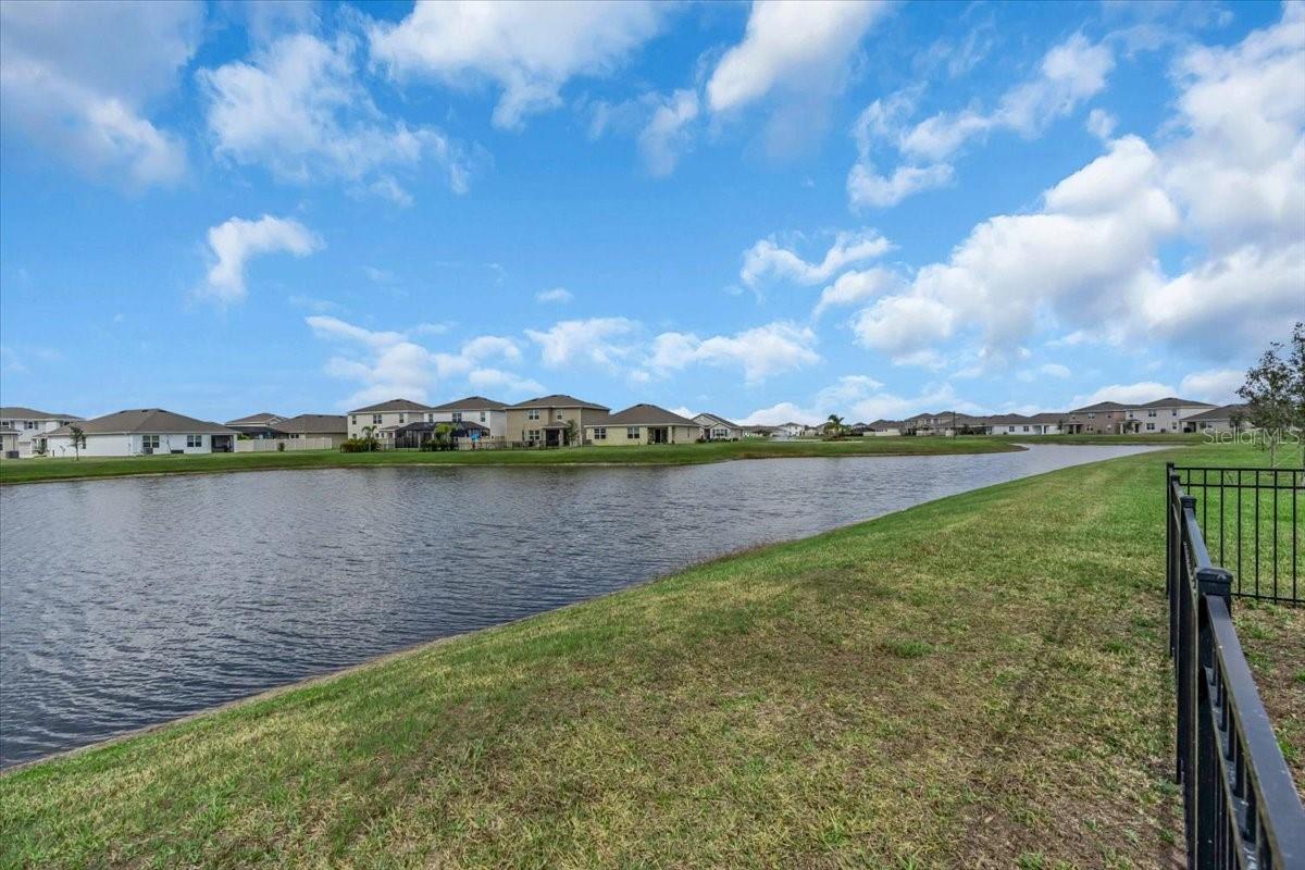 Welcome to your Florida dream home -- a stunning, move-in-ready residence in the highly sought-after Solera at Lakewood Ranch, offering breathtaking water views, timeless style, and unbeatable location! Perfectly positioned on one of the best waterfront lots in the community, this home captures over 50 feet of serene lake views -- your own private backdrop for sunsets, morning coffee, and endless gatherings.From the moment you arrive, you'll be impressed by the coastal-inspired elevation, lush tropical landscaping, and inviting front porch that set the tone for what's inside. Just steps away are the community playground and resort-style pool and clubhouse, creating the perfect blend of privacy and convenience. Inside, the open-concept design showcases today's most desirable finishes:Designer kitchen with sleek granite countertops, espresso cabinetry, modern backsplash, and stainless steel appliances.A bright dinette framed by oversized sliding glass doors that open to panoramic water views -- ideal for entertaining or relaxing in style.Spacious great room bathed in natural light for effortless family living.Guest-ready first-floor bedroom with a full bath -- perfect for in-laws or visiting friends.Upstairs, retreat to your luxurious primary suite featuring a spa-like bath with dual vanities and an expansive walk-in closet. Three additional bedrooms offer flexibility for family, home office, or hobby space, all anchored by a stylish double-vanity bath. Outdoors, enjoy your fully fenced backyard (with elegant wrought-iron rear fencing) that maximizes your water view -- perfect for pets, kids, or a future pool. Watch the sunset glisten across the lake from your covered lanai -- this is Florida living at its best. Solera at Lakewood Ranch is one of the area's newest and most vibrant communities, featuring a sparkling resort pool, clubhouse, playground, and walking paths, all just minutes to I-75, world-class shopping at UTC, and the pristine beaches of Anna Maria Island, Holmes Beach, and Siesta Key. This is more than a home -- it's a lifestyle. Experience your perfect piece of Lakewood Ranch living today!