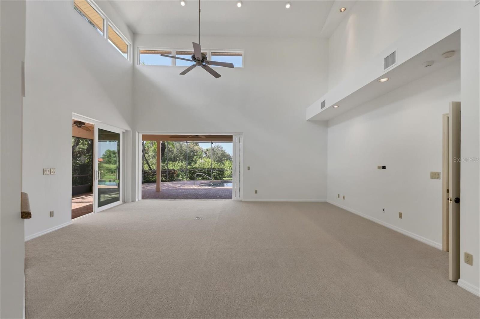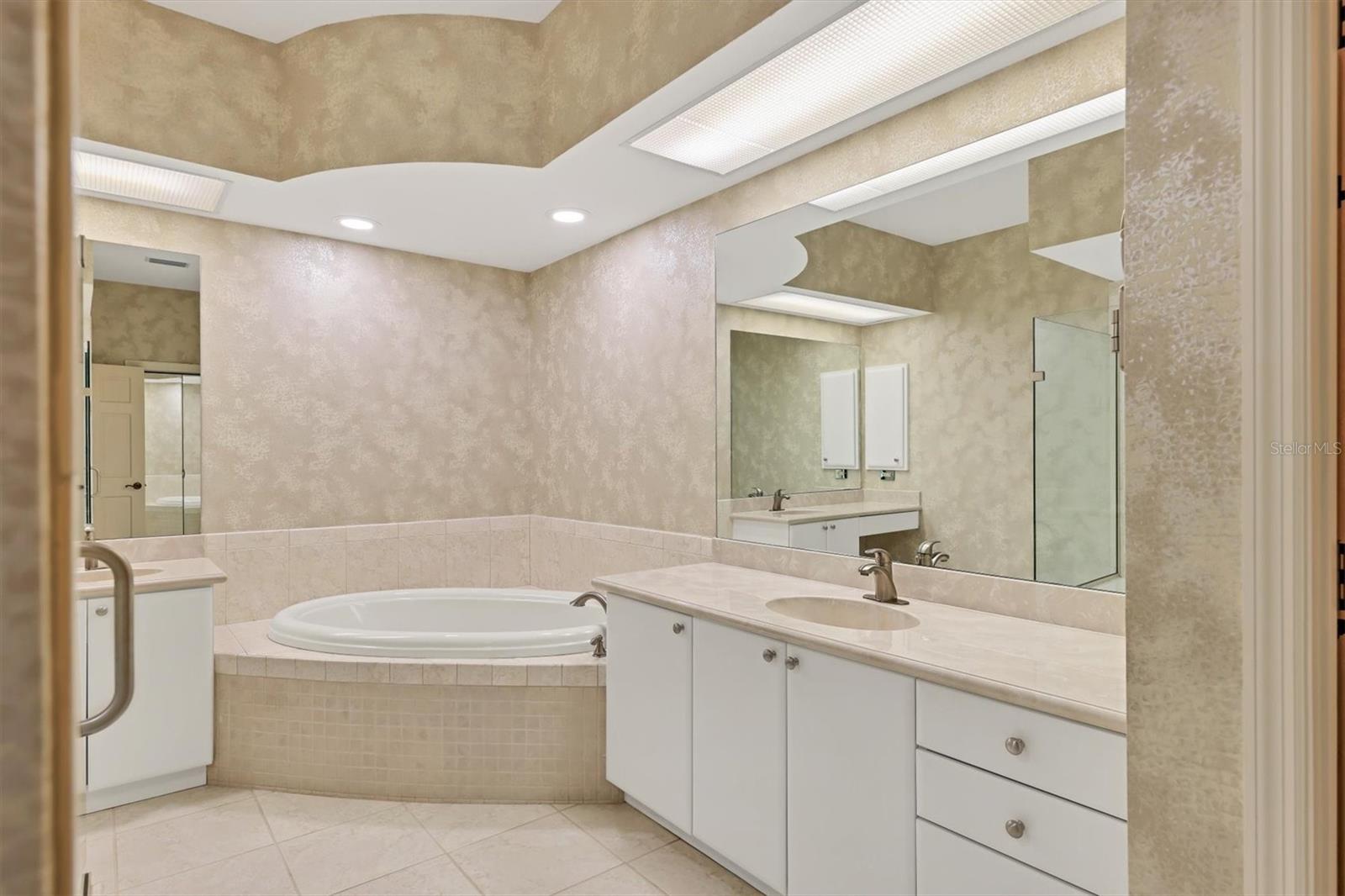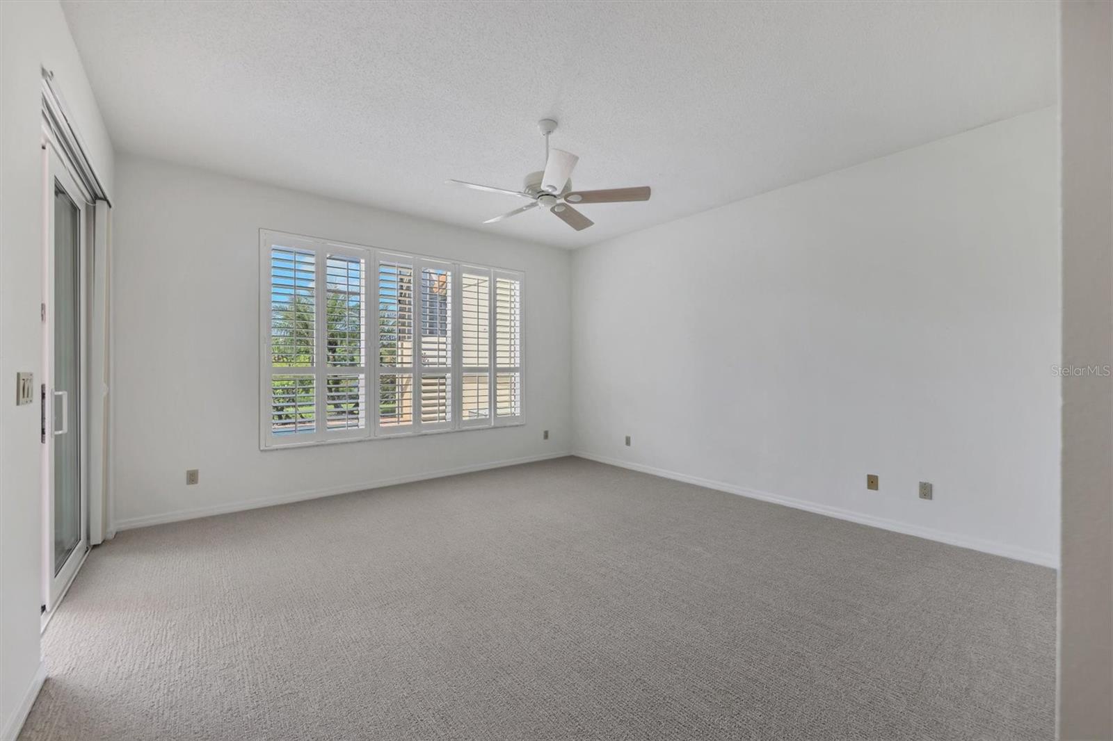 Experience the ease of refined living in this beautiful La Vista single-family villa, nestled within one of Prestancia's most sought-after maintenance-free enclaves. Perfectly situated within walking distance of the TPC Clubhouse, this residence offers an ideal blend of comfort, elegance, and convenience. Recently refreshed with new interior paint and carpeting, the home exudes understated sophistication and provides an inviting canvas for your personal style. Soaring vaulted ceilings and expansive windows fill the interiors with natural light, creating a warm and open ambiance--ideal for showcasing art and entertaining in effortless style. The spacious living room flows seamlessly to the outdoors through pocketing sliding glass doors that open to an L-shaped covered patio and screened lanai--perfect for enjoying Florida's signature indoor-outdoor lifestyle.The thoughtfully designed kitchen features a large center island with seating, abundant counter space, wall oven and microwave with warming drawer, dual sinks, and a charming breakfast nook surrounded by sliding glass doors. A formal dining room offers an elegant space for gatherings and celebrations. The primary suite serves as a tranquil retreat with direct lanai access, plantation shutters, a generous closet, and a spa-inspired bath with dual vanities, a soaking tub, and a glass-enclosed shower. A guest suite with a private bath, a powder room, and a laundry room complete the main level. Upstairs, two additional bedrooms share a full bath--each offering privacy and ample closet space. Hurricane-impact glass throughout provides comfort and peace of mind. The lanai is an outdoor sanctuary featuring both covered and open seating areas, a sparkling solar-heated pool, and serene views that encompass a lush preserve, peaceful water, and TPC Prestancia's 18th fairway beyond. Residents of Prestancia enjoy 24-hour guard-gated security, beautifully manicured grounds, and the option to join the prestigious TPC Prestancia Golf Club--home to two championship 18-hole courses and a vibrant social community. Ideally located near Siesta Key's world-renowned beaches, The Legacy Trail, and Sarasota's acclaimed shopping, dining, and arts scene. Discover the best of Florida living in this lovely home and community--you won't be disappointed.