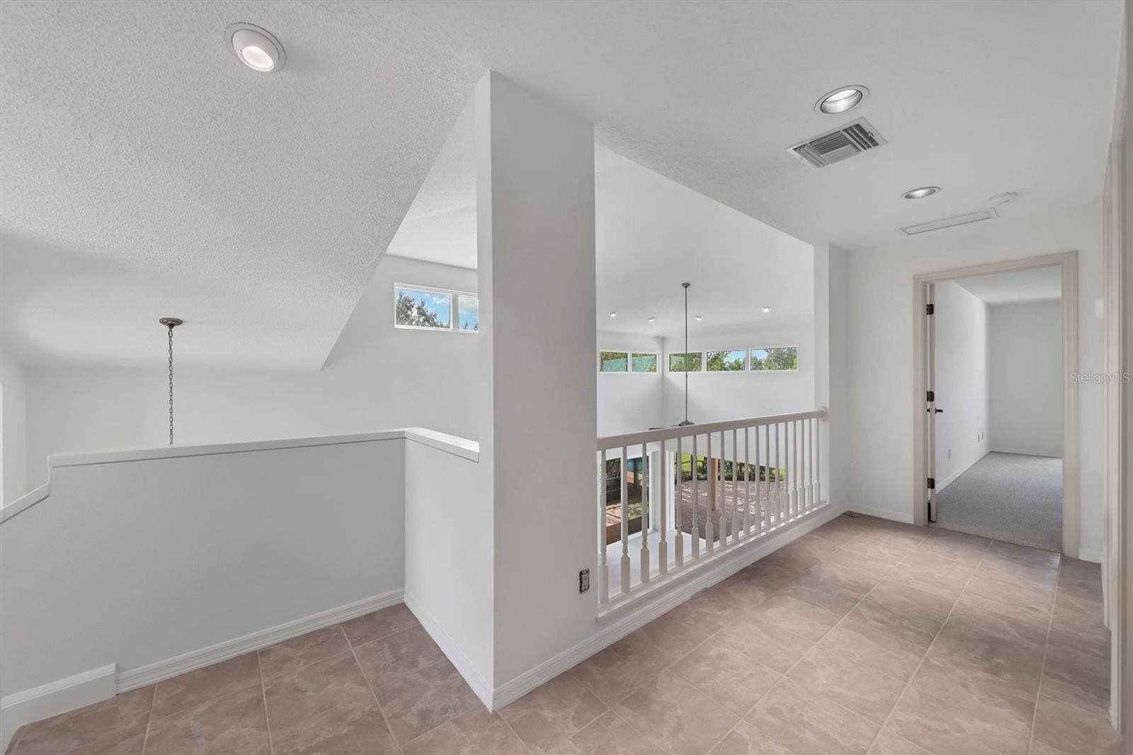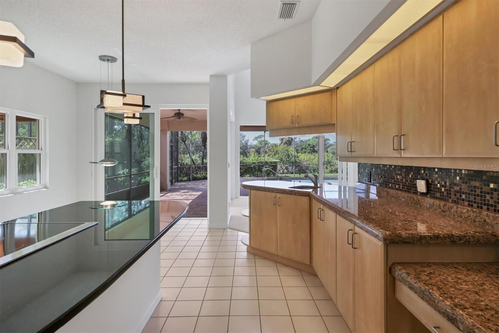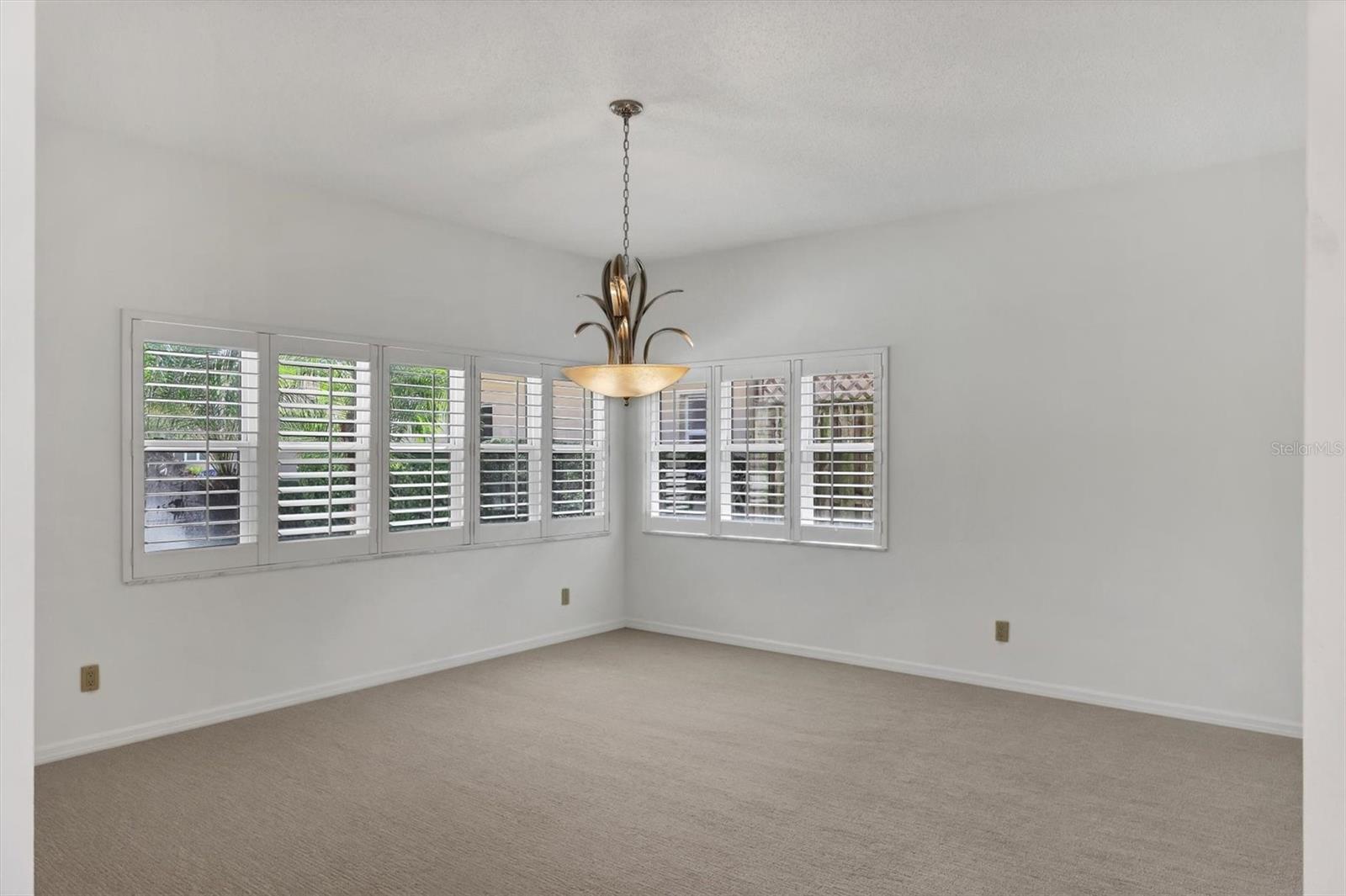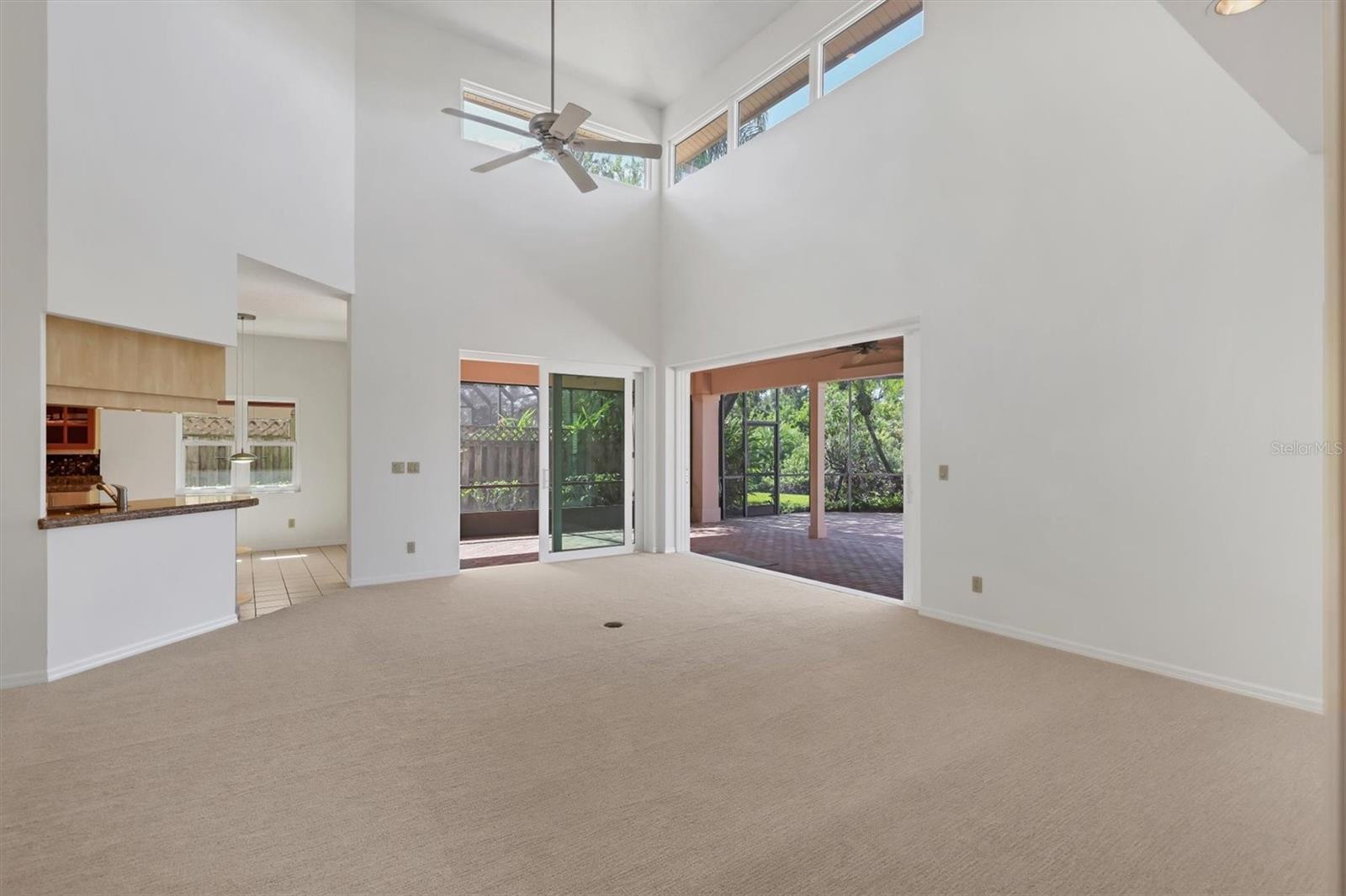 Experience the ease of refined living in this beautiful La Vista single-family villa, nestled within one of Prestancia's most sought-after maintenance-free enclaves. Perfectly situated within walking distance of the TPC Clubhouse, this residence offers an ideal blend of comfort, elegance, and convenience. Recently refreshed with new interior paint and carpeting, the home exudes understated sophistication and provides an inviting canvas for your personal style. Soaring vaulted ceilings and expansive windows fill the interiors with natural light, creating a warm and open ambiance--ideal for showcasing art and entertaining in effortless style. The spacious living room flows seamlessly to the outdoors through pocketing sliding glass doors that open to an L-shaped covered patio and screened lanai--perfect for enjoying Florida's signature indoor-outdoor lifestyle.The thoughtfully designed kitchen features a large center island with seating, abundant counter space, wall oven and microwave with warming drawer, dual sinks, and a charming breakfast nook surrounded by sliding glass doors. A formal dining room offers an elegant space for gatherings and celebrations. The primary suite serves as a tranquil retreat with direct lanai access, plantation shutters, a generous closet, and a spa-inspired bath with dual vanities, a soaking tub, and a glass-enclosed shower. A guest suite with a private bath, a powder room, and a laundry room complete the main level. Upstairs, two additional bedrooms share a full bath--each offering privacy and ample closet space. Hurricane-impact glass throughout provides comfort and peace of mind. The lanai is an outdoor sanctuary featuring both covered and open seating areas, a sparkling solar-heated pool, and serene views that encompass a lush preserve, peaceful water, and TPC Prestancia's 18th fairway beyond. Residents of Prestancia enjoy 24-hour guard-gated security, beautifully manicured grounds, and the option to join the prestigious TPC Prestancia Golf Club--home to two championship 18-hole courses and a vibrant social community. Ideally located near Siesta Key's world-renowned beaches, The Legacy Trail, and Sarasota's acclaimed shopping, dining, and arts scene. Discover the best of Florida living in this lovely home and community--you won't be disappointed.