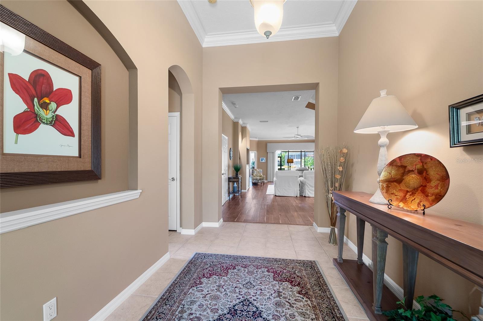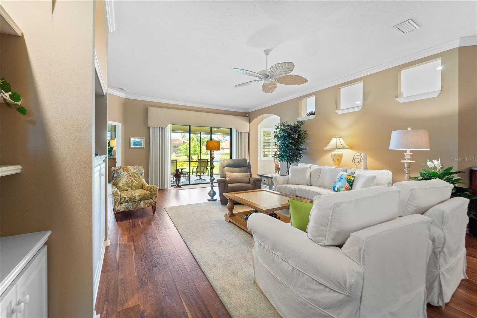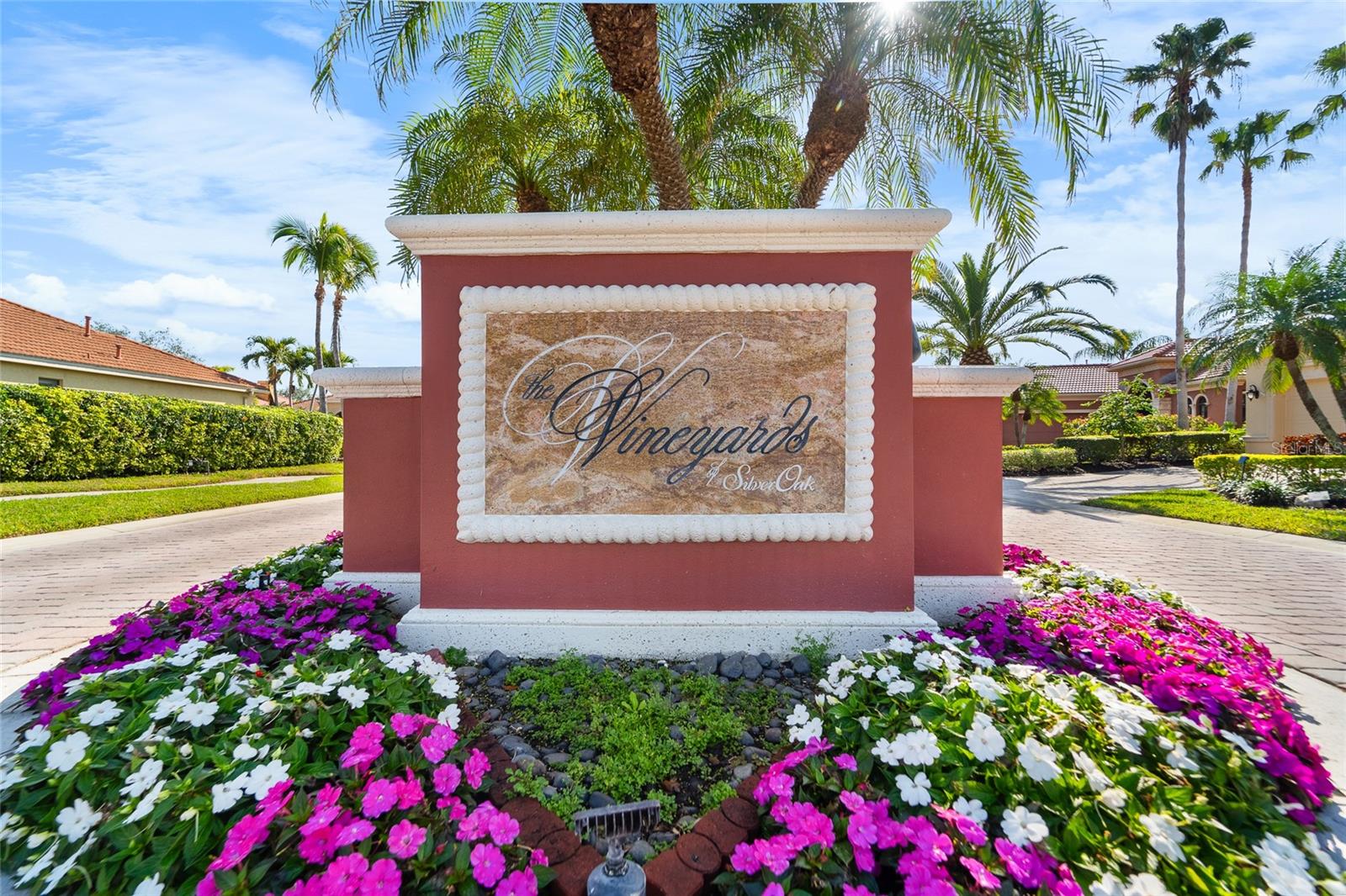 Welcome to the Vineyards of Silver Oak an impeccable community with 72 maintenance free homes developed by Gibraltar. Gibraltar was considered one of the best in Southwest Florida when this community was developed. Enjoy beautiful lakefront views from the minute you enter the home. Notice the custom features including IMPACT WINDOWS, volume trayed ceilings, wood floors, and custom mill work. The current homeowner has lovingly updated every room in the house including the chef's kitchen with beautiful granite counters, glass tile backsplash and stainless-steel appliances. The breakfast area features lake views where you can enjoy your morning coffee watching the heron fish for breakfast outside your door. The star of the show is the view of the lake through the large 27-foot screened lanai where you can enjoy your favorite beverage as the Florida sunset paints the clouds. A separate formal dining area has plenty of room for family or neighbors to have an elegant meal or simply play cards. A built-in wine bar can be used as butler's pantry or center for entertaining. The primary bedroom provides more lake views, custom millwork, and an upgraded ensuite spa-like bath where a dip in the garden tub can wash your cares away. Two closets provide plenty of storage. The split bedroom has lots of space for guests. The 3rd bedroom/office has double doors to easily become additional living/entertainment area. The garage is air conditioned and has a spotless polyaspartic (epoxy) floor. Silver Oak is located in the highly popular Palmer Ranch. The Legacy Bike Trail is adjacent to the community and allows you to ride, walk or jog to downtown Sarasota or Caspersen Beach in Venice. Plans are to ultimately link this to trails along the entire west coast of Florida. The home is few minutes from Costco, Target, Lowes and a plethora of other shopping.