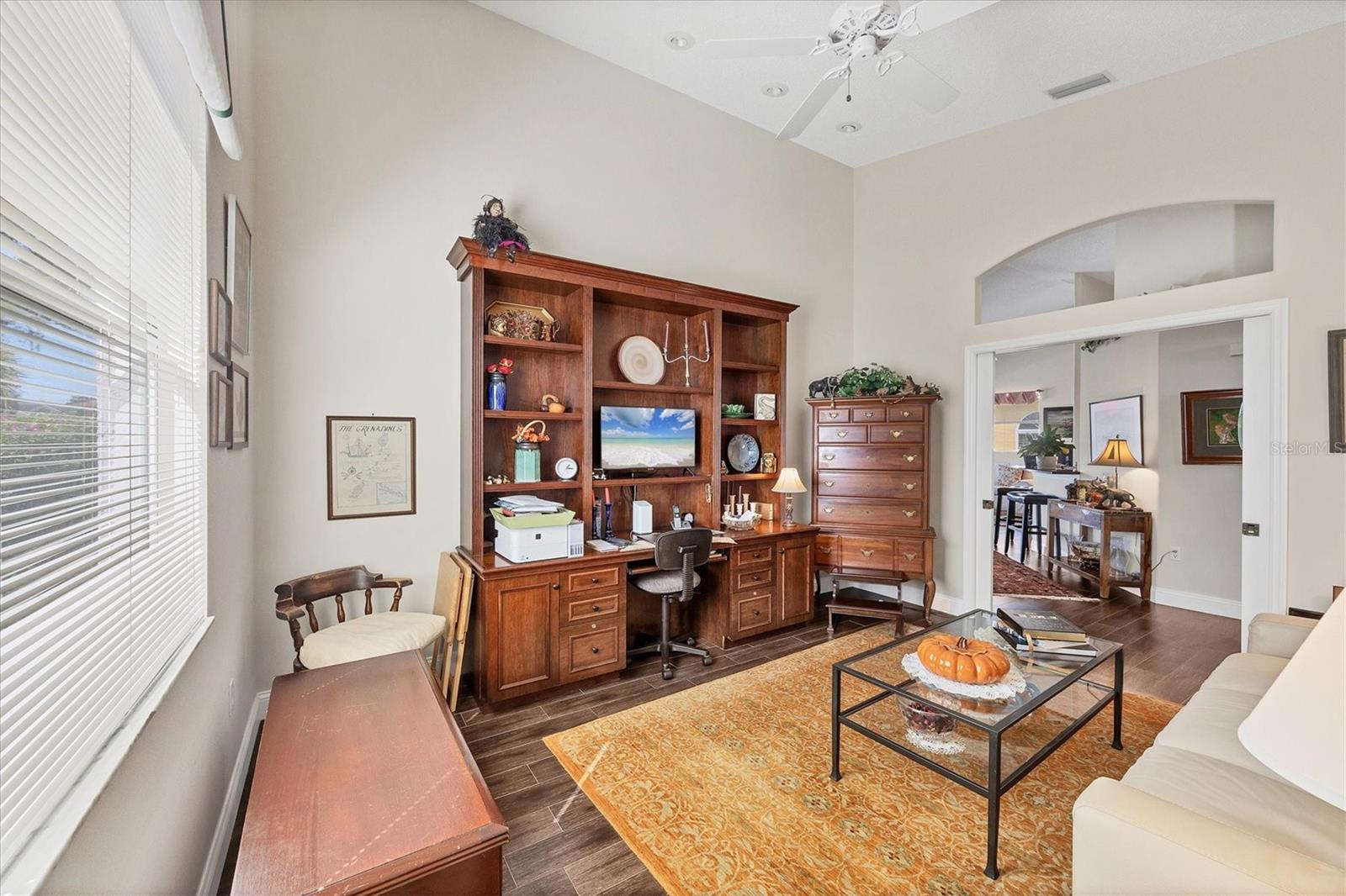 Immaculate, well cared for 2 bedroom, 2 bath home with DEN and POOL in sought-after Stoneybrook Golf and Country Club! Vaulted ceilings and loads of natural light encompass this desirable open floor plan. Gorgeous, wood-look plank tile in all the main living areas. Kitchen is updated and charming with an eat-in bar, granite counters, tiled back splash, stainless steel appliances, soft close drawers and a bright dinette with plantation shutters. Living room and dining room open to the spacious screened-in lanai and pool area with tranquil views of the lake. Primary bedroom has 2 walk-in closets, a glass sliding door to patio, and a large ensuite bath with dual sinks and a soaker tub. Den/office is is a great option for an extra sleep space for guests as it has pocket doors for privacy. 2nd bath is beautifully updated with a tiled walk-in shower and raised granite vanity. Entertaining is easy, all year round on your covered lanai, lounging by your pool and enjoying your own piece of tropical paradise! 2 car garage has plenty of room for your vehicles and all your beach and sports gear. Stoneybrook is a premier and established club in Palmer Ranch and boasts top amenities that include a new 18 hole golf course redesigned by Kipp Schultes and is said to be one of the best on the West Coast! Lighted Har-Tru tennis/pickleball courts, pro-shop, well-equipped fitness center, bocce court, putting greens, driving range, fitness studio, sharing library, additional heated pool/spa, full service restaurant/bar, meeting rooms, catering facility, outdoor dining patio, walking/biking trails, fishing, planned activities like yoga, mahjong, line dancing, and so much more! Stoneybrook Golf and Country Club is a prime location close to the Legacy Trail, shopping, Costco, restaurants and all Sarasota and Venice has to offer! WELCOME HOME to RESORT-STYLE LIVING at its BEST!
