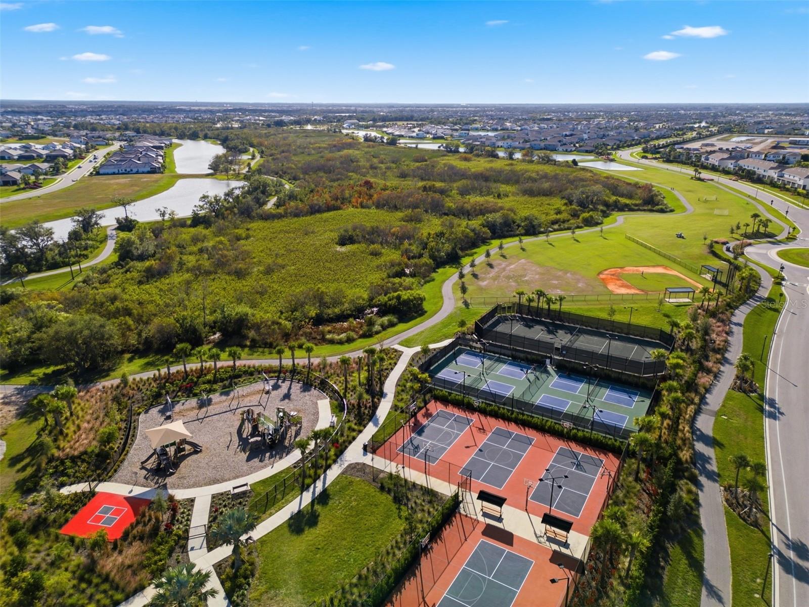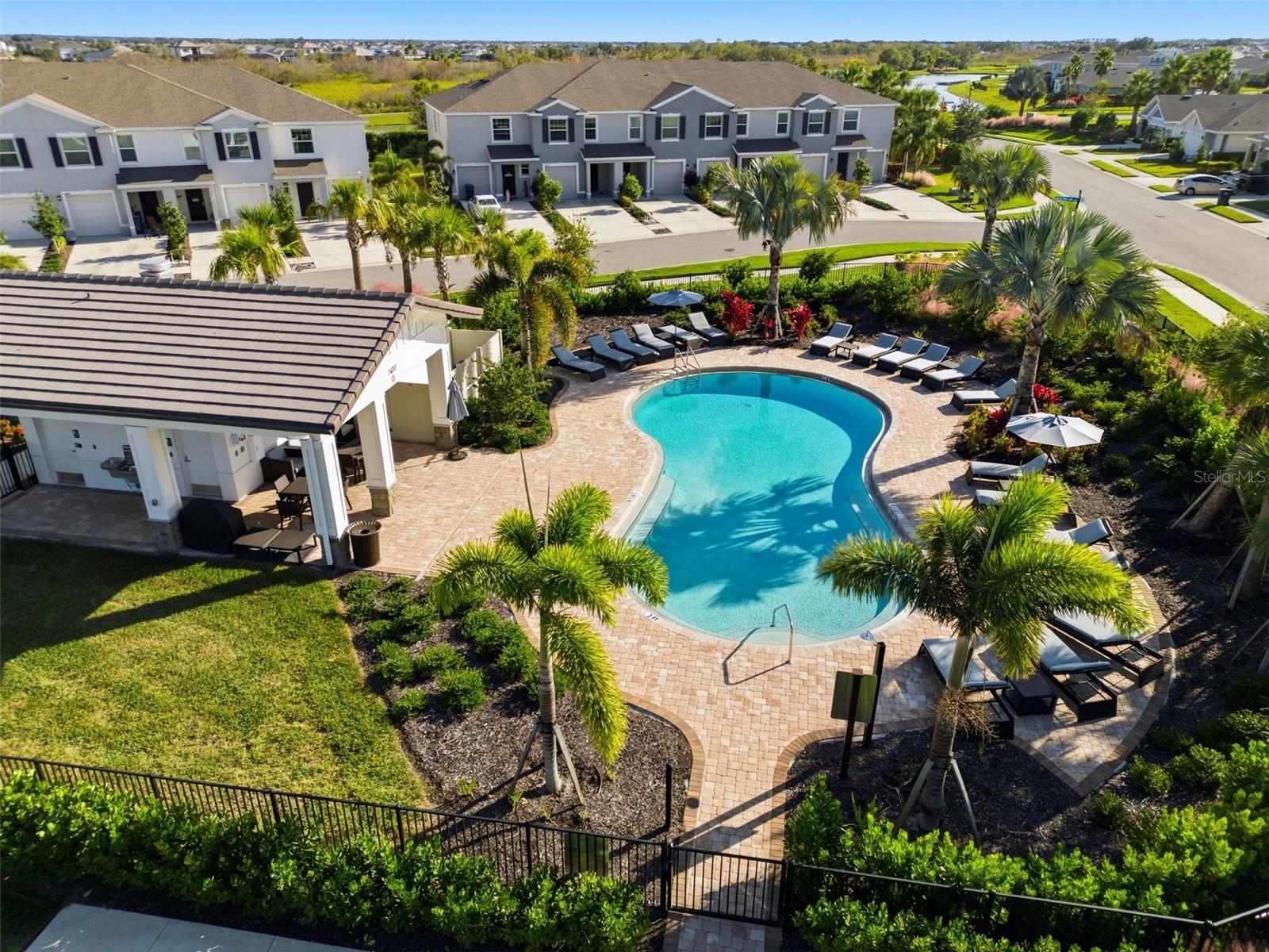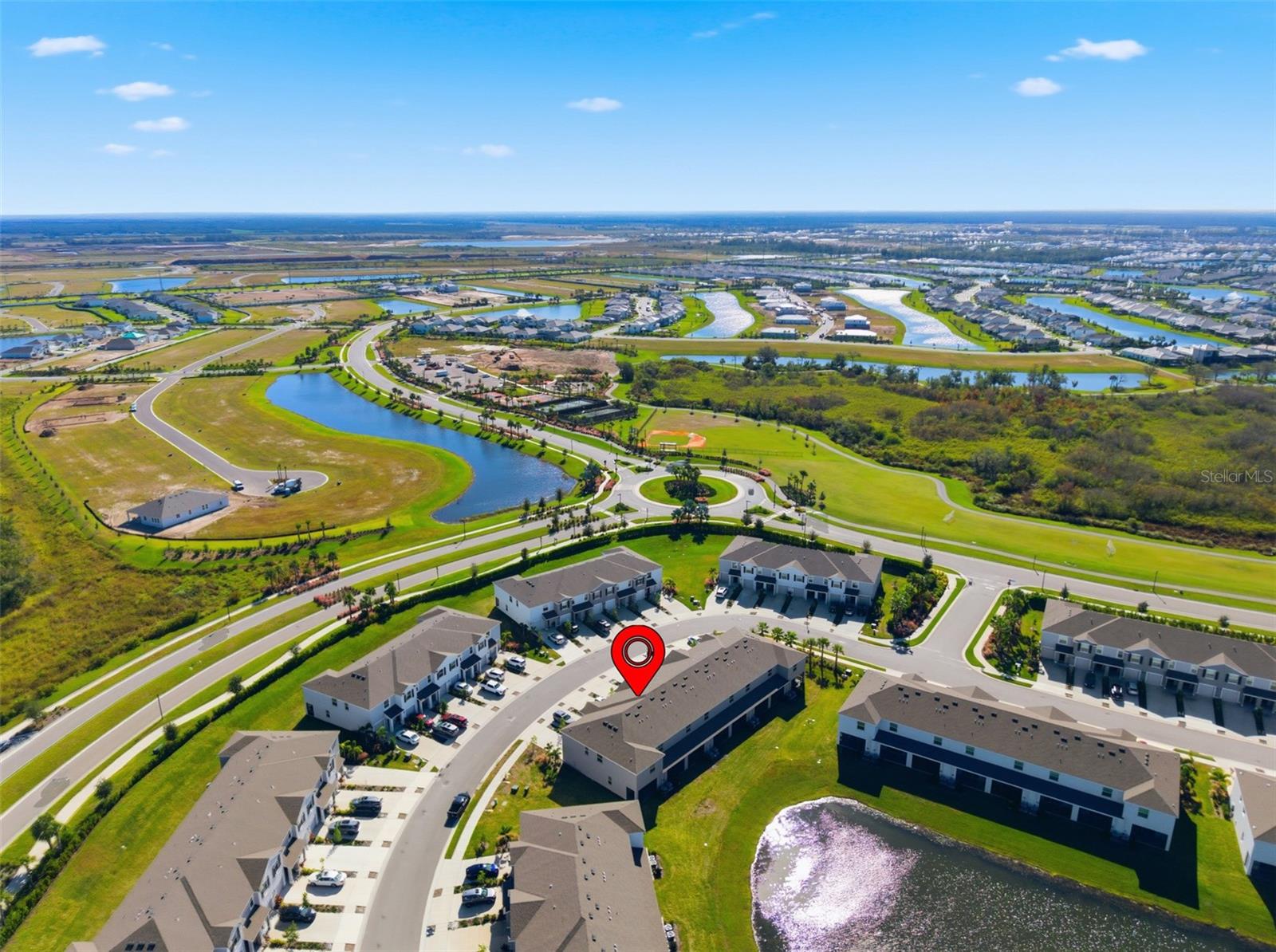 THIS PROPERTY QUALIFIES FOR A 1% LENDER INCENTIVE IF USING OUR PREFERRED LENDER! Practically Brand New Townhome in sought out Star Farms with Rich Resort-Style Amenities and maintenance free living! Both floors are concrete BLOCK construction. Welcome to this stunning 3-bedroom, 2.5-bath townhome offering modern design, open-concept living, and serene lake views. Enjoy granite countertops throughout, sleek finishes, and a bright, spacious layout perfect for entertaining or relaxing. Additional features include storage under the stairs and a screened lanai overlooking a lush green backyard--ideal for pets, gatherings, or peaceful sunset views.Upstairs, the primary suite features two walk-in closets and a spa-like bath with dual vanities and a walk-in shower. The two guest bedrooms with unique layouts for added privacy and share a beautifully finished full bath.This home also includes a 1-car garage with an extended 2-car driveway, accommodating up to four vehicles--a rare find! Located in the sought-after Star Farms community, residents enjoy resort-style living with 3 sparkling pools, multiple fitness centers, a caf, tiki bar, full-service restaurant, pickleball and tennis courts, basketball and volleyball courts, playgrounds, parks, and dog parks.Whether you're sipping coffee by the lake or dining poolside with friends, this exceptional townhome offers the perfect blend of comfort, convenience, and luxury living.