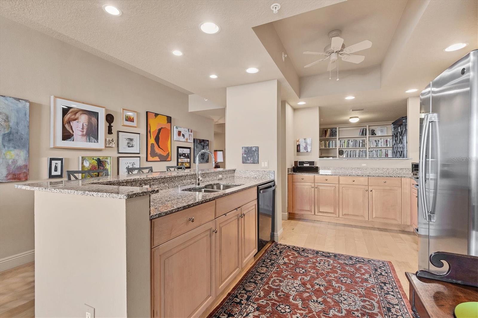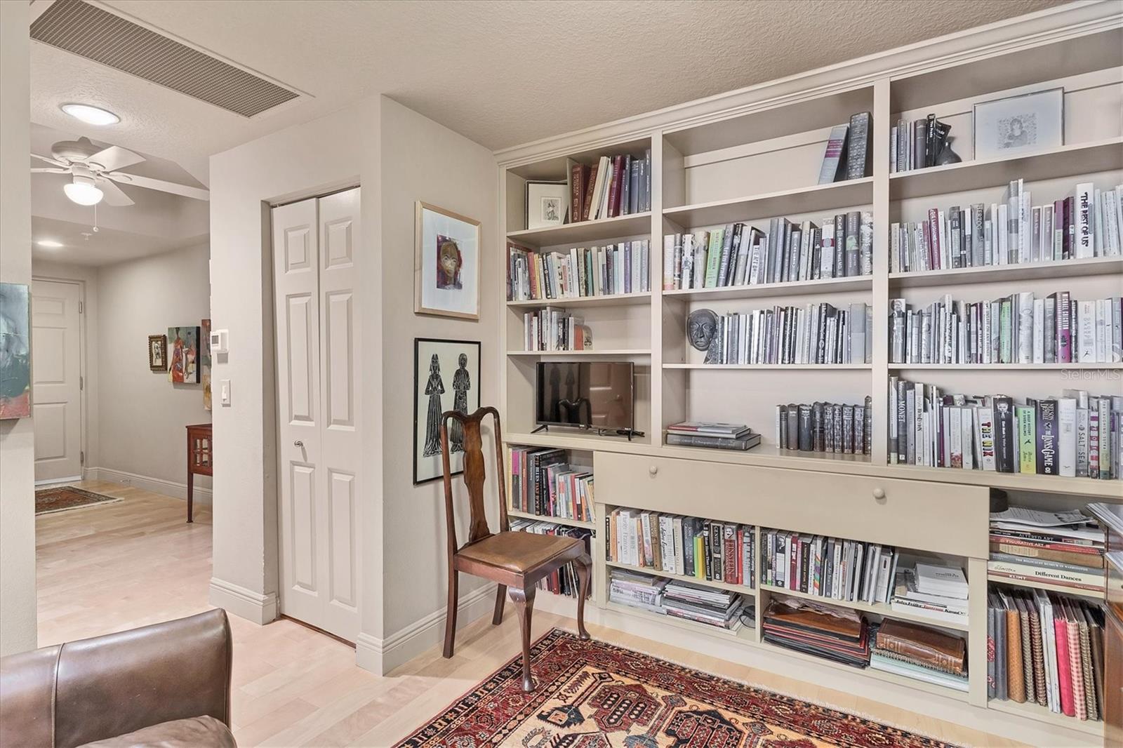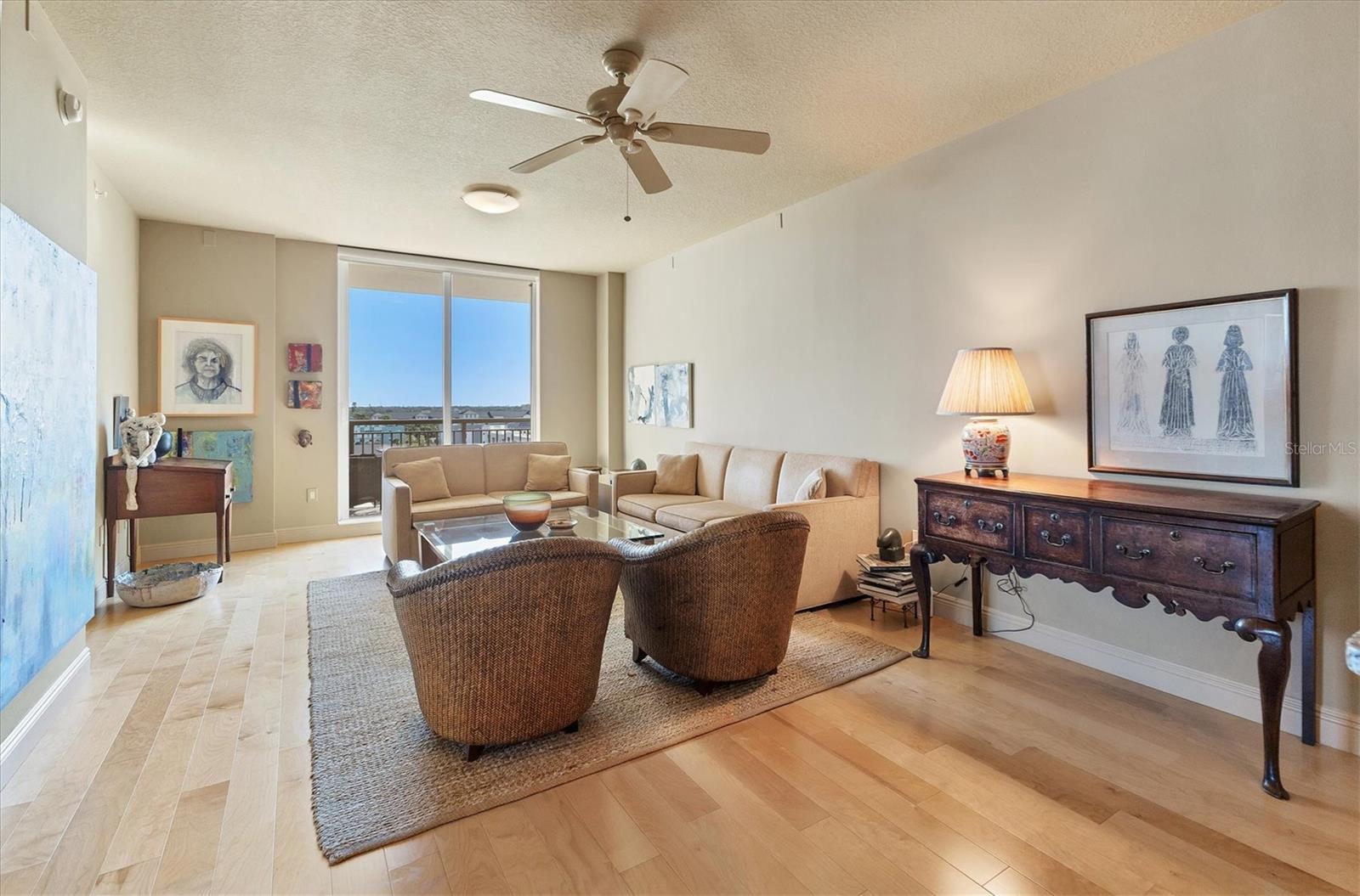 Live effortlessly in this stunning corner-unit residence located in Downtown Sarasota's coveted Rosemary District. With 1,484 sq. ft., two bedrooms plus a den, and two full baths, this home perfectly blends style and comfort. Natural light pours through large windows, accentuating the elegant maple hardwood floors and high ceilings. The chef's kitchen is a showpiece--featuring custom cabinetry, expansive countertops, and a central island designed for entertaining. The den, with built-in shelving, provides the ideal space for a home library or creative studio. The primary suite offers serene comfort with thoughtfully designed closets and refined finishes. Additional highlights include electric blinds, a covered terrace, a temperature-controlled storage unit, and a dedicated parking space. The community's amenities are unparalleled--offering every convenience imaginable, including 24/7 concierge services, guest parking, three guest suites, on-site management and maintenance, a lap pool, spa, sauna, fitness center, movie theater, club room, billiards and game lounge, business office, library, dog run, wine-tasting room, and EV charging stations. Internet and streaming services are included in the HOA for added convenience. Enjoy a true sense of community with monthly resident events designed to bring neighbors together. Savor the best of Sarasota--fine dining, the Van Wezel Performing Arts Hall, and the vibrant downtown scene--all just steps from your door.