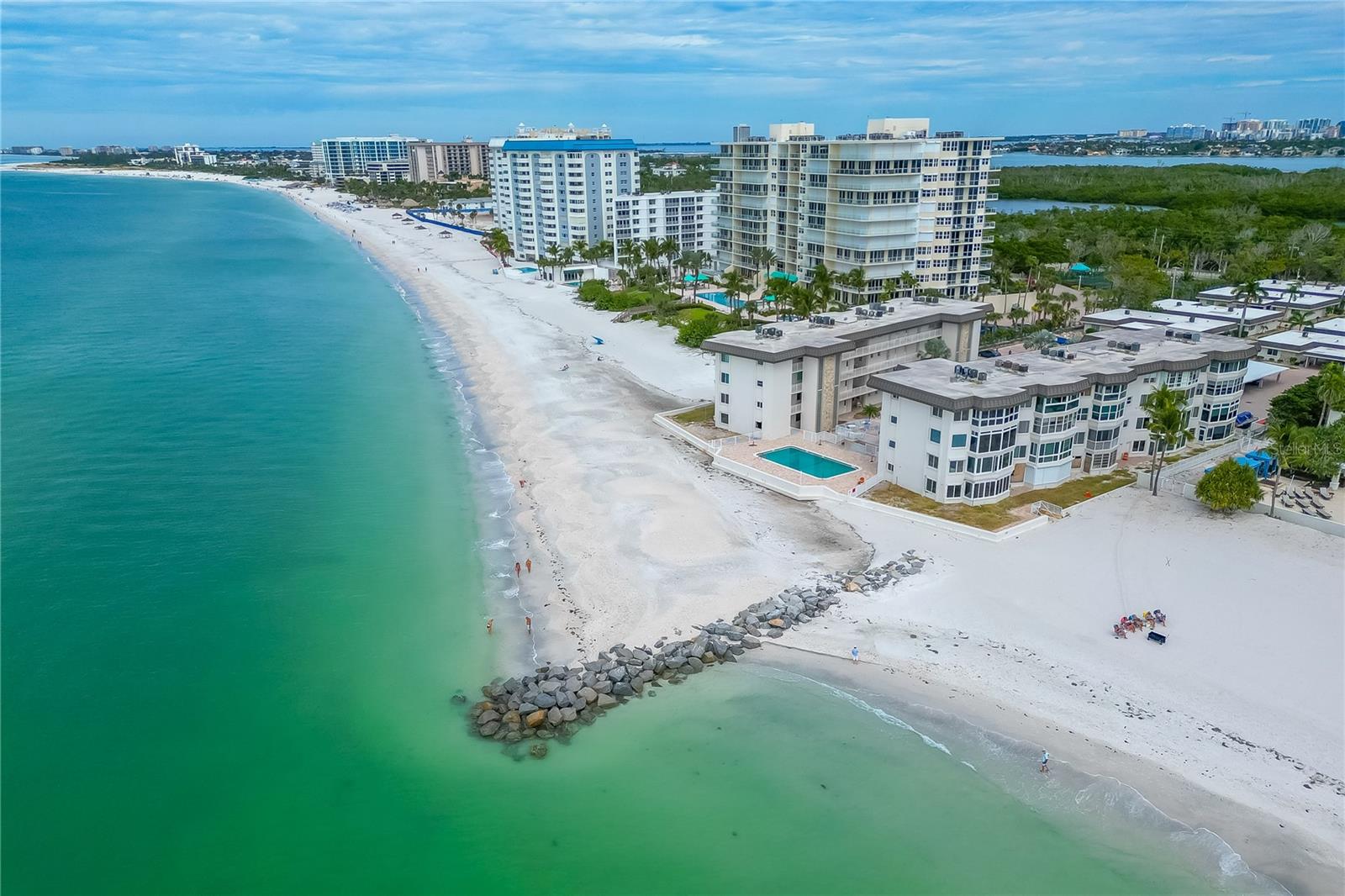 A rare find on Lido Key, this ground-level Villa offers the space and privacy of a home with the convenience of condominium living. These Villas are seldom available, often passed down through generations, making this an incredible opportunity for the discerning buyer or investor. The unit has been renovated from the studs out, addressing and exceeding all standards following recent storm activity. The result is a better-than-new, completely move-in-ready residence featuring a bright, airy floor plan. The kitchen boasts brand new appliances and sleek finishes. This 2-bedroom, 2-bathroom unit includes an enclosed Florida room perfect for a flexible office, den, or guest overflow. Unique benefits include a private carport and an in-unit washer and dryer. For investors, this Villa represents a prime rental property opportunity in a high-demand location. Amenities feature a maintenance-free environment with a sparkling ocean-view pool overlooking the Gulf of Mexico.