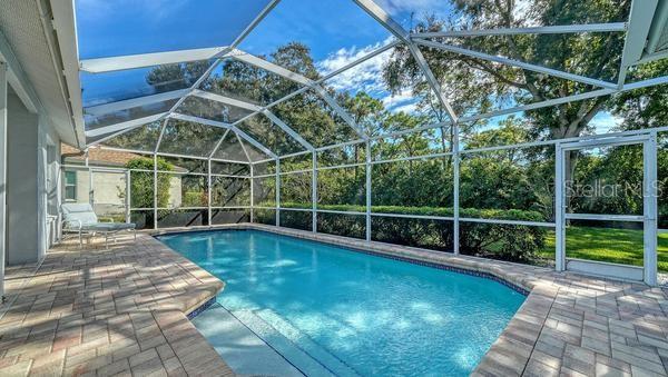 Welcome to 9528 Hawksmoor Lane, located in the highly sought-after gated community of Stoneybrook Estates on Palmer Ranch. This spacious home features over 2,000 sq. ft. of living space, a two-car garage, and a crystal-clear pool recently resurfaced. It is loaded with curb appeal, from the pavered driveway to the pavered pool deck. As you enter the home, you are greeted with a serene view of the pool, high ceilings, and a split floor plan. The updated kitchen is a delight with solid wood cabinets, newer appliances, and granite countertops, and overlooks the family room. The cozy breakfast nook has custom window shades that, when raised, highlight the beautiful pool view and there is a dining area that is currently functioning as added living space. The huge master suite is an absolute retreat, flowing with natural light and features a sliding glass door out onto the pool area, an ensuite with two sinks, a garden tub, a glassed-in shower, and an ample walk-in closet. The two additional bedrooms are on the opposite side of the home, allowing for privacy for both owner and guests, and the guest bath is adjacent to the guest bedrooms. The home is equipped with two alarm systems, has accordion shades on all windows except bathrooms, and has a separate laundry room and a two-car attached garage. The pool deck area has been recently updated with pavers that match the front driveway. Membership in the semi-private Stonebrook Golf and Country Club is not required or offered in this section of the community. However, non-members may dine at the clubhouse. Stoneybrook at Palmer Ranch is a gated community with mature landscaping and well-kept homes, conveniently located to schools, shopping, Costco, the YMCA, Pinebrook School for the gifted, and the Legacy Trail, which offers walking and biking access. Best of all, you are less than 8 miles from the sugary sandy beaches of Siesta Key, the village shops, and restaurants. In less than 25 minutes, you can be downtown Sarasota to experience the cultural and culinary offerings that Sarasota is known for. Don't miss this home - call to see it today.