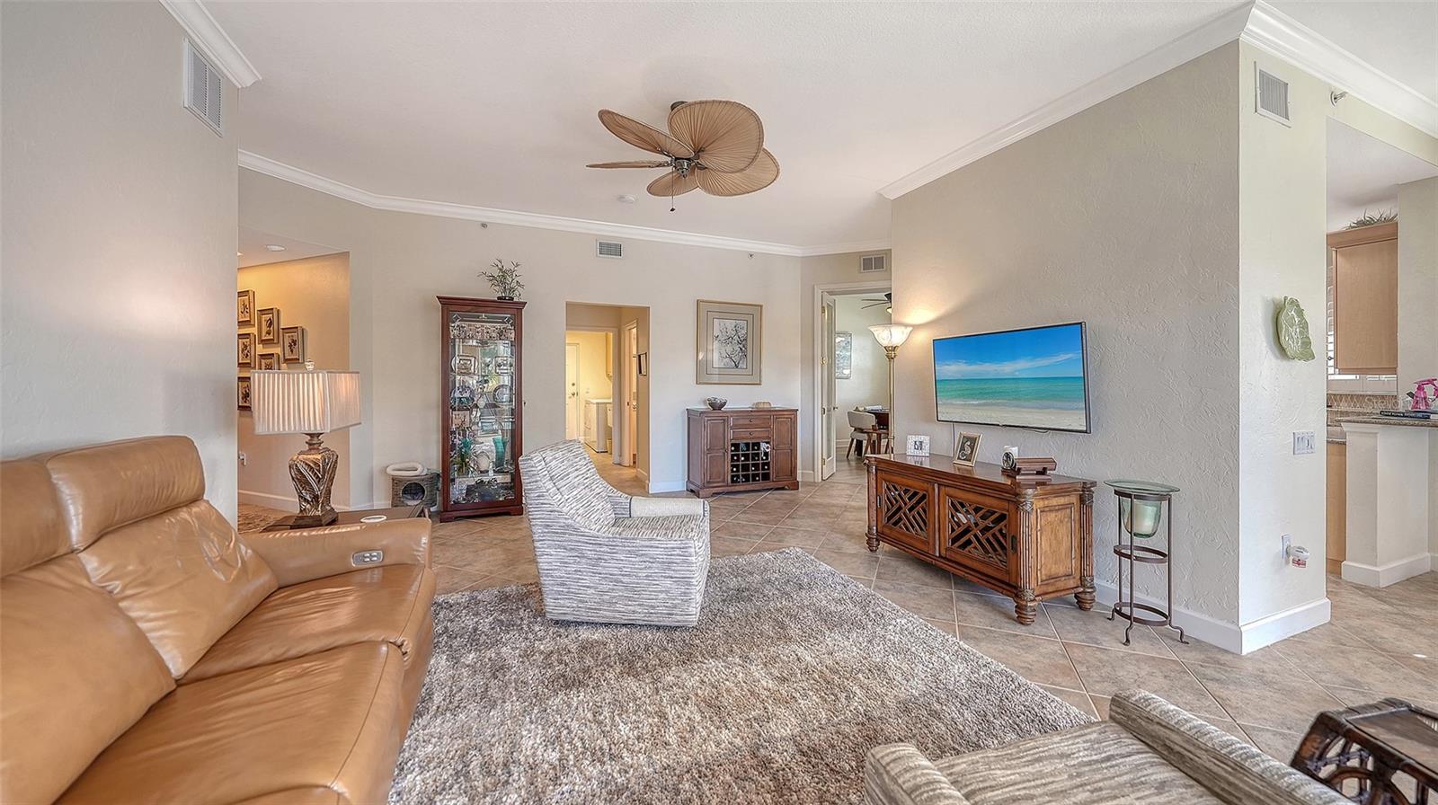 Exceptional water views from this rarely available ground floor condo with attached 2 car garage. 2 generous bedrooms plus an office which could be 3rd bedroom with 2 full baths. Beautiful tile floors throughout main living area. 2 year old AC & new tankless water heater. Kitchen features wood cabinets, granite counters & newer stainless appliances. Botanica is the ultimate in maintenance free living. The fee includes: all exterior maintenance, cable TV, water sewer, exterior insurance, beautiful community center, 2 heated pools, state of the art fitness center & updated clubhouse. This exclusive gated community is conveniently located in the heart of Palmer Ranch near shopping, Legacy bike trail & a short drive to world famous Siesta Key Beaches.