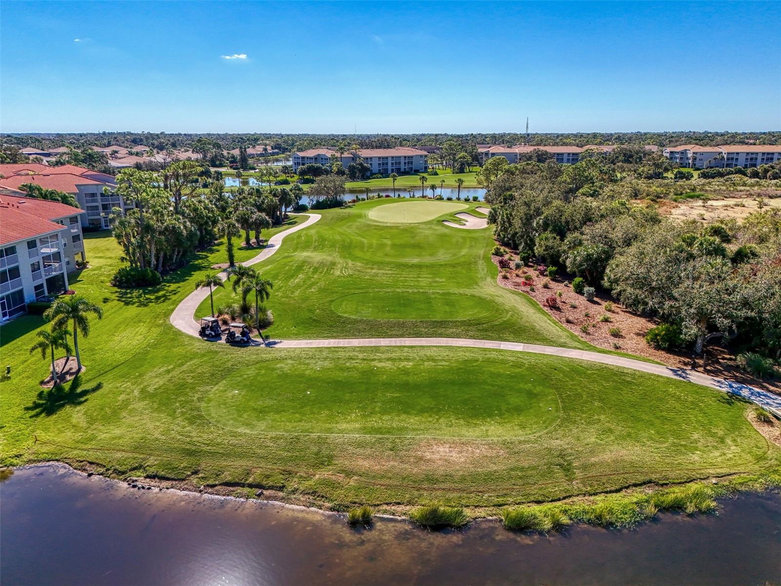 Enjoy shimmering water views and panoramic vistas of the Stoneybrook Golf & Country Club's 1st green and fairway from your 3rd floor end unit condo. It's all about the water view. There is an abundant display of Florida wildlife all day but especially at dawn and during spectacular sunsets. Delightful, superbly maintained 2 bedroom, 2 bath unit with a large, slider-enclosed lanai. Light and bright with an open floor plan and high ceilings. Extra square footage with enclosed, under air lanai. Perfect for relaxing, entertaining or just enjoying the Florida lifestyle. This home is move-in ready and offered turnkey furnished. There is an elevator for convenience and easy access. This is your year-round or seasonal home! Clubside offers a tennis/pickleball court, pool and outside grill. Stoneybrook Golf & Country Club on Palmer Ranch is a gated community where membership and golf privileges are included with this home purchase.Stoneybrook Golf & Country Club features a magnificent, redesigned and refurbished 18 hole championship golf course, large heated swimming pool, fitness center, 4 tennis courts, bocce and a clubhouse with a restaurant. Stoneybrook hosts an extremely full social calendar as well as golf and tennis leagues and events. The monthly fees for the condo are $461.33, paid quarterly at $1,384. The MLS automatically adds the annual golf fee into the monthly fee reported above.Located adjacent to the Legacy Trail and between downtowns of Sarasota and Venice AND close to the world famous Siesta Key Beach. Stoneybrook Golf & Country Club has the best of many worlds. Nearby is shopping, fine dining, doctors and more. Three international airports are within one hour's drive, Sarasota airport is within 30 minutes. Your new lifestyle awaits.