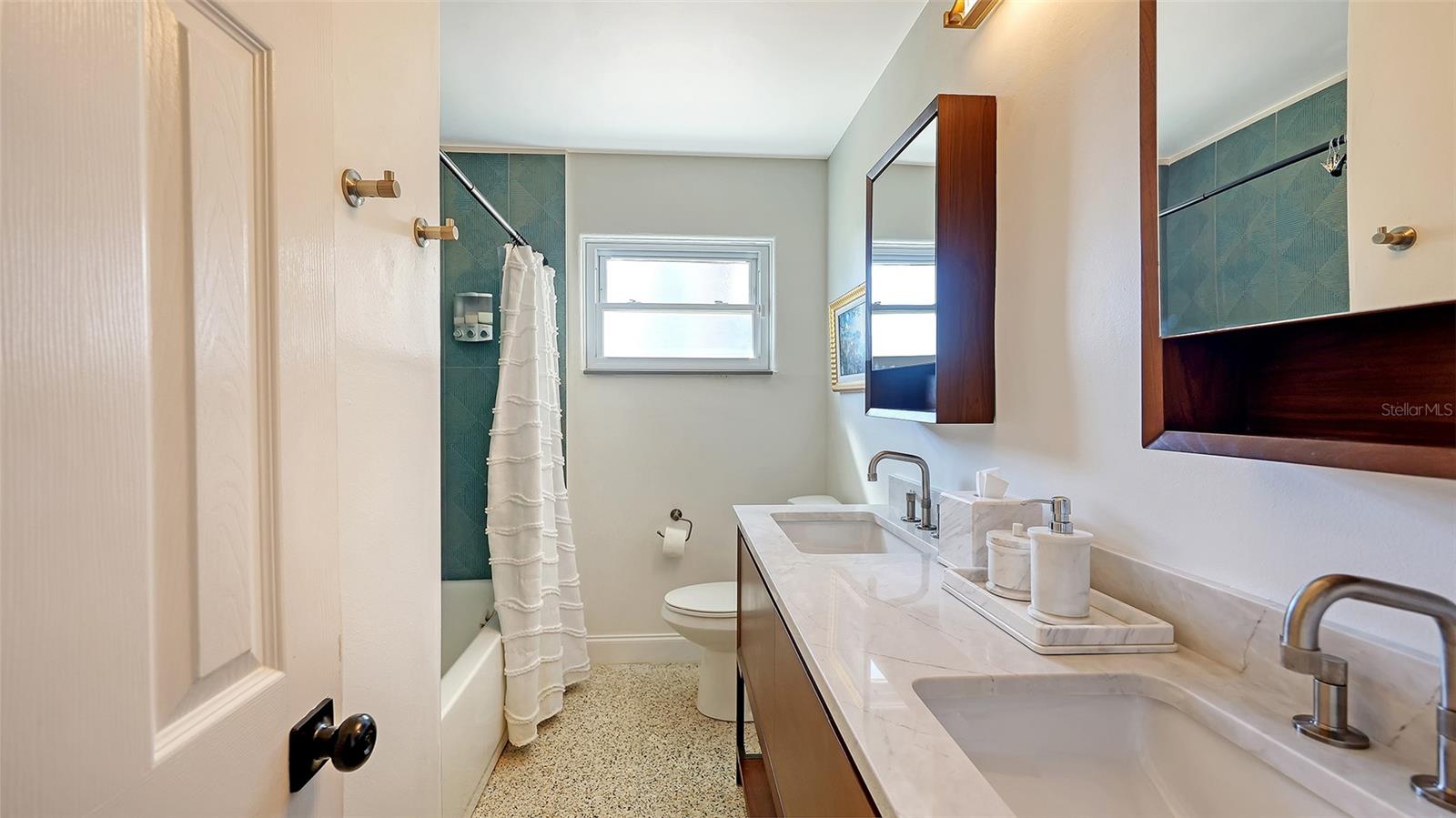 In one of the most sought-after neighborhoods, Arlington Park, sits this beautifully updated Mid-Century South Gate home in the highly acclaimed Southside School district. Offering just under 2,000 sq. ft. of under-air living space and 2,797 total sq. ft.--which includes a 2-car garage, under-air laundry room, and a "must-have" screened-in lanai--this property is a true unicorn. Beyond its generous interior, the home boasts restored gorgeous Terrazzo floors, an oversized pool and outdoor space that is both magical and practical.As you arrive on Hibiscus Street the tropical landscaping, warm and inviting exterior with timeless appeal, metal roof, and paver driveway immediately set the tone for the lifestyle that awaits inside. Step through the front door to a light-filled open floor plan, where the kitchen, living, and dining areas flow seamlessly. The expansive kitchen is a chef's dream, featuring stunning quartz countertops, a large center island, and abundant storage. Its open design is perfect for family meals, entertaining, or simply enjoying the backyard oasis through floor-to-ceiling glass doors.The primary suite offers a private ensuite bathroom and two large closets, creating a peaceful retreat. Two additional bedrooms feature oversized windows and ample closet space, providing flexibility for family, guests, or a home office. The secondary bath impresses with gorgeous tile, a large dual-sink vanity, and a bathtub/shower combo. Additional storage is available via a convenient entryway closet, while the separate laundry room and two-car garage add everyday convenience.Step outside to a private backyard paradise. WOW! The sparkling oversized pool is the centerpiece, complemented by a charming screened-in lanai perfect for relaxing or entertaining in any weather. The backyard also features low-maintenance turf and a sprawling paver patio, ideal for alfresco dining, lounging, or social gatherings. As evening falls, the outdoor space transforms into an enchanting haven for stargazing and enjoying serene Florida nights.Arlington Park itself offers an abundance of amenities, including tennis courts, two pools, basketball courts, a playground, a dog park, a walking park, and an outdoor recreational fitness center--making it easy to enjoy an active, vibrant lifestyle right in your neighborhood.Just 7 minutes from downtown Sarasota, you'll enjoy world-class arts, culture, and dining, while the legendary Siesta Key Beach is only 12 minutes away. Southside Village, with its boutique shops, fabulous dining, and Morton's Gourmet Market, is mere minutes from your door.With thoughtful updates, an open layout, oversized bedrooms, generous closet space throughout, and exceptional indoor-outdoor flow, this Southgate gem delivers the ultimate Florida lifestyle. Whether spending sunny days by the pool, cozy evenings in the lanai, or enjoying the convenience of top-rated schools and vibrant local amenities, this residence blends style, comfort, and an unbeatable location.More than a home--it's a lifestyle.