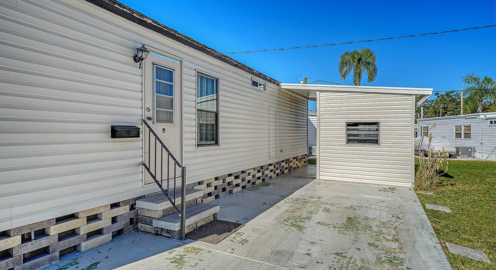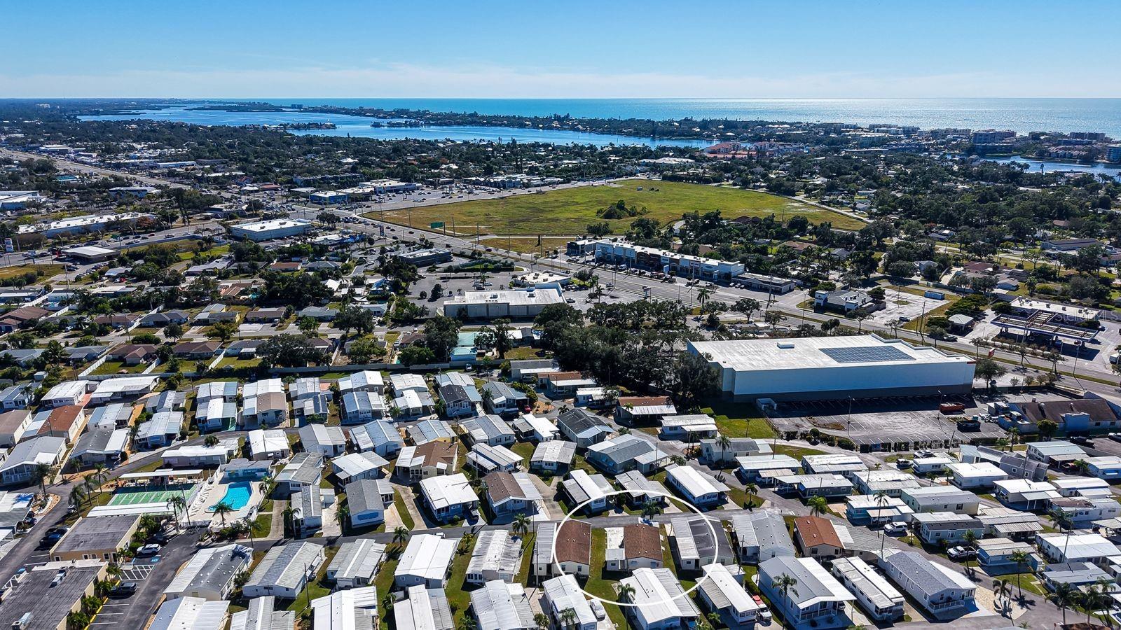 Luxury Vinyl Flooring installed November 2025. This well maintained mobile home is the lowest priced, fully furnished, 2 Bedroom, 2 Bath in the park! It is centrally located and within minutes to the world renowned Siesta Beach! Many other improvements by Sellers include the following: Disposal 2018, Air Conditioner 2019, Refrigerator 2020 and Shingle Roof 2014. The washer & dryer are located in the storage shed with a laundry sink & storage. Very open floor plan with a large great room that offers a high ceiling and the front kitchen and dining room with a built-in are very welcoming. A front patio/lanai has many windows and allows you to relax and enjoy your coffee on the cool mornings. The primary bedroom has a huge walk-in-closet. Southwinds Mobile Home Park is a resort style community that is 55+ and is located with easy access to shopping, dining and entertainment. This mobile is located on a quiet street near the back of the park and is a short walking distance to the clubhouse & amenities which include a heated swimming pool, shuffleboard & horse shoe pits. Central water and central sewer, cable TV, lawn care and affordable monthly fees of only $195 make this co-op community the best choice for you! The friendly homeowners and the convenience of the on-site management office make it even better. This is the one for you!