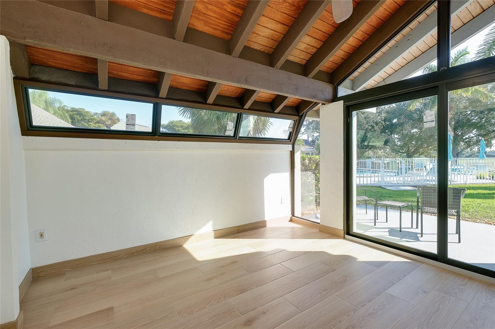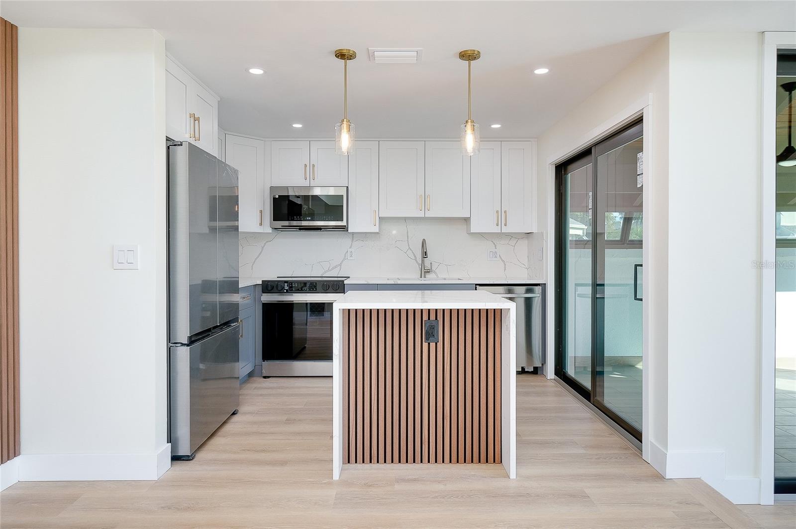 A Remarkable Opportunity in the popular Meadows community near UTC in Sarasota! Step into this stunningly remodeled 2 bedroom, 2 bath residence offering an open layout and expansive views of the golf course and community pool. Flooded with natural light, this home truly shines with its top-to-bottom renovations featuring premium finishes throughout. Nearly every element has been replaced, including high-value upgrades such as brand-new hurricane-rated windows and doors, a new AC system, hot water heater, luxury vinyl plank flooring throughout, and all new appliances--including washer and dryer. The kitchen and both bathrooms have been completely redesigned with modern, upscale style. The gourmet kitchen opens seamlessly to the dining and living areas and showcases stainless steel appliances, a quartz waterfall breakfast bar, and sliders that lead to the enclosed lanai and open patio beyond. The living room impresses with three sets of hurricane-impact sliders that frame serene golf course views, plus a stylish feature wall (that matches the dining room with a fireplace insert). The spacious primary suite feels like a private retreat, offering two closets, dual sinks, a walk-in shower, and its own patio overlooking the golf course. The guest bedroom is thoughtfully positioned on the opposite side of the home with an adjoining updated bathroom for added privacy. You can have peace of mind for years to come with the newer roof (2024) and all new hurricane windows/doors, plus low electric bills. Live like you're on vacation year-round in The Meadows--one of Sarasota's most desirable communities! Move right in and enjoy all that Florida has to offer with all grounds maintenance taken care of by the Association, along with the exterior maintenance of the building and pest control. Conveniently located off Honore near University Parkway, you'll enjoy close proximity to Lakewood Ranch shopping and dining, but with less congestion. Amenities include a clubhouse, heated community pool, fitness center, 8 new tennis courts, pickleball, playground, and 3 golf courses, all set among beautifully landscaped grounds with miles of walking and biking trails and lakes. Country Club membership is optional, and The Meadows Golf Courses are set to open very soon! Just minutes from world-famous Siesta Key Beach, other Gulf Coast beaches, St. Armands Circle, and major sports complexes, this location truly offers the best of Sarasota living.
