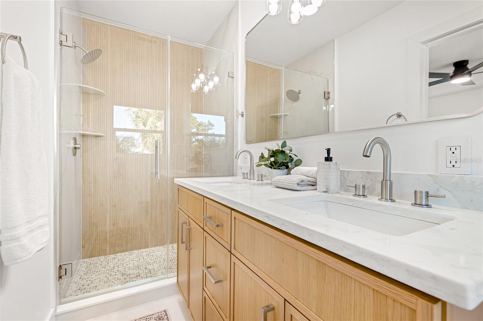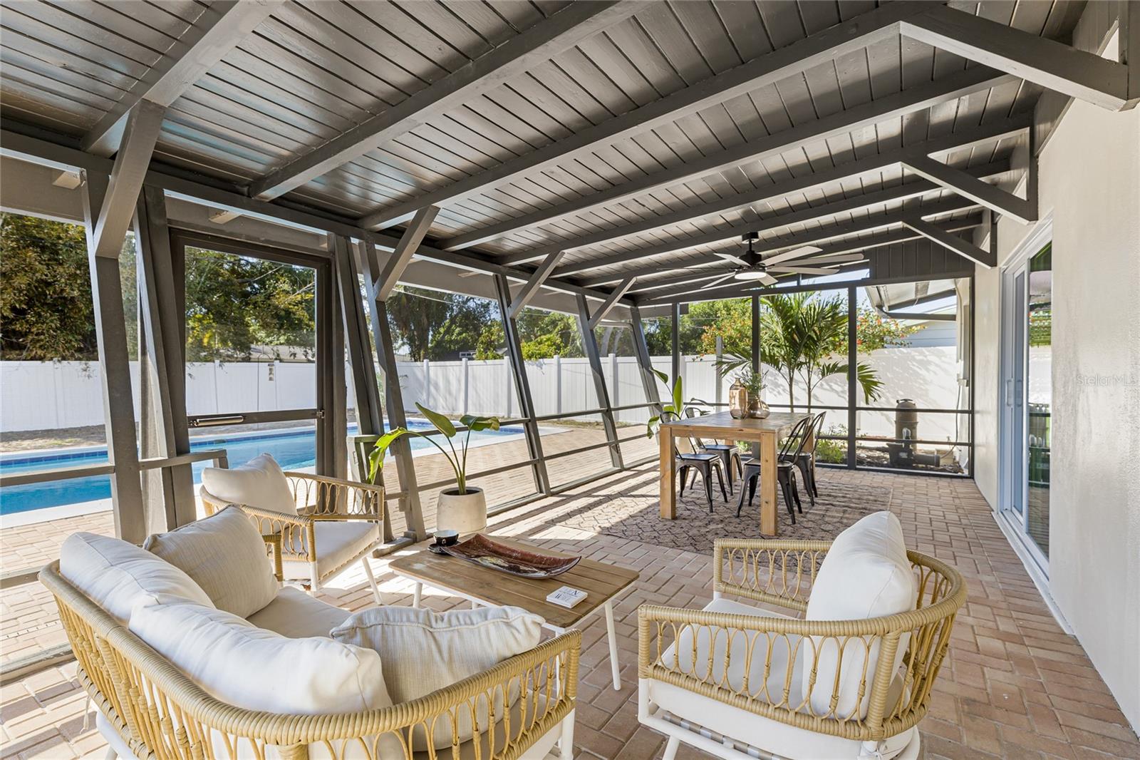 A complete 2025 renovation brings a fresh, move-in-ready experience to this South Gate pool home. Major improvements include a new roof, hurricane impact windows and doors, all new kitchen and baths, brand new HVAC and ductwork, a resurfaced pool, new pavers in the front and backyard, an updated garage with epoxy flooring, and an enclosed under-air laundry room that adds comfort and efficiency to daily routines. Inside, the open layout provides a bright and inviting atmosphere. The living room features a painted brick fireplace with quartz hearth, custom built-ins, and large windows that bring in natural light. The dining area flows into the screened lanai through impact sliders, creating a smooth indoor-outdoor connection. The kitchen has been fully redesigned with new cabinetry, quartz countertops, stainless steel appliances, a subway tile backsplash, and modern fixtures. Both bathrooms have been updated with new vanities, premium tile, and contemporary finishes. The primary suite includes a custom built-in closet system that enhances storage and organization. The backyard expands the living space with the spacious screen-enclosed lanai and wide paver deck surrounding the resurfaced pool, offering room for relaxing or entertaining. The extra deep side of the pool is perfect to to swim, cool off, or jump in after a long day, and the outdoor shower offers a convenient spot to rinse off after time at the beach. The fully fenced yard enhances privacy and provides a comfortable space for pets or outdoor activities. This location offers quick access to the north Siesta bridge, giving you an easy route to Siesta Key and its coastal lifestyle. Shopping and dining are close by, and Downtown Sarasota and Bayfront Park are only minutes away, offering waterfront views, restaurants, and cultural attractions. This renovated South Gate home brings together thoughtful updates and a central Sarasota setting, creating a low-maintenance property fully ready for its next chapter. **THIS PROPERTY QUALIFIES FOR A 1% LENDER INCENTIVE IF USING PREFERRED LENDER. INQUIRE FOR MORE DETAILS.**