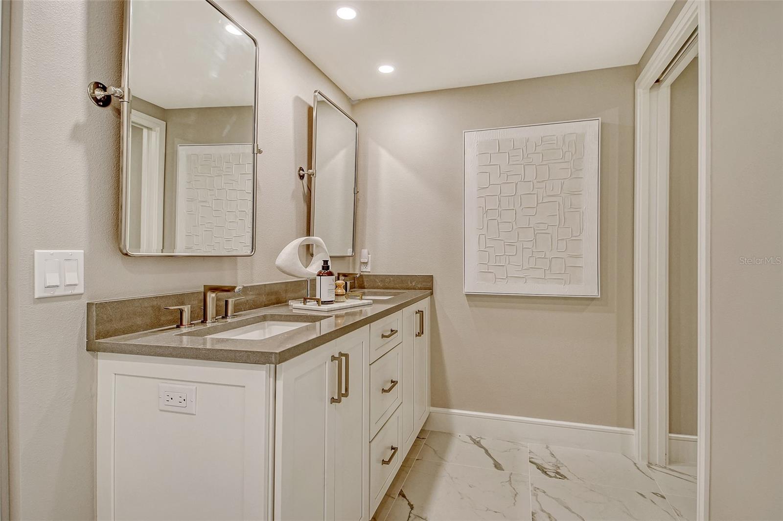 Welcome to your dream oasis. December 2024, fully renovated, turnkey-furnished unit, directly on the Gulf, at Sunset Beach. This stunning retreat boasts spectacular renovations, featuring a custom kitchen with solid wood cabinets, a light commercial-grade hood fan and elegant quartz countertops throughout. The kitchen has a GE Monogram induction stove with a convection oven, a GE Monogram refrigerator and dishwasher, and a Sharp microwave drawer. You can experience the convenient laundry room with a Speed Queen washer and dryer. Endless Tankless Tempra hot water system, bar refrigerator and a new air-conditioning unit. Both baths are equipped with Hansgrohe water fixtures and Kohler electric toilets. A complete trim package, including crown molding and solid core doors, enhances the finishings. Enjoy the seamless beauty of porcelain tile flooring throughout, complemented by a newer impact front door, high-impact windows and patio slider. Additional features include remote-controlled window shades and fans. Exterior enhancements grace the common hallways with new ceramic tile. Sunset Beach, a small gated community on southern Longboat Key, features three mid-sized buildings south of Publix and CVS. You'll find yourself close to a public library, tennis courts, banks, places of worship, restaurants and Town Hall. Embrace the lifestyle just minutes from world-renowned St. Armands Circle and Sarasota, where endless adventures await.