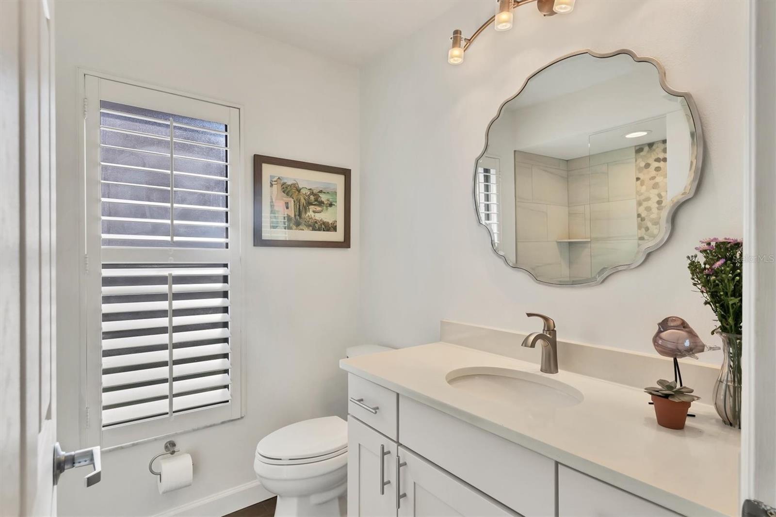 Discover refined living in this beautifully updated three-bedroom villa set in the sought-after lakefront community of Lakeshore Village in Sarasota. Positioned as an end unit, this residence is bathed in natural light from its many windows, vaulted ceilings and thoughtfully placed skylights, all enhancing its airy open floor plan. Enjoy serene water views overlooking a peaceful Audubon-designed rookery on Mirror Lake, where nature and luxury blend seamlessly. The remodeled kitchen is a chef's delight, featuring quartz countertops, soft-close cabinetry and premium stainless-steel appliances. The spacious primary bedroom offers a tranquil retreat with direct access to the lanai through sliding glass doors. Additional highlights include dual walk-in closets and a well-appointed en suite with dual sinks. Impact windows in the primary suite and office provide peace of mind and year-round comfort. This villa epitomizes maintenance-free living, allowing you to enjoy the community's exceptional amenities, including a heated saltwater pool, tennis courts, fishing, horseshoe pits and a vibrant recreation center. Just 15 minutes from Siesta Beach, downtown Sarasota and University Town Center, this home offers a blend of tranquility, convenience and luxury coastal living.