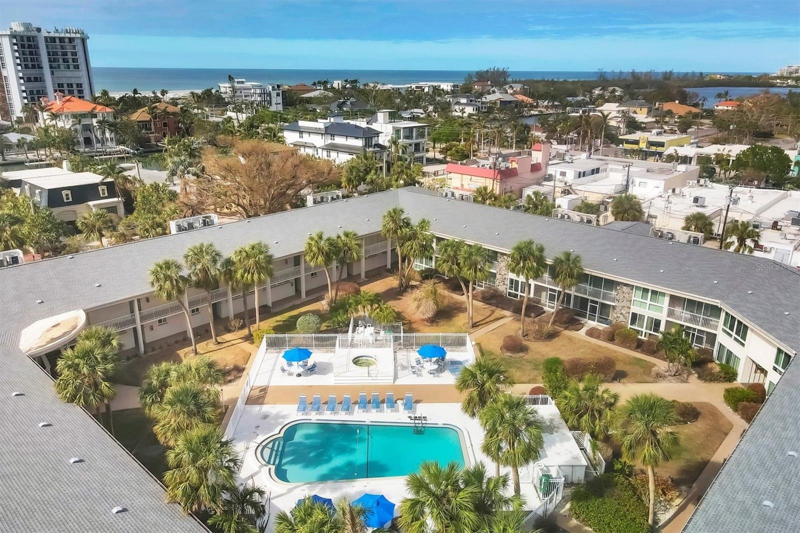 Rarely available unit in this "heart of St Armand's Circle" building. Literally steps to the shops and restaurants everyone loves and 2 blocks to the beach. You can't beat the location, minutes to downtown. This 1 bedroom, 1 bathroom condo has been RECENTLY UPDATED with a new kitchen, enlarged bathroom, IMPACT WINDOWS/DOORS and the building has a NEWER ROOF (2022)! Situated in a prime location within the building, it has beautiful views of the pool and courtyard from the living area. Additionally, the building has an elevator plus a laundry facility and is being sold TURNKEY FURNISHED with future bookings providing immediate cash flow. The building has a generous rental policy and this unit has a great rental history.