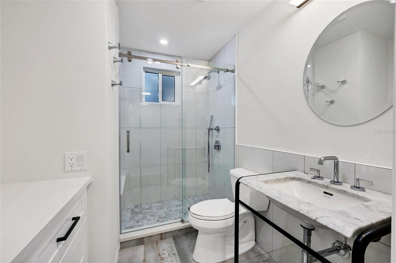 Renovated waterfront condominium in the sought-after Golden Gate Point neighborhood. Sleek modern design with open kitchen featuring custom cabinets, quartz counters and Kitchen-Aid appliances. Coveted great room design with crown molding, custom built-ins, modern light fixtures and luxury vinyl planking. Owners suite has 2 closets, updated bath with porcelain tile, sliding glass shower door and modern fixtures... both lighting and plumbing. Guest bath has been updated as well. Unit has laundry room with utility sink and more custom storage. All main living areas have picture perfect views from impact windows. Enjoy sunsets over the Ringling Bridge, views of Bird Key, an ever changing array of boats in the Bay, and even an occasional dolphin. The condominium association has done a modernization over the past few years. They have done a remarkable job creating an inviting, modern look to this building. Updated composite dock has room to enjoy the views of Sarasota Bay. Golden Gate Point is a short distance to Marina, The Bay Park, Harts Landing, Lido Beach, St Armands Circle, downtown's culture district, restaurants and shoppin