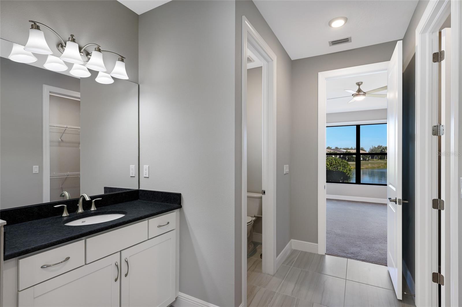 Cresswind a 55+ Gated Community in Lakewood Ranch! This gently lived-in 2 bedroom, 2-bath plus a spacious den with double doors that can function as a third bedroom, and a 2- car garage offers 1,671 square feet of bright, open living space and a stunning water view. Featuring elegant tile flooring, granite countertops throughout and well-appointed finishes. The primary suite offers, dual sinks with granite a tiled shower, 2 walk in closets, and plantations shutters. Garage has a 220 volt for electric car charging. This home blends modern and comfort with timeless style. Enjoy exceptional resort-style pool, resistance pool, spa/hot tub/whirlpool spa, walking trails, and landscaped walkways for strolls. Pet-friendly dog park, social opportunities, between scheduled events, clubs, group activities, and informal gatherings. Other amenities include tennis, pickleball, a vibrant clubhouse, fitness center. Easy access to shopping, dining, Sarasota and Tampa airports, Bradenton and Sarasota beaches.Move-in ready and beautifully maintained, this is the perfect retreat for those seeking an active and refined Gulf Coast lifestyle.