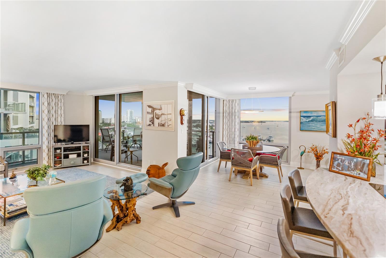 Prepare to be captivated by PANORAMIC BAY VIEWS of Sarasota Bay, Marina Jack, and the sparkling downtown skyline from this beautifully remodeled 12TH-FLOOR CORNER RESIDENCE in One Watergate's most sought-after stack. With 1,736 sq ft of light-filled living space, this 2-bedroom, 2-bath home offers an ideal blend of style, comfort, and everyday convenience.The spacious layout flows effortlessly from room to room, creating a home that feels both inviting and functional. Thoughtfully REMODELED from top to bottom, including an opened-up kitchen, fully remodeled bathrooms, updated finishes throughout, and hurricane-impact windows, the interior is modern, bright, and truly move-in ready. Everyday living is made simple with an in-unit washer/dryer and a covered, deeded garage parking space.Step onto your private balcony to watch sailboats drift across the bay, enjoy colorful sunsets, or unwind with peaceful waterfront breezes.One Watergate continues to evolve with extensive building improvements already completed, including new plumbing and electrical, along with a recently passed SIRS study. The community is now undergoing a full transformation of its common areas and gym, further enhancing its appeal. Residents enjoy tennis and pickleball courts, a beautifully updated pool area with grilling stations, on-site management, and secure entry.Perfectly positioned between the marina and downtown, this location offers unmatched WALKABILITY, stroll to restaurants, boutiques, cultural venues, Marina Jack, and the Ritz Carlton right next door. St. Armands Circle and Lido Beach are just minutes away over the Ringling Bridge.If you're searching for a warm, inviting, move-in-ready home with exceptional water views and true Sarasota downtown lifestyle convenience, then this 12th-floor residence is THE ONE.