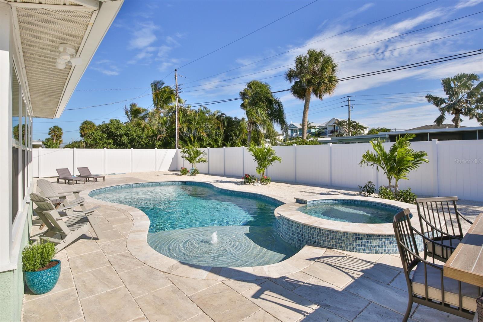 Introducing Hart of the Gulf, a charming ranch-style retreat nestled just 2.5 blocks from the pristine sugar sand beaches of Anna Maria. This enchanting home features three inviting bedrooms and two full bathrooms, offering ample space for families or groups. The master suite boasts a luxurious king-sized bed and an en-suite bathroom, while the guest rooms include a cozy queen bed and a fun twin-over-full bunk bed, making it perfect for all ages. Each bedroom is equipped with a TV, ensuring entertainment for everyone.Step into the open and airy living area, where sunlight pours in through large windows, creating a warm and welcoming atmosphere. Enjoy leisurely mornings in the enclosed Florida room, which offers serene views of the beautifully landscaped backyard. The kitchen is thoughtfully designed, complete with both a Keurig and a traditional coffee maker, providing all the amenities for your beach getaway.The highlight of this home is undoubtedly its private, heated saltwater pool and spa, set within a fenced backyard, ideal for relaxation and fun. Gather with loved ones around the patio dining table for six, lounge on the comfortable pool loungers, or fire up the gas grill for an afternoon barbecue. With additional amenities like professional linen service, complimentary Wi-Fi, and beach essentials--including towels, chairs, and a wagon--Hart of the Gulf ensures you have everything you need for a perfect vacation. Located within easy walking distance to shops and restaurants, and just a block away from the free island trolley, this home truly embodies the ideal beachside retreat.For those traveling with furry friends, Hart of the Gulf is dog-friendly (additional pet fee applies), allowing your pets to enjoy the vacation too. Don't miss the chance to experience this beautiful home where comfort and convenience meet the beauty of coastal living. Your dream beach vacation awaits!