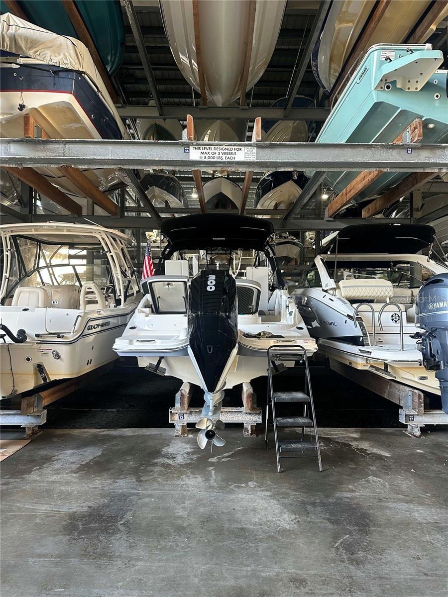 The slip can hold a boat with the maximum dimensions of 32.5L x 9'W x 9'H. This high-end dry boat storage facility has been hurricane rated. The facility houses 186 boat slips of varying sizes. The marina itself provides a full-service staff to handle all of your boating needs. This includes fuel, bait, ice, deli, drinks, pump out station, work racks supplied with water and electric. There is also an onsite boat detailing company, independent mechanic, as well as boat transporter. The marina is centrally located between Sarasota and Venice on Little Sarasota Bay. It is just minutes from Midnight Pass...the highly anticipated new opening project being reviewed by Sarasota County. Open seven days a week