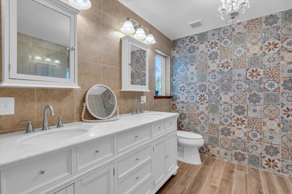 ISLAND LIVING ON WATERFRONT GRANDEUR--Experience unparalleled privacy and serenity on Florida's Hidden Gem, Terra Ceia Island, with this exquisitely renovated Key West-inspired residence at 1015 Bayshore Drive. This home parcel creates an extraordinary waterfront estate offering expansive space, unmatched flexibility, and a rare opportunity to curate your own island retreat without HOA or deed restrictions.Perfectly blending timeless architecture with elevated modern design, this residence welcomes you with a grand covered porch and double French doors leading into a soaring great room adorned with exposed wood beams, a striking wood-burning fireplace with carved mantle and stone surround, and sophisticated built-in cabinetry. With 4 spacious bedrooms, 4.5 baths, and a bonus room off the primary suite, the layout offers luxury, comfort, and versatility at every turn.Three guest suites feature beautifully redesigned ensuite baths with artisan tilework and premium finishes. The primary suite is a true sanctuary, showcasing vaulted beam ceilings, an oversized walk-in closet, and a spa-inspired bath complete with freestanding soaking tub, oversized walk-in shower, tiled feature wall, and an abundance of natural light. The adjoining bonus room--with five grand windows and private deck access--creates the perfect retreat for a home office, fitness studio, art room, or nursery overlooking the shimmering lake.The fully reimagined chef's kitchen impresses with a panoramic picture window, quartz countertops, soft-close custom cabinetry, new appliances, farmhouse sink, under-cabinet lighting, and a center island ideal for gathering. A dedicated laundry room sits just off the kitchen. Throughout the home, you'll find finely curated details including tray ceilings, elegant stair-risers, designer hardware, and custom millwork. A private lift connects the ground level to the main living floor for added convenience.The ground level offers a versatile game room with bath, entertainment quarters, abundant storage, and a 2-car garage with new epoxy flooring. Outdoors, multiple decks invite year-round enjoyment, while new landscaping, pebble pathways, gated entries, and charming light posts enhance the estate's tranquil ambiance. Peace of mind comes from a seamless metal roof and hurricane-impact windows and doors.The .53-acre homesite provides remarkable freedom--ample room for RVs, boats and trailers. Enjoy the stunning waterfront fruit garden or enjoy relaxing days fishing in your private lake surrounded by the mesmerizing sunsets over your expansive estate.All of this is set within Terra Ceia Island, a quiet and enchanting coastal enclave known for its natural beauty and unbeatable hidden yet central location--just minutes to conveniences, 8 minutes to shopping and dining, 15 minutes to Downtown Bradenton, 25 minutes to Downtown St. Petersburg, and easy access to Sarasota and Tampa. Nearby natural treasures include Terra Ceia Preserve State Park, Madira Bickel Mound State Archaeological Site, and Emerson Point Preserve. A 3-acre waterfront park with playground, pavilion, and boat ramp is also available through an optional $250 annual Civic Association membership. Want a slice of paradise, like Key West? Look no further! This is your chance, schedule your private showing today!