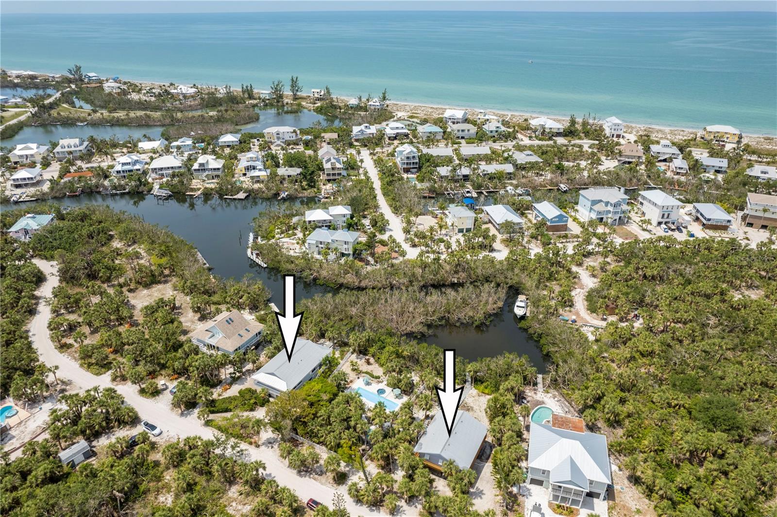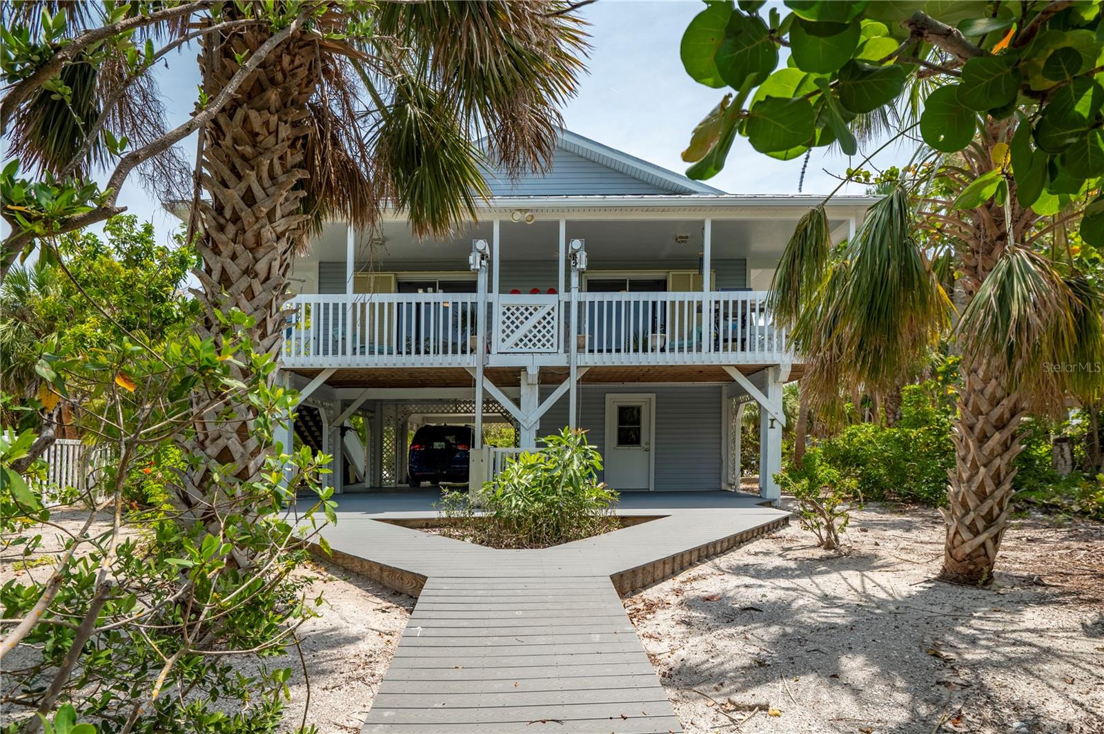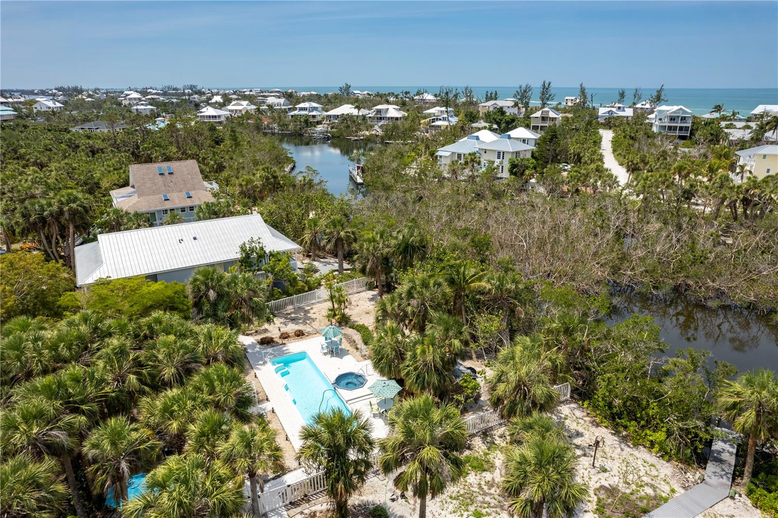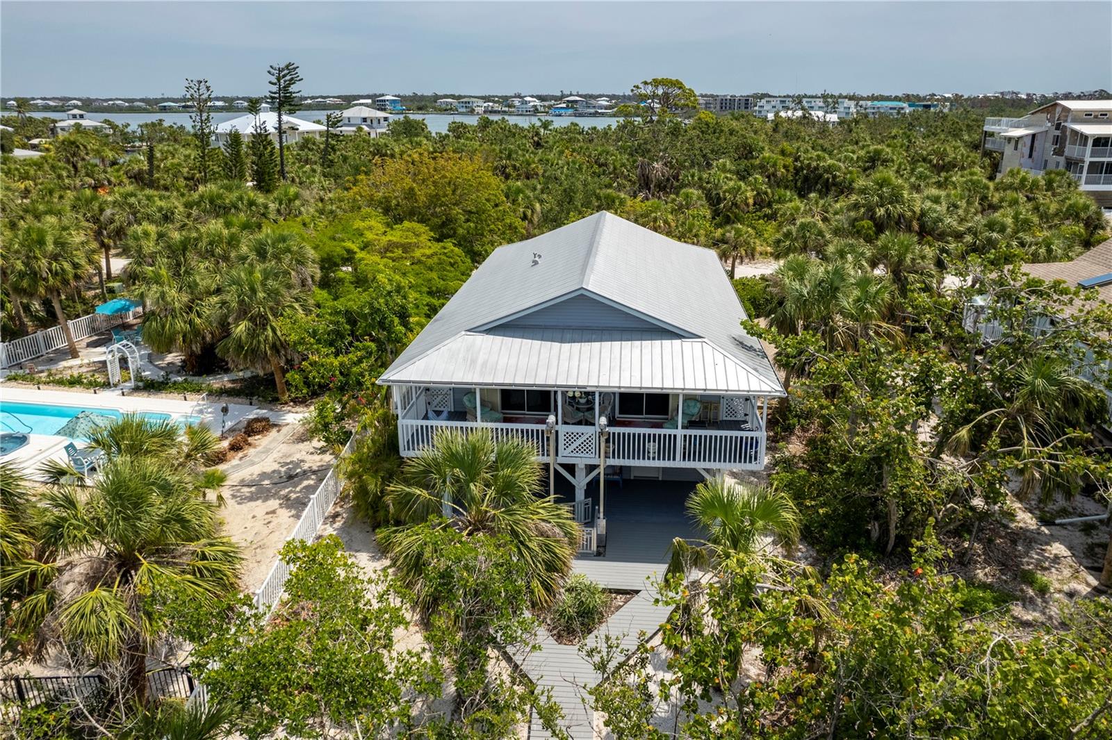 BEST OF BOTH WORLDS-BAYFRONT AND BEACH ACCESS! UNIQUE TROPICAL RETREAT ON 3 LOTS ON PALM ISLAND! 2 charming Key West style homes with shared pool on center lot located MERE minutes from the Intracoastal Waterway leading to the Gulf of Mexico! Together the properties offer 240 ft of waterfrontage with large dock (boat lift ready). 12' x 40' pool and spa are located on the center lot with paver deck and plenty of room to soak up the sun and enjoy amazing sunsets. Properties are surrounded by lush tropical landscaping giving you a private oasis and both have wrap-around decks to enjoy peaceful views in every direction. Listing details are the features and measurements for 17 Bayshore Circle. This beautiful home features 3 bedrooms, 2 baths, great room plan with high cedar ceilings and fireplace, casual dining area plus spacious kitchen with stainless appliances and breakfast bar. Bedrooms offer vaulted ceilings and plenty of closet space. Convenient outside lift to 2nd floor kitchen and 15' x 18' air-conditioned storage unit on ground floor. 13 Bayshore Circle is nestled among the palms and offers 2 bedrooms, 2 baths, 1,024 sf, great room plan with cathedral ceilings, coastal tones, vinyl tile flooring and loft. Both bedrooms feature slider to deck and fabulous views. New hot water heater, 10' x 12' storage unit on ground floor and covered parking. There is plenty of room for all your toys and pets to roam! See attachments for features of each property. Access to island is via quick car/passenger ferry ride or by boat. Great location just minutes from ferry on the barrier island of Palm/Knight/San Pedro Islands where you can enjoy peaceful living with secluded beaches, quiet walks, fishing, boating, kayaking and wildlife watching! This is a tremendous opportunity for vacation, snowbird, investment or permanent residence in one of the most beautiful islands on Florida's west coast.