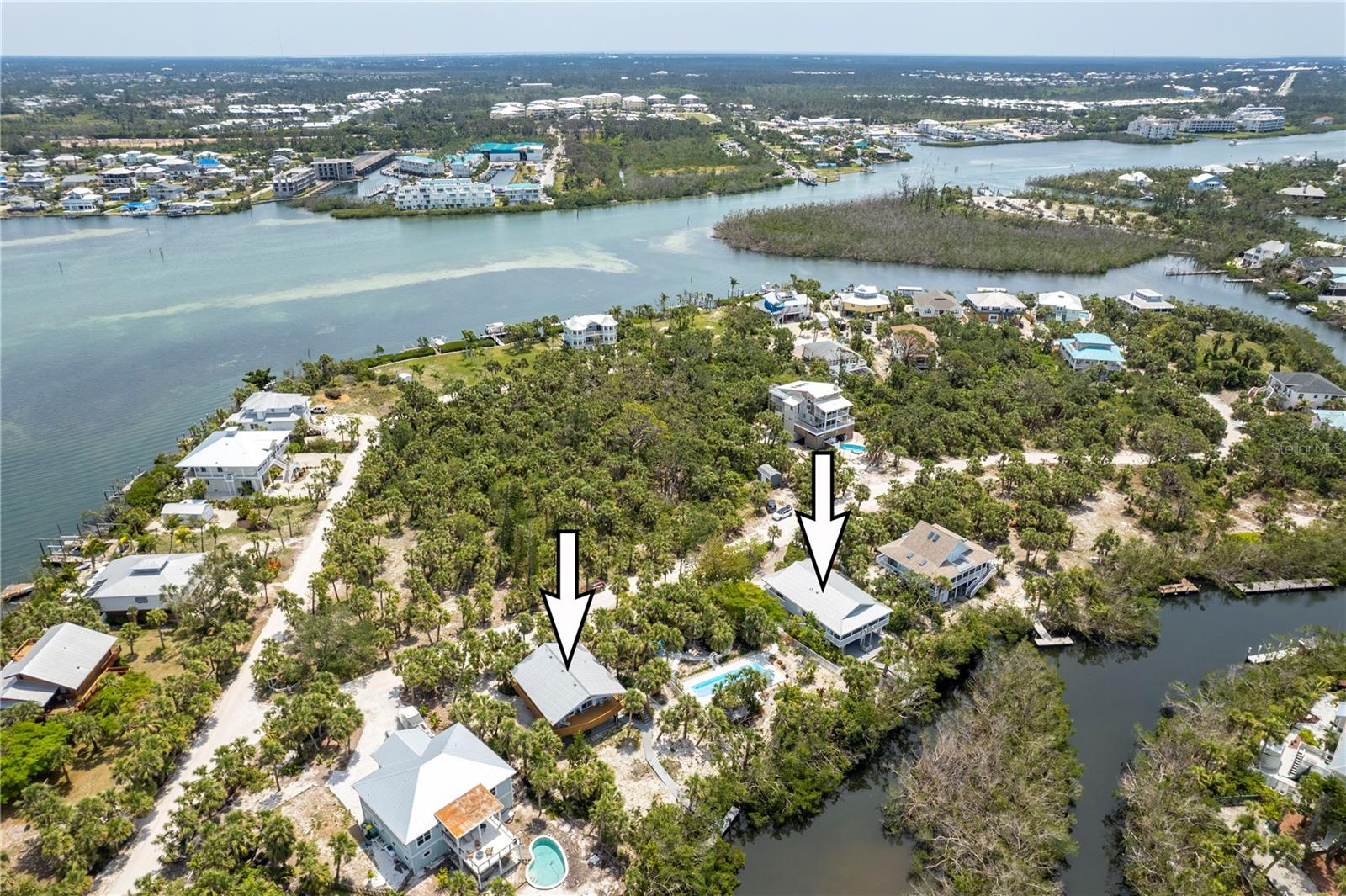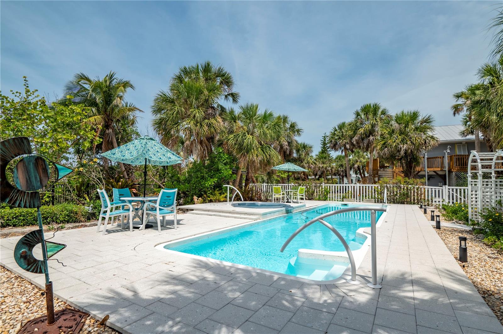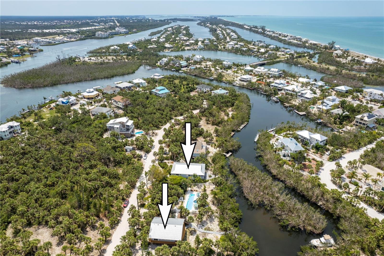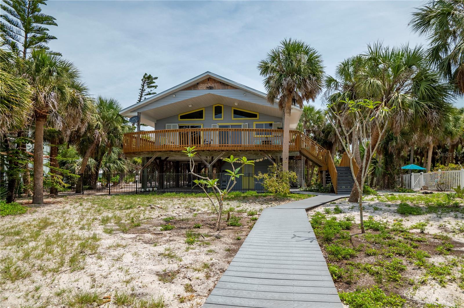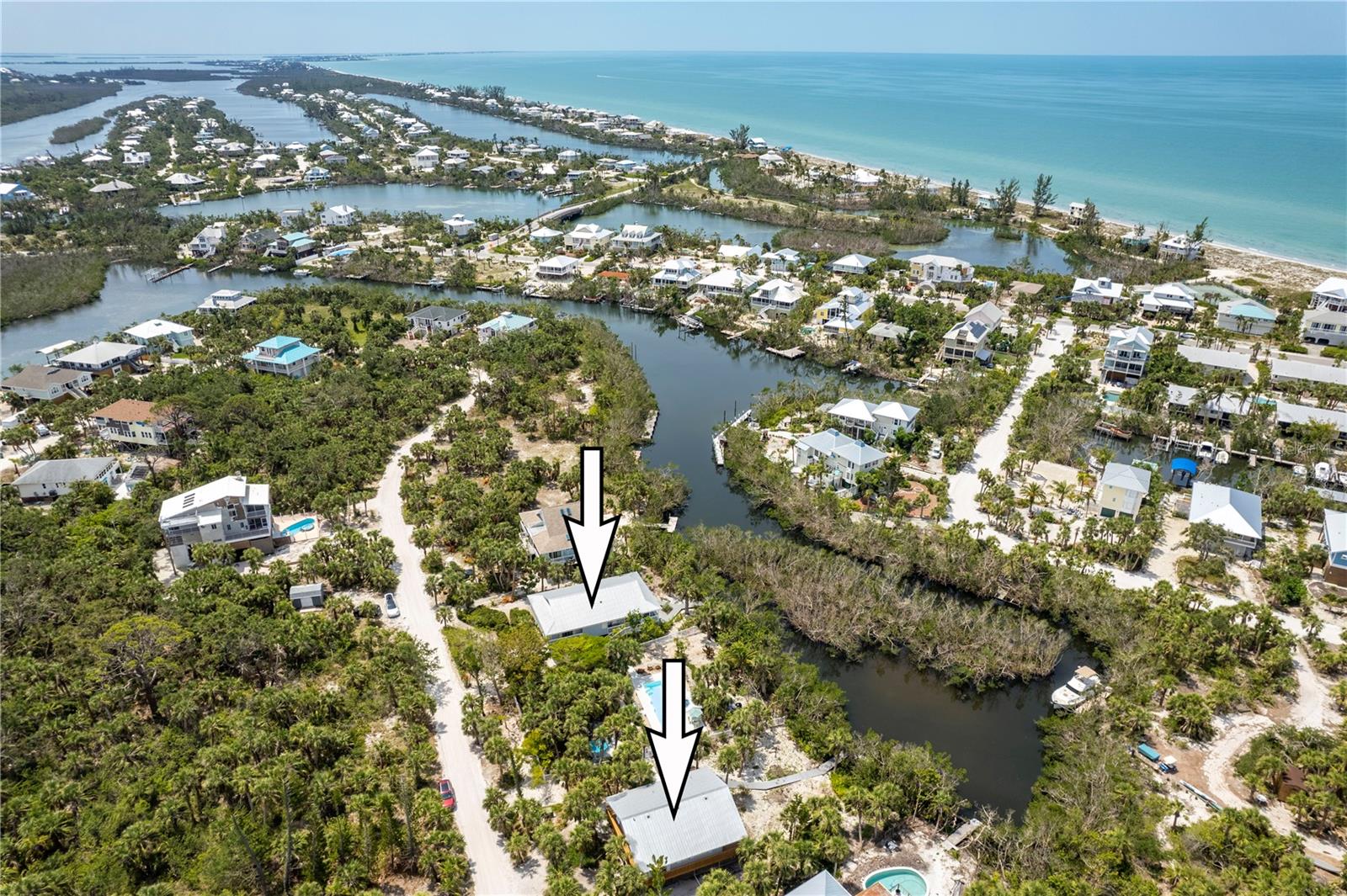 BEST OF BOTH WORLDS-BAYFRONT AND BEACH ACCESS! UNIQUE TROPICAL RETREAT ON 3 LOTS ON PALM ISLAND! 2 charming Key West style homes with shared pool on center lot located MERE minutes from the Intracoastal Waterway leading to the Gulf of Mexico! Together the properties offer 240 ft of waterfrontage with large dock (boat lift ready). 12' x 40' pool and spa are located on the center lot with paver deck and plenty of room to soak up the sun and enjoy amazing sunsets. Properties are surrounded by lush tropical landscaping giving you a private oasis and both have wrap-around decks to enjoy peaceful views in every direction. Listing details are the features and measurements for 17 Bayshore Circle. This beautiful home features 3 bedrooms, 2 baths, great room plan with high cedar ceilings and fireplace, casual dining area plus spacious kitchen with stainless appliances and breakfast bar. Bedrooms offer vaulted ceilings and plenty of closet space. Convenient outside lift to 2nd floor kitchen and 15' x 18' air-conditioned storage unit on ground floor. 13 Bayshore Circle is nestled among the palms and offers 2 bedrooms, 2 baths, 1,024 sf, great room plan with cathedral ceilings, coastal tones, vinyl tile flooring and loft. Both bedrooms feature slider to deck and fabulous views. New hot water heater, 10' x 12' storage unit on ground floor and covered parking. There is plenty of room for all your toys and pets to roam! See attachments for features of each property. Access to island is via quick car/passenger ferry ride or by boat. Great location just minutes from ferry on the barrier island of Palm/Knight/San Pedro Islands where you can enjoy peaceful living with secluded beaches, quiet walks, fishing, boating, kayaking and wildlife watching! This is a tremendous opportunity for vacation, snowbird, investment or permanent residence in one of the most beautiful islands on Florida's west coast.