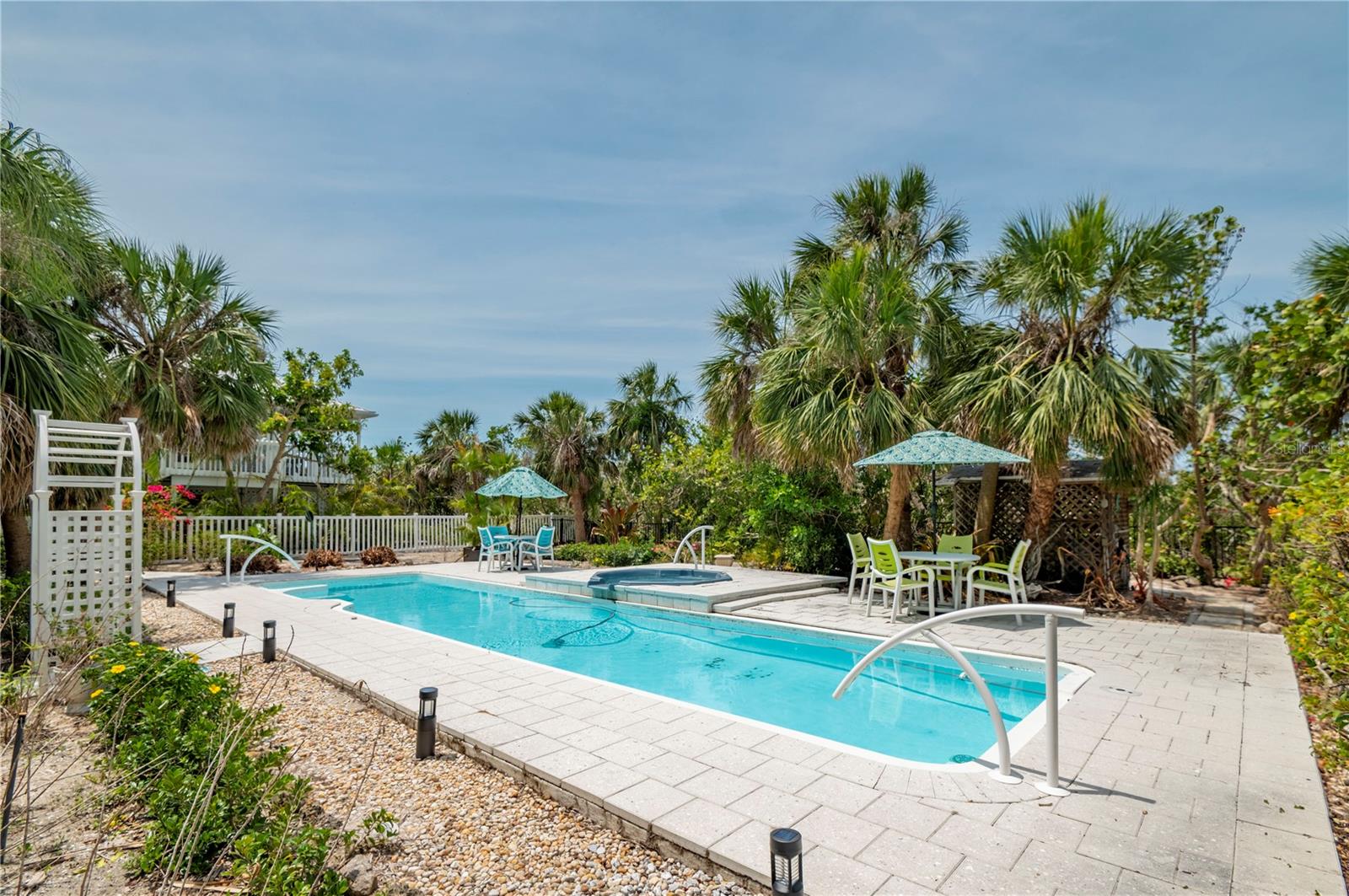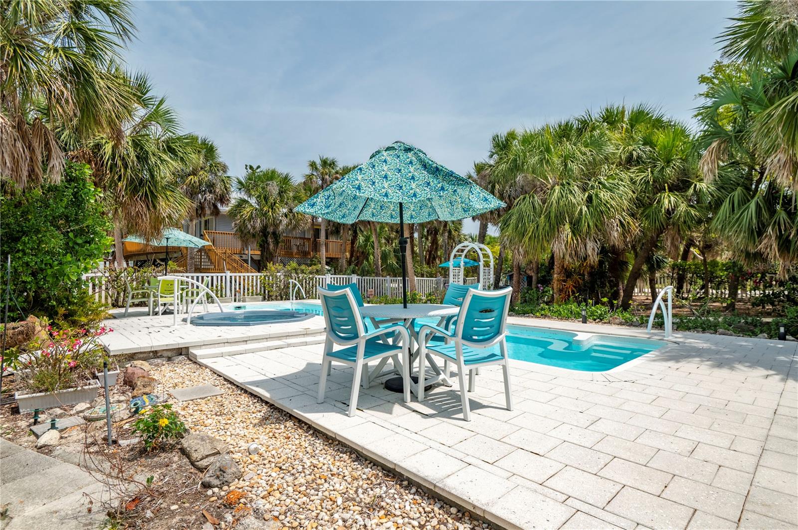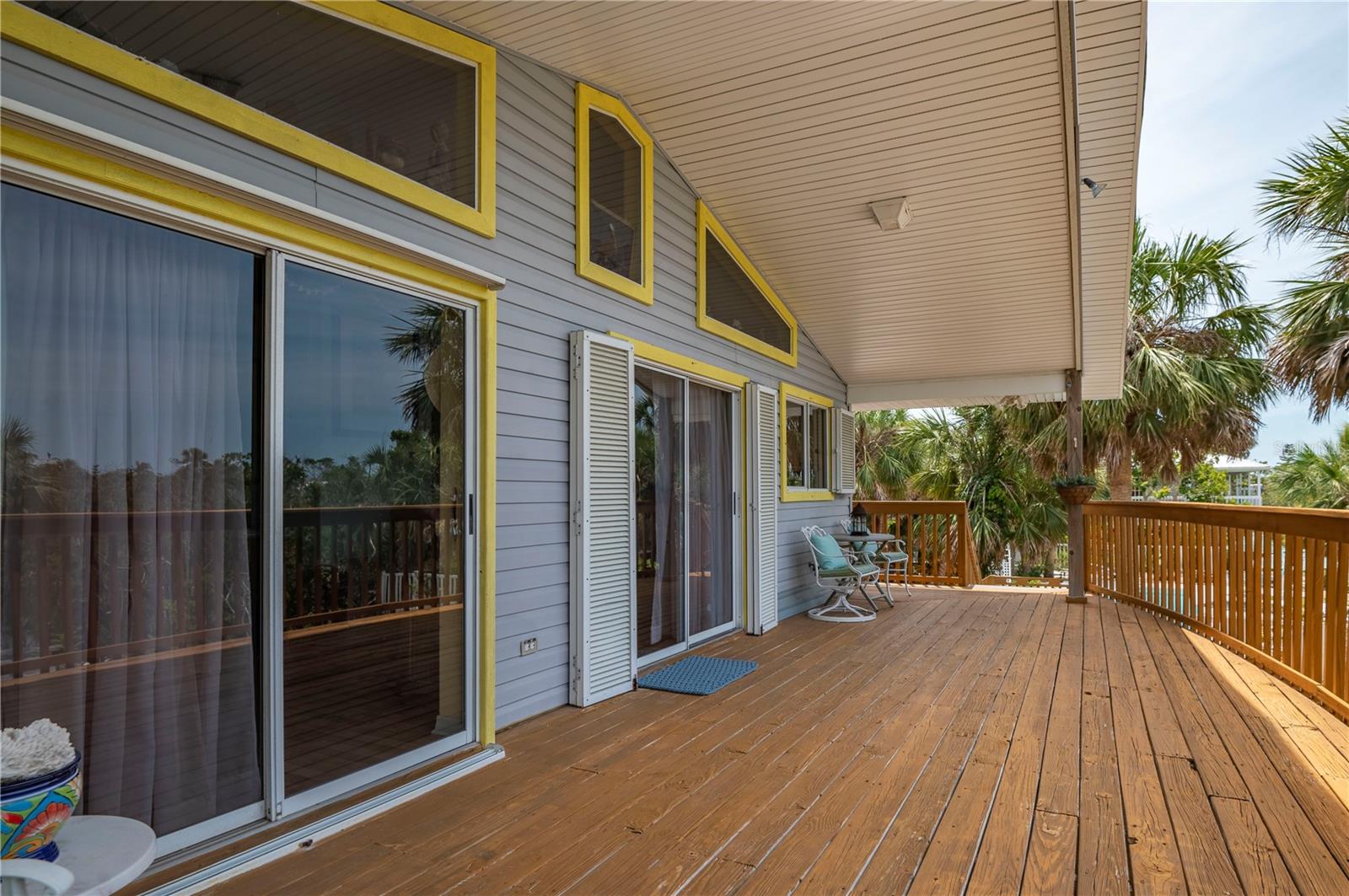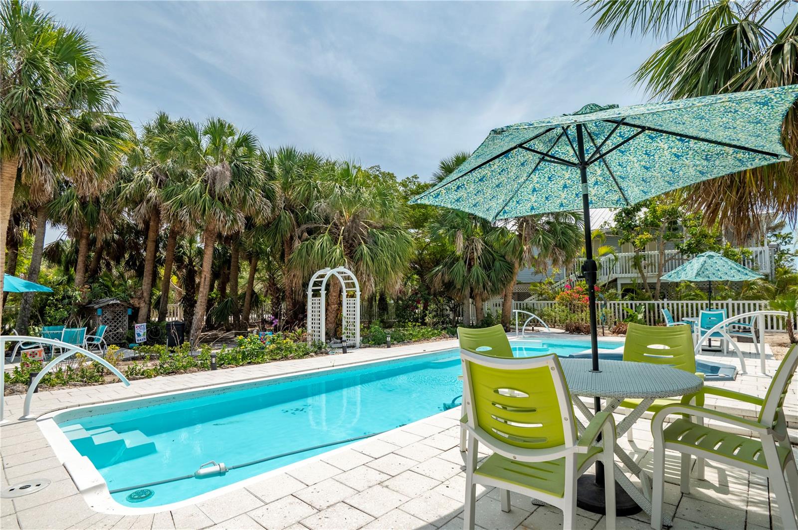 BEST OF BOTH WORLDS-BAYFRONT AND BEACH ACCESS! UNIQUE TROPICAL RETREAT ON 3 LOTS ON PALM ISLAND! 2 charming Key West style homes with shared pool on center lot located MERE minutes from the Intracoastal Waterway leading to the Gulf of Mexico! Together the properties offer 240 ft of waterfrontage with large dock (boat lift ready). 12' x 40' pool and spa are located on the center lot with paver deck and plenty of room to soak up the sun and enjoy amazing sunsets. Properties are surrounded by lush tropical landscaping giving you a private oasis and both have wrap-around decks to enjoy peaceful views in every direction. Listing details are the features and measurements for 17 Bayshore Circle. This beautiful home features 3 bedrooms, 2 baths, great room plan with high cedar ceilings and fireplace, casual dining area plus spacious kitchen with stainless appliances and breakfast bar. Bedrooms offer vaulted ceilings and plenty of closet space. Convenient outside lift to 2nd floor kitchen and 15' x 18' air-conditioned storage unit on ground floor. 13 Bayshore Circle is nestled among the palms and offers 2 bedrooms, 2 baths, 1,024 sf, great room plan with cathedral ceilings, coastal tones, vinyl tile flooring and loft. Both bedrooms feature slider to deck and fabulous views. New hot water heater, 10' x 12' storage unit on ground floor and covered parking. There is plenty of room for all your toys and pets to roam! See attachments for features of each property. Access to island is via quick car/passenger ferry ride or by boat. Great location just minutes from ferry on the barrier island of Palm/Knight/San Pedro Islands where you can enjoy peaceful living with secluded beaches, quiet walks, fishing, boating, kayaking and wildlife watching! This is a tremendous opportunity for vacation, snowbird, investment or permanent residence in one of the most beautiful islands on Florida's west coast.