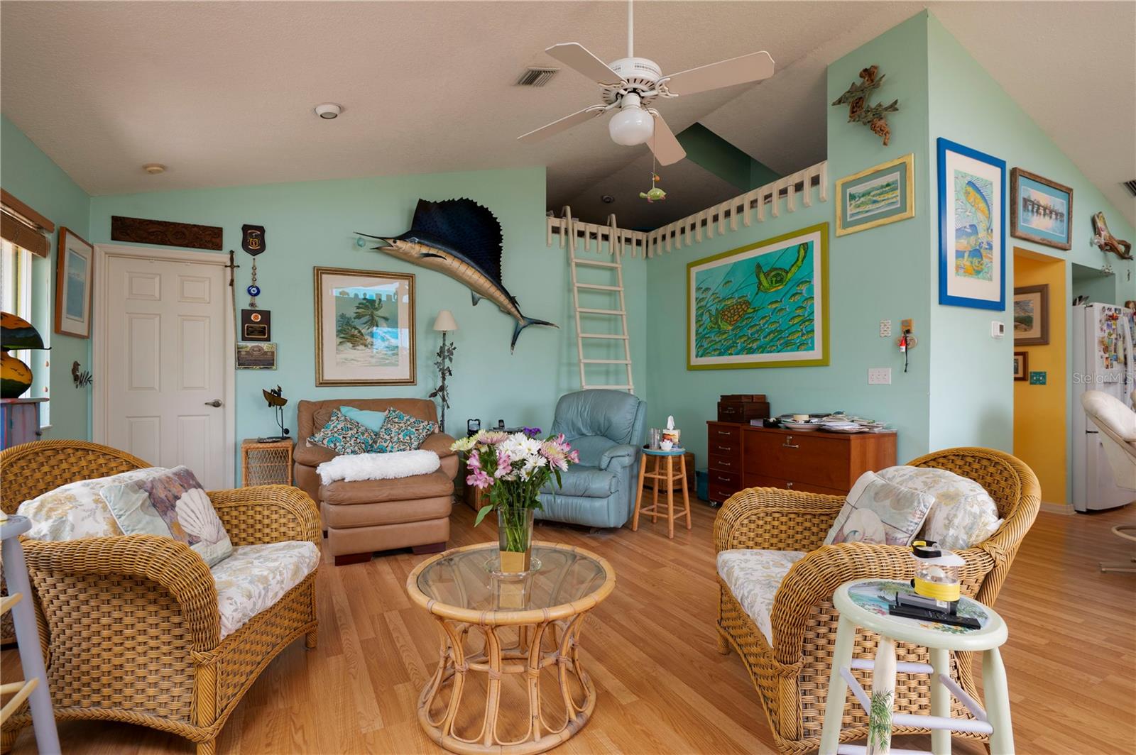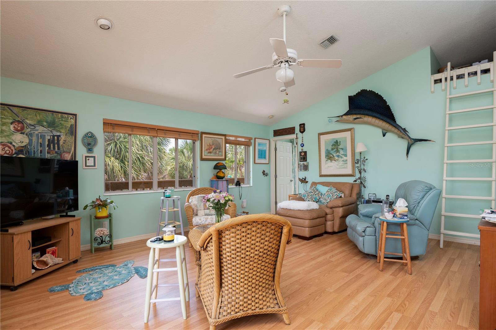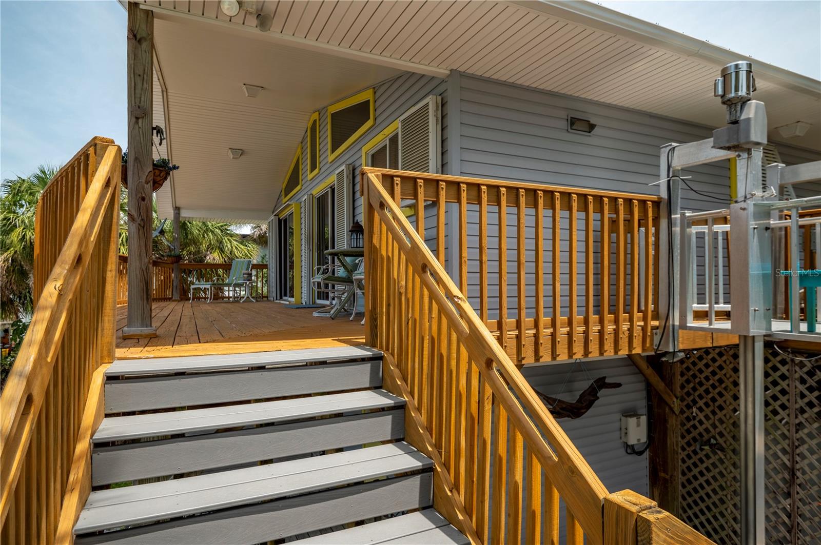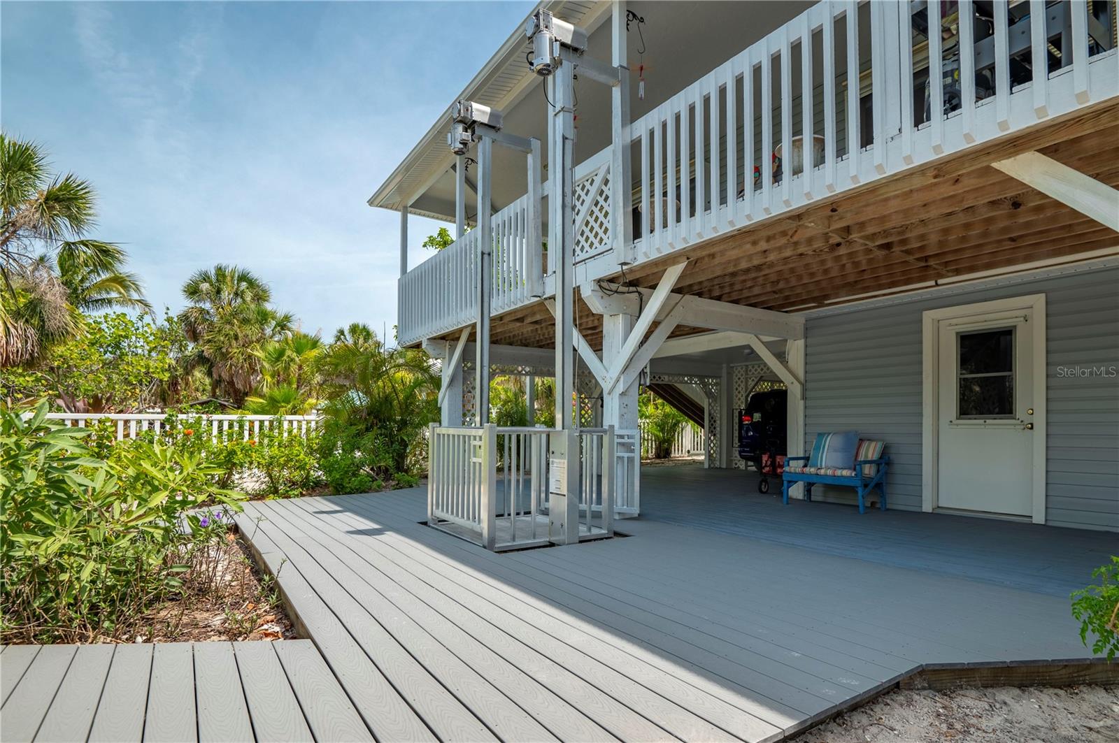 BEST OF BOTH WORLDS-BAYFRONT AND BEACH ACCESS! UNIQUE TROPICAL RETREAT ON 3 LOTS ON PALM ISLAND! 2 charming Key West style homes with shared pool on center lot located MERE minutes from the Intracoastal Waterway leading to the Gulf of Mexico! Together the properties offer 240 ft of waterfrontage with large dock (boat lift ready). 12' x 40' pool and spa are located on the center lot with paver deck and plenty of room to soak up the sun and enjoy amazing sunsets. Properties are surrounded by lush tropical landscaping giving you a private oasis and both have wrap-around decks to enjoy peaceful views in every direction. Listing details are the features and measurements for 17 Bayshore Circle. This beautiful home features 3 bedrooms, 2 baths, great room plan with high cedar ceilings and fireplace, casual dining area plus spacious kitchen with stainless appliances and breakfast bar. Bedrooms offer vaulted ceilings and plenty of closet space. Convenient outside lift to 2nd floor kitchen and 15' x 18' air-conditioned storage unit on ground floor. 13 Bayshore Circle is nestled among the palms and offers 2 bedrooms, 2 baths, 1,024 sf, great room plan with cathedral ceilings, coastal tones, vinyl tile flooring and loft. Both bedrooms feature slider to deck and fabulous views. New hot water heater, 10' x 12' storage unit on ground floor and covered parking. There is plenty of room for all your toys and pets to roam! See attachments for features of each property. Access to island is via quick car/passenger ferry ride or by boat. Great location just minutes from ferry on the barrier island of Palm/Knight/San Pedro Islands where you can enjoy peaceful living with secluded beaches, quiet walks, fishing, boating, kayaking and wildlife watching! This is a tremendous opportunity for vacation, snowbird, investment or permanent residence in one of the most beautiful islands on Florida's west coast.