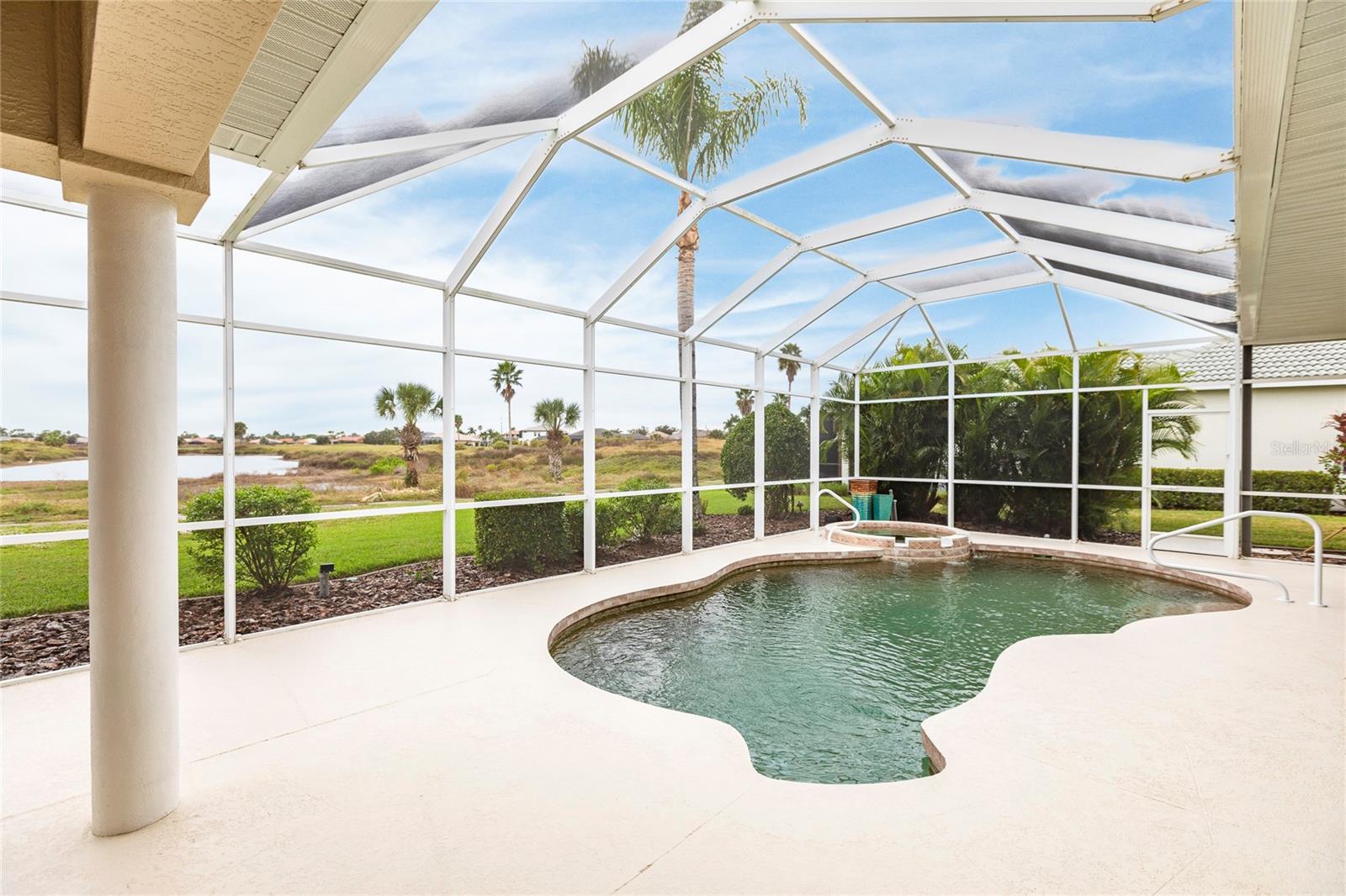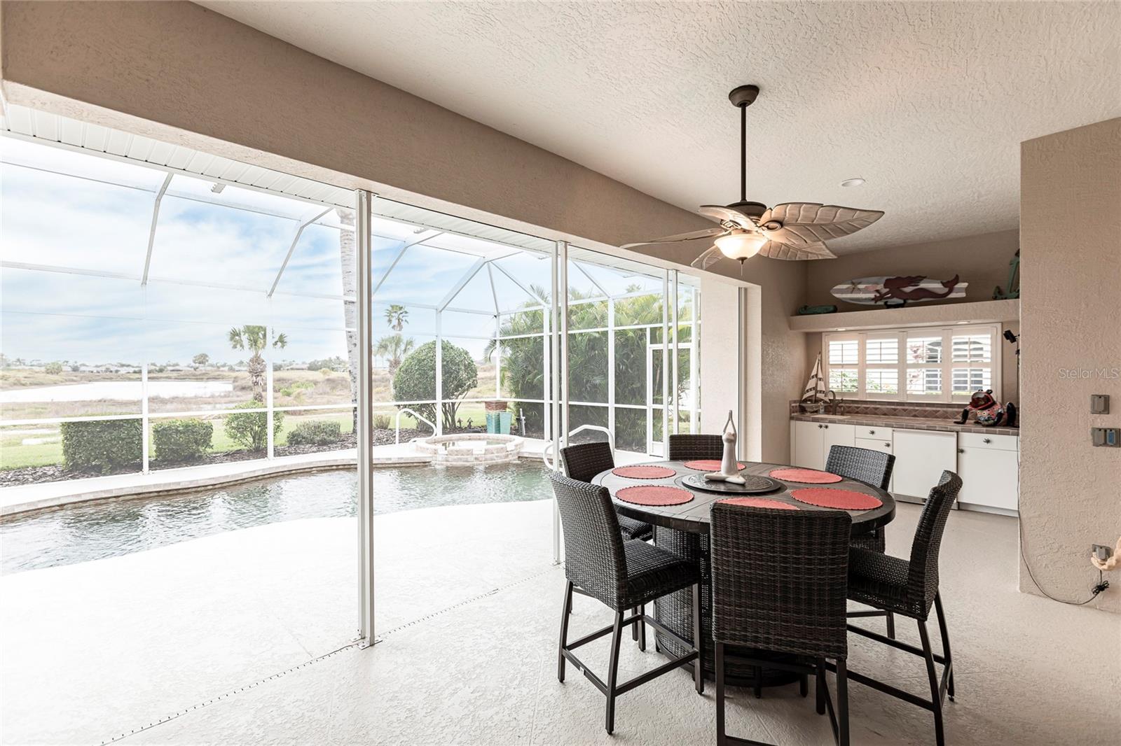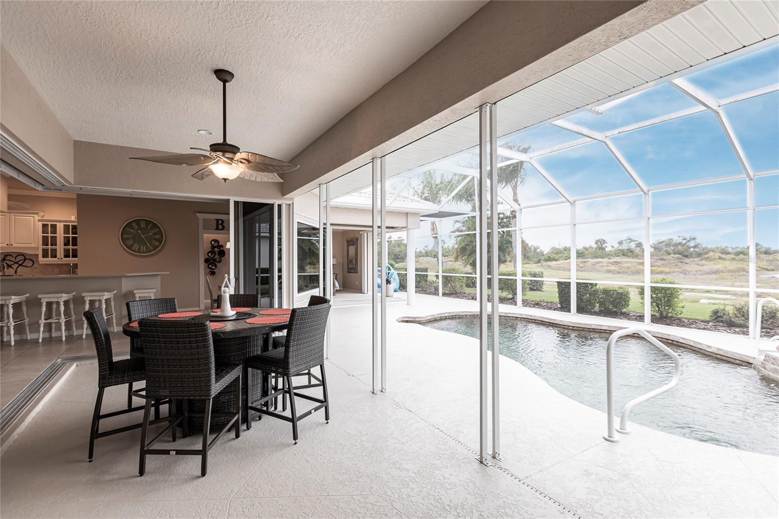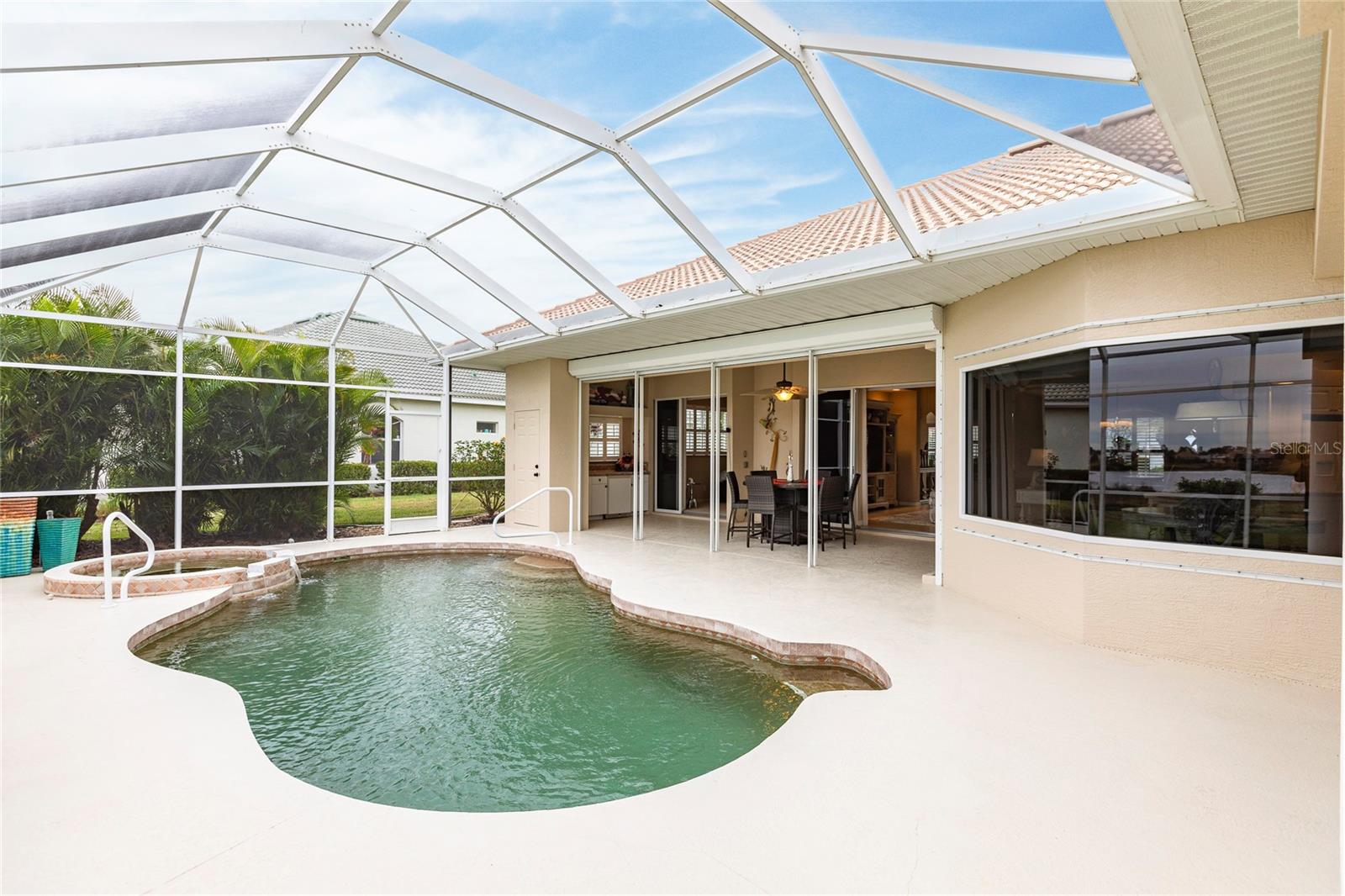 Welcome to your dream home! This impeccable 3-bedroom, 2-bathroom residence is the perfect "10" you've been searching for. From the exterior to the interior, every detail has been attended to, ensuring a hassle-free move-in experience. The exterior boasts recent upgrades, including a fresh coat of paint, a meticulously inspected roof, and a newly rescreened lanai. As you step inside, prepare to be amazed by the thoughtful renovations and modern updates that await you. The interior showcases a seamless open floor plan, accentuated by all-new light fixtures that illuminate the space with a warm and welcoming ambiance. The kitchen features a brand-new fridge and disposal, and new cabinets and granite countertops have been added in the oversized laundry room--perfect for both practicality and style. Storage is no longer a concern, thanks to the abundance of space throughout the home. The larger lanai provides an ideal spot to relax and enjoy breathtaking sunset evenings, complete with a covered space to savor your favorite beverage. Your private oasis continues outside with a beautiful pool equipped with a new pump and heater, ensuring year-round enjoyment. Say goodbye to worries and hello to relaxation as all the essential maintenance has been taken care of for you. This home even has a built-in security system and hurricane protection of hurricane windows, roll downs, and shutters! Located in the vibrant Bobcat Trail community, you'll have access to a lively and active environment, offering amenities such as tennis, pickleball, and various community events. This neighborhood is not just a place to live; it's a community-minded haven. Your search for the perfect home ends here! Don't miss out on the opportunity to make this exceptional property in Bobcat Trail your own. Schedule a showing today and experience the epitome of comfortable, worry-free living!