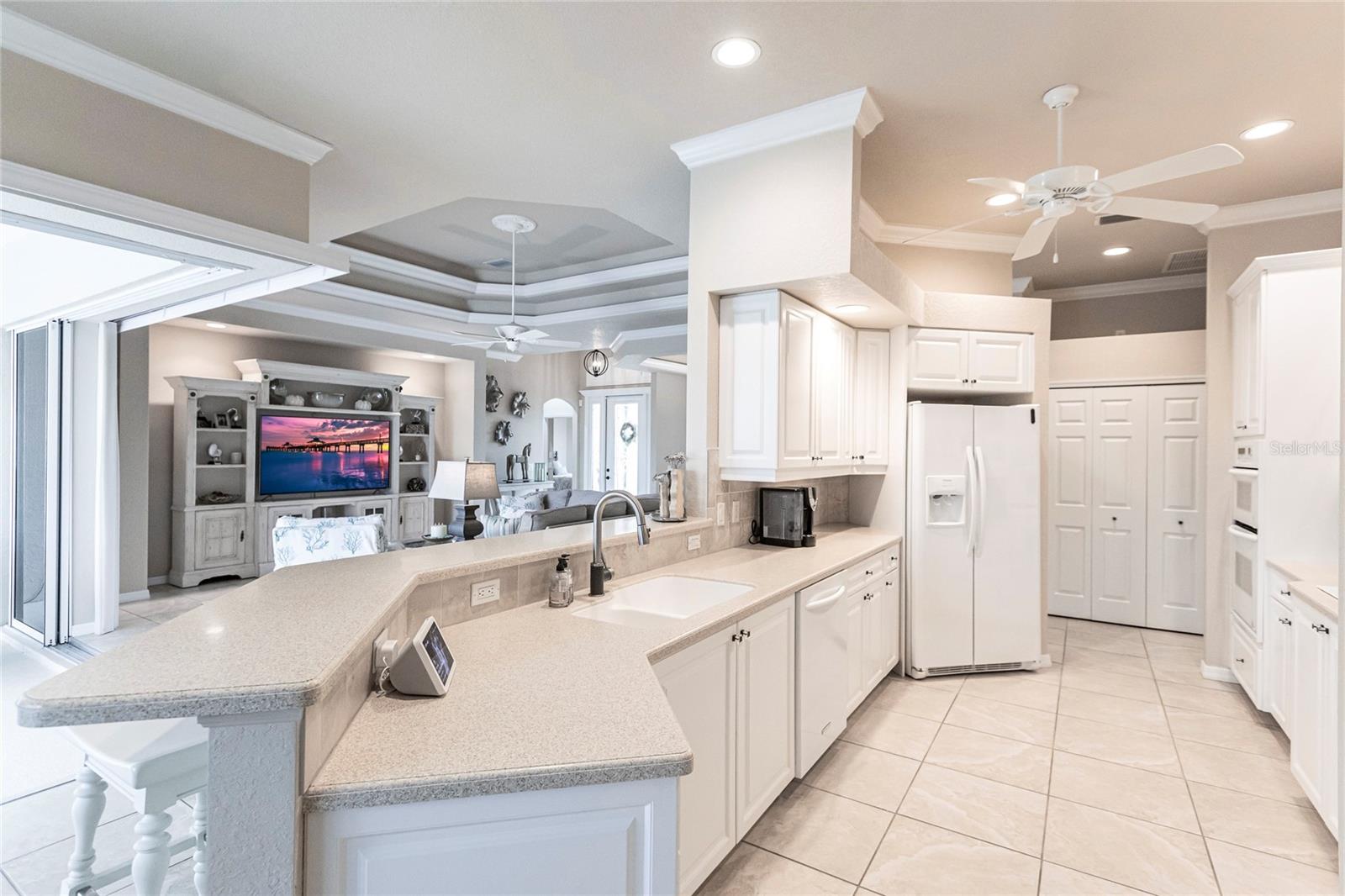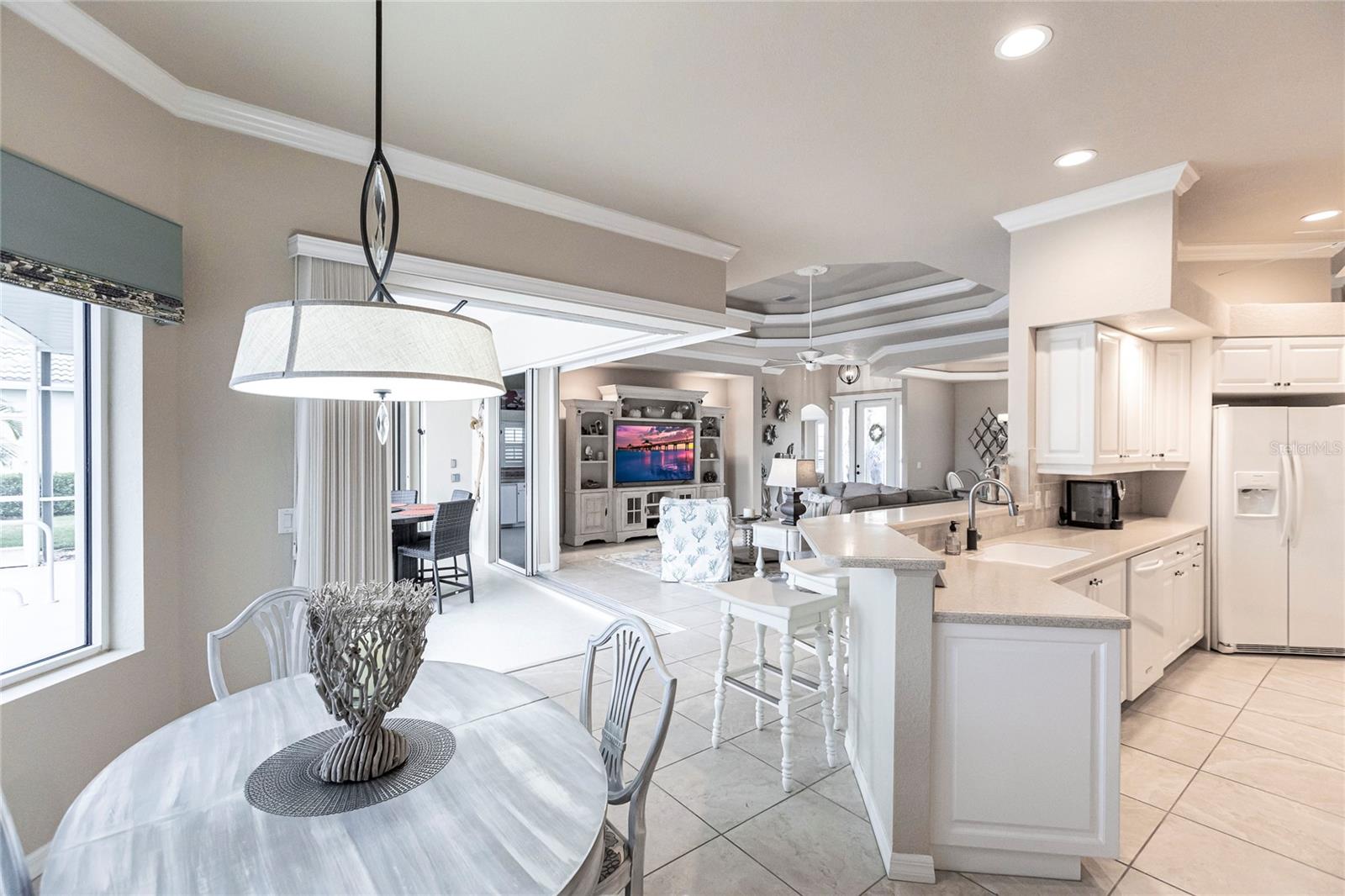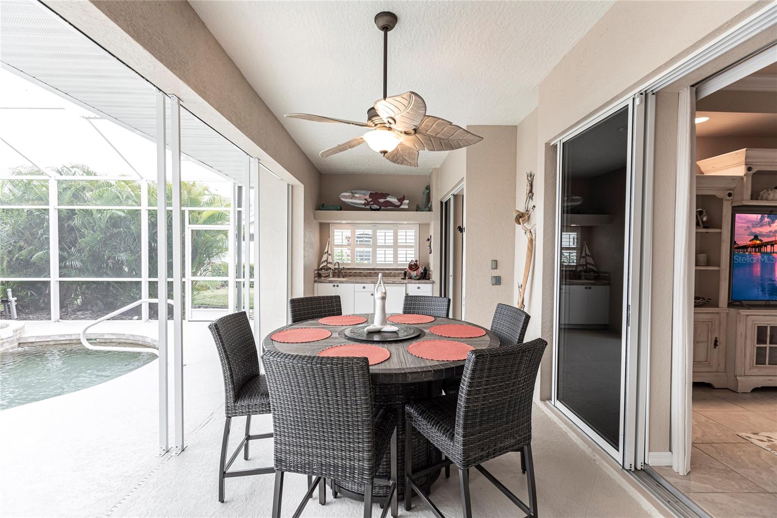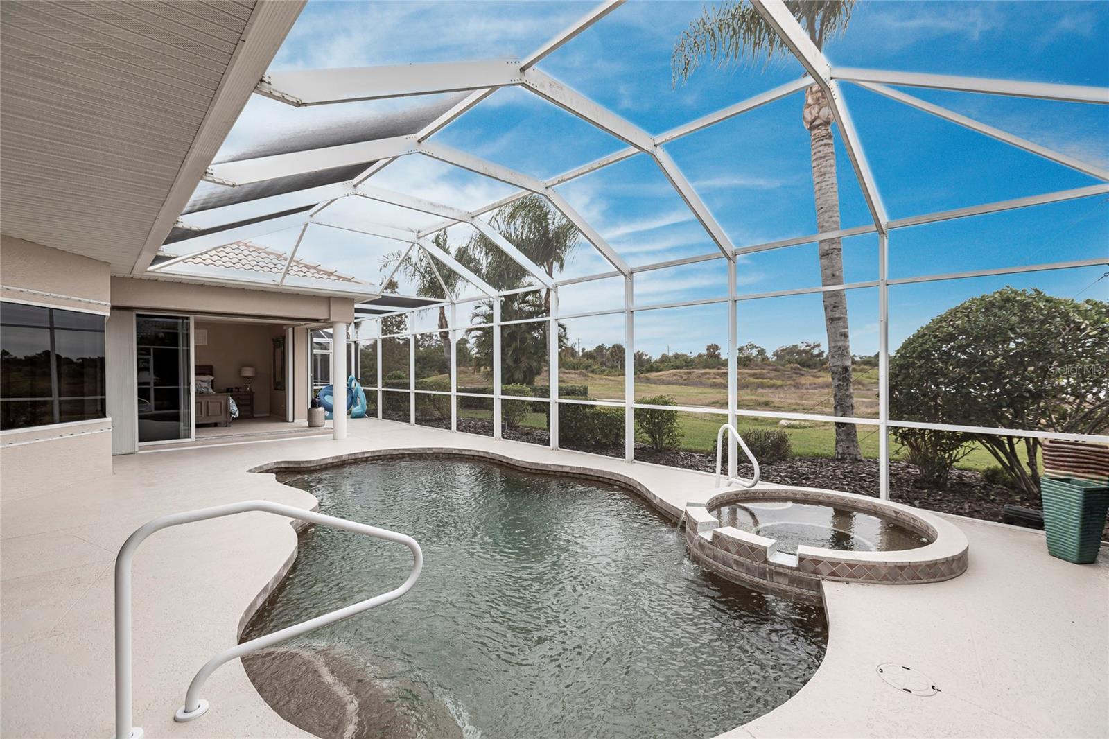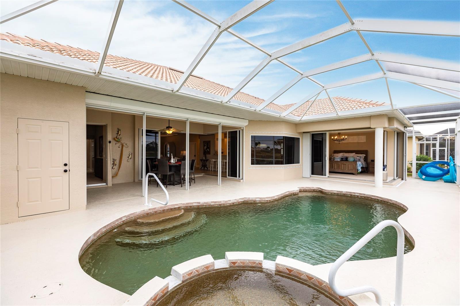Welcome to your dream home! This impeccable 3-bedroom, 2-bathroom residence is the perfect "10" you've been searching for. From the exterior to the interior, every detail has been attended to, ensuring a hassle-free move-in experience. The exterior boasts recent upgrades, including a fresh coat of paint, a meticulously inspected roof, and a newly rescreened lanai. As you step inside, prepare to be amazed by the thoughtful renovations and modern updates that await you. The interior showcases a seamless open floor plan, accentuated by all-new light fixtures that illuminate the space with a warm and welcoming ambiance. The kitchen features a brand-new fridge and disposal, and new cabinets and granite countertops have been added in the oversized laundry room--perfect for both practicality and style. Storage is no longer a concern, thanks to the abundance of space throughout the home. The larger lanai provides an ideal spot to relax and enjoy breathtaking sunset evenings, complete with a covered space to savor your favorite beverage. Your private oasis continues outside with a beautiful pool equipped with a new pump and heater, ensuring year-round enjoyment. Say goodbye to worries and hello to relaxation as all the essential maintenance has been taken care of for you. This home even has a built-in security system and hurricane protection of hurricane windows, roll downs, and shutters! Located in the vibrant Bobcat Trail community, you'll have access to a lively and active environment, offering amenities such as tennis, pickleball, and various community events. This neighborhood is not just a place to live; it's a community-minded haven. Your search for the perfect home ends here! Don't miss out on the opportunity to make this exceptional property in Bobcat Trail your own. Schedule a showing today and experience the epitome of comfortable, worry-free living!