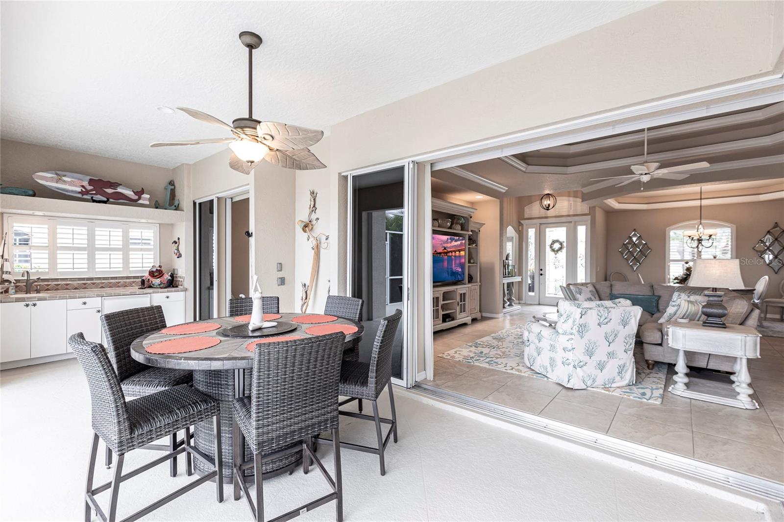 - Exterior: Hurricane Shutters, Irrigation System, Lighting, Private Mailbox, Sidewalk, Sliding Doors