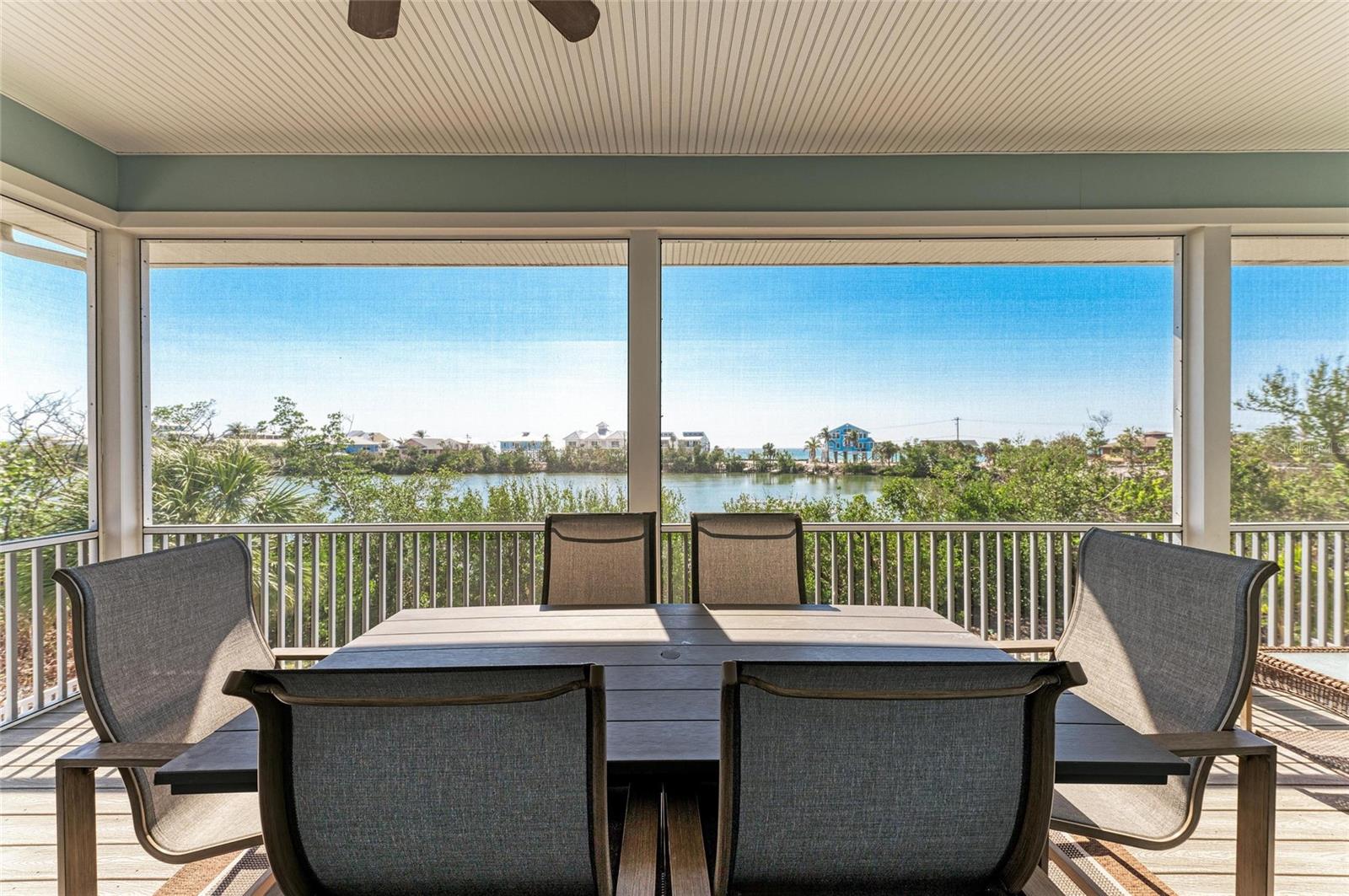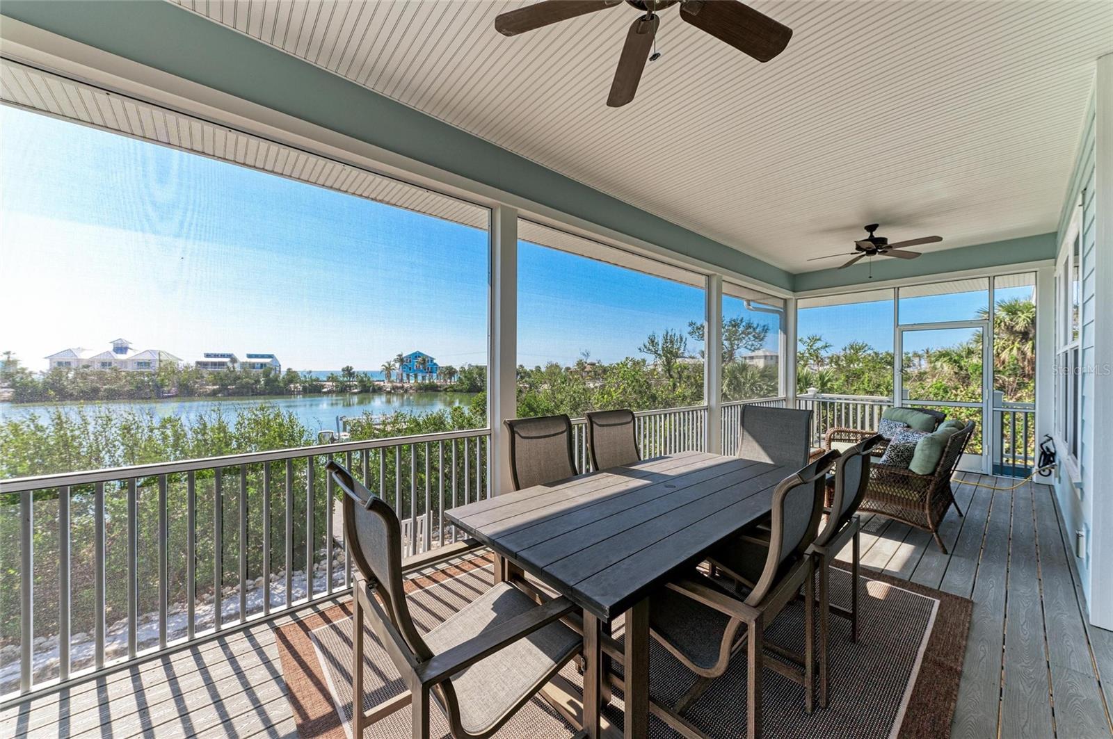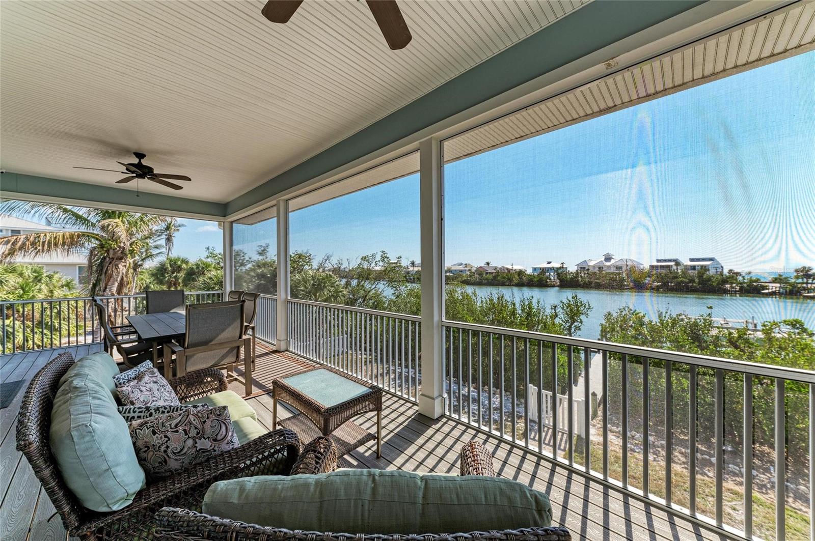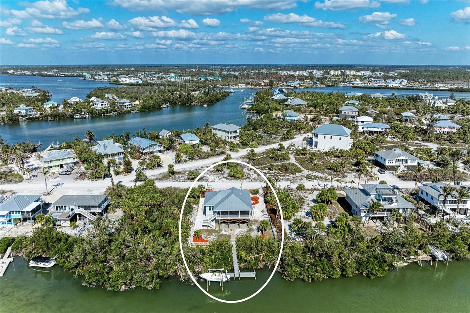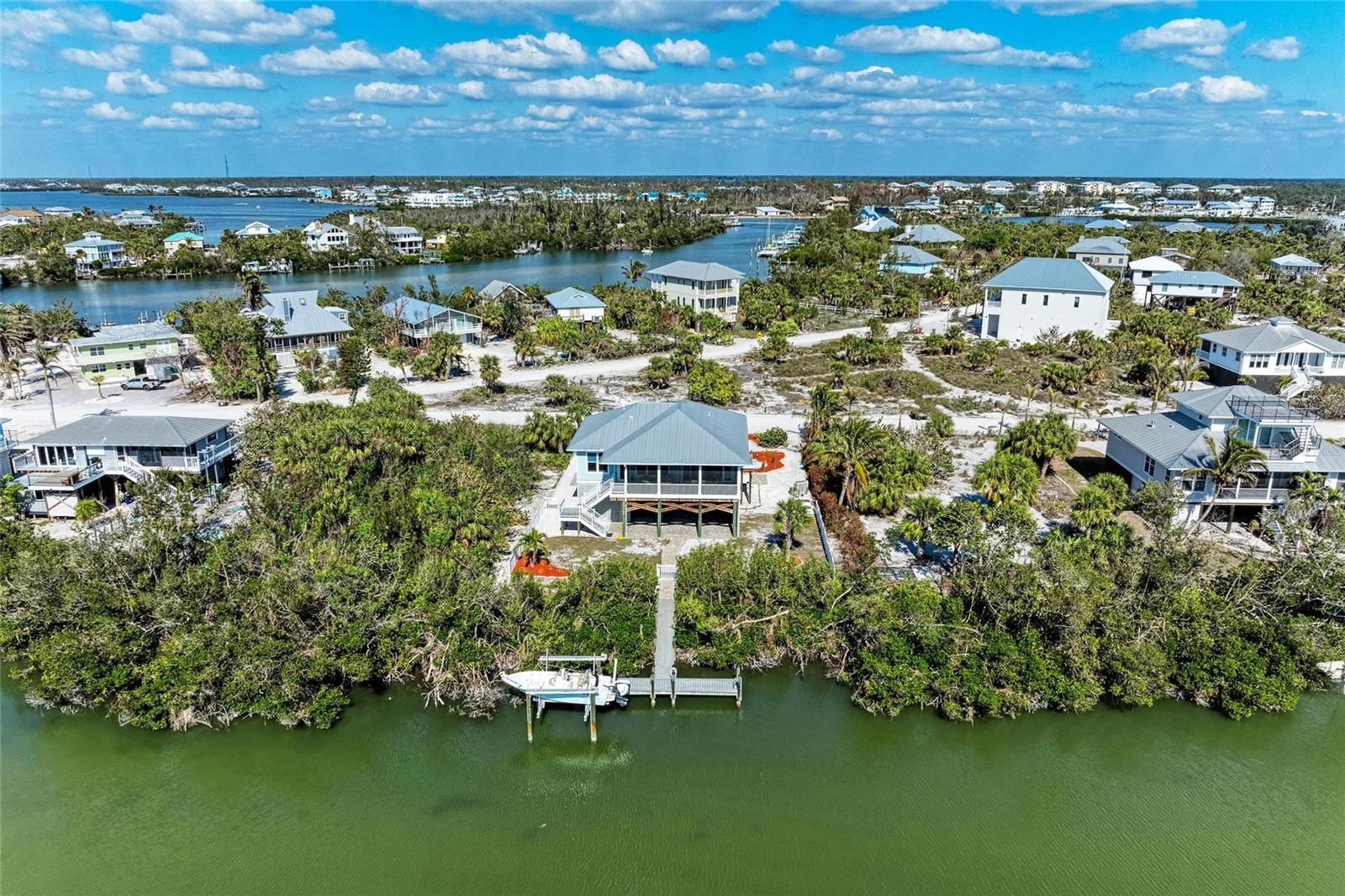 Welcome to this lovely 3-bedroom, 2-bath home, constructed in 2018 and located in the highly sought-after Palm Island Estates. This property provides effortless access to the Intracoastal Waterway and the Gulf of America, making it an ideal retreat for boating enthusiasts. Only a short walk away from the beautiful white sand beaches of Don Pedro Island, perfect for soaking up the sun and enjoying the peaceful coastal ambiance. As you enter this exquisite home, you'll be welcomed by impressive 10-foot ceilings embellished with crown molding and sophisticated tray ceilings. The interior showcases 8-foot doors and stunning Duchateau French Oak 6" wood plank flooring, which adds both warmth and charm. An abundance of windows and a sliding glass door open up to a generous 30' x 12' screened lanai, perfectly positioned for western exposure to capture breathtaking sunset views over Bocilla Lagoon. The custom kitchen is a true culinary delight, featuring elegant granite countertops, high-end stainless steel appliances, and a gas range complete with a convenient pot filler and hood. A walk-in pantry offers ample storage, while the island--with its large sink and bar seating--creates a seamless flow between the kitchen, living, and dining areas, ideal for hosting gatherings. The master bedroom serves as a tranquil retreat, boasting a spacious walk-in closet. The master bath is designed for ultimate relaxation, offering dual sinks with granite countertops, a luxurious soaking tub, and a roomy designer shower adorned with stylish subway tiles. The second bath/powder room is equally impressive, featuring chic subway tiles, Italian natural stone flooring, and a granite countertop. This home also comes equipped with designer fans, elegant lighting fixtures, and high-quality faucets throughout, as well as a security system for added peace of mind. Impact glass windows and doors enhance durability and safety, while a designated area for a future elevator adds convenience for years to come. This residence truly marries luxury with functionality!This home features a strong and durable exterior, complete with a metal roof, impact-rated windows, and resilient hardy board siding. The spacious deck and stairways are equipped with track railings and WeatherBest decking, providing both safety and aesthetic appeal. A beautifully paved driveway leads to an open garage and an under-home area, which includes a shower, pre-wired generator hookup, and 792 sq. ft. of enclosed storage space. The extra area beneath the home presents fantastic opportunities for future upgrades, such as an outdoor summer kitchen, and there's plenty of room for a pool in the fenced backyard. Step out onto the 296 sq. ft. dock, also featuring WeatherBest decking, where you can take advantage of a 10,000-pound boat lift and freshwater spicket. Enhanced by thoughtfully designed landscaping, the striking exterior elevation gives this property a refined island charm that truly sets it apart. Discover the best of waterfront living in this enchanting home!BE SURE TO CLICK THE FULL VIRTUAL TOUR LINKS FOR DETAILS!