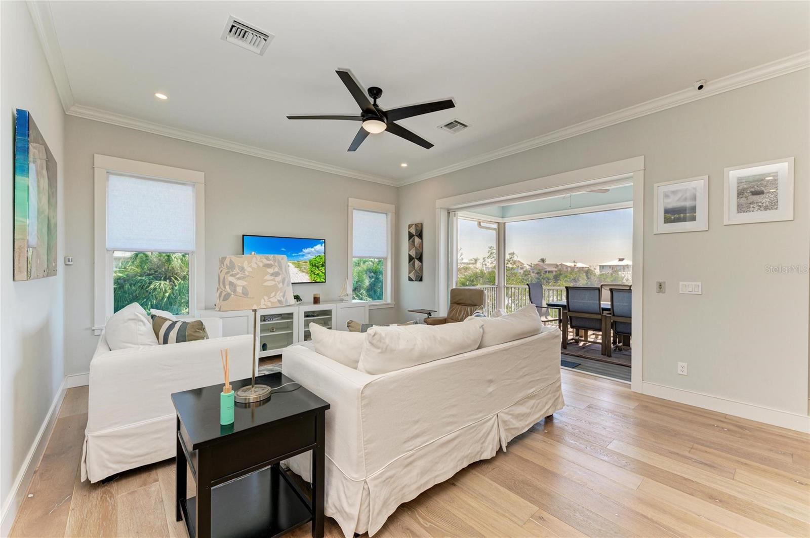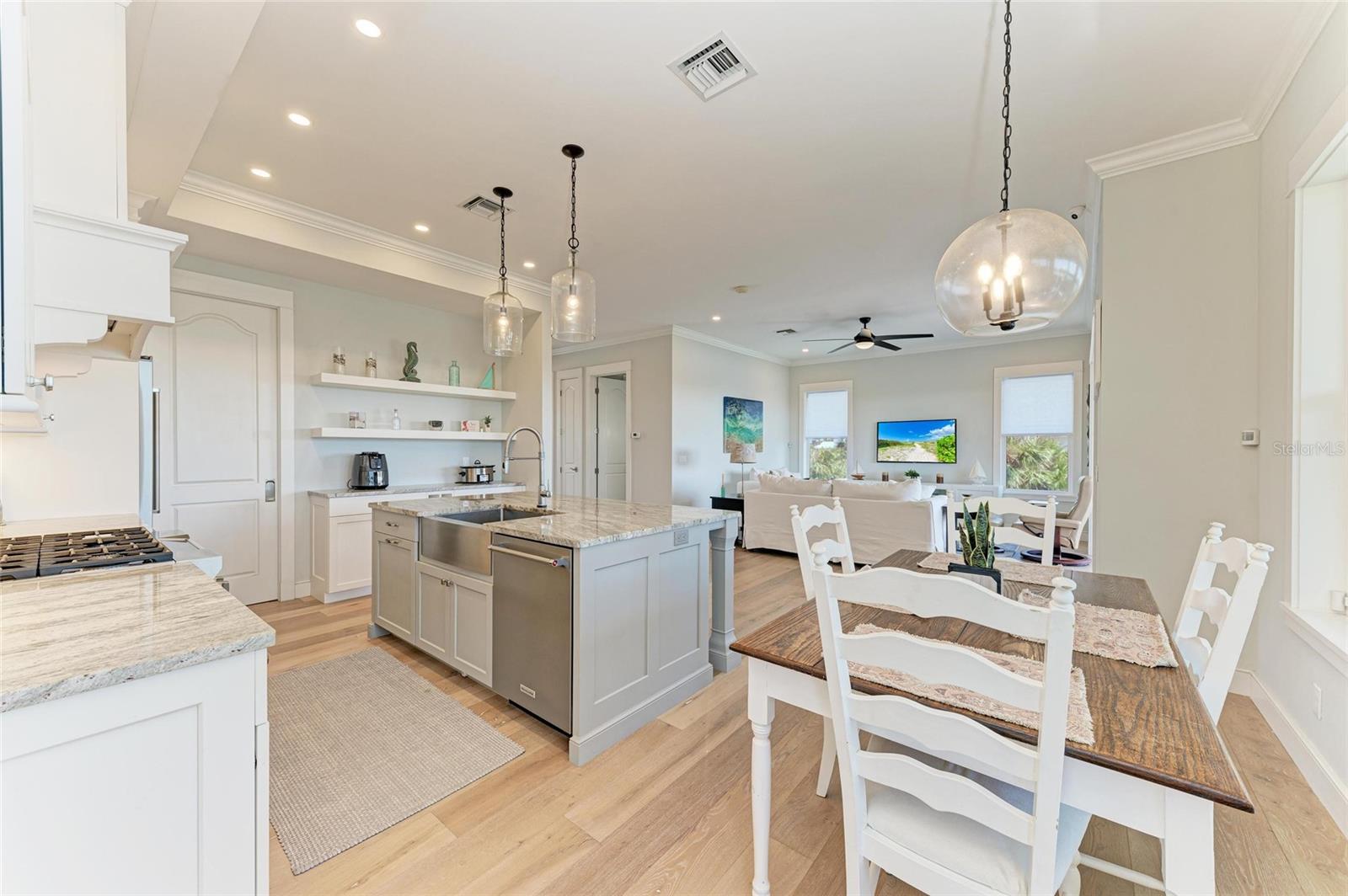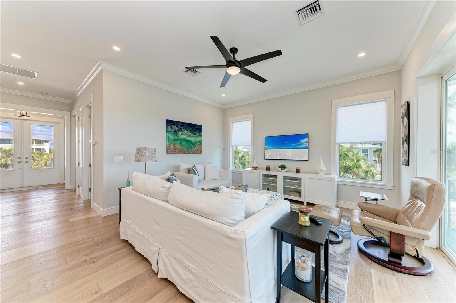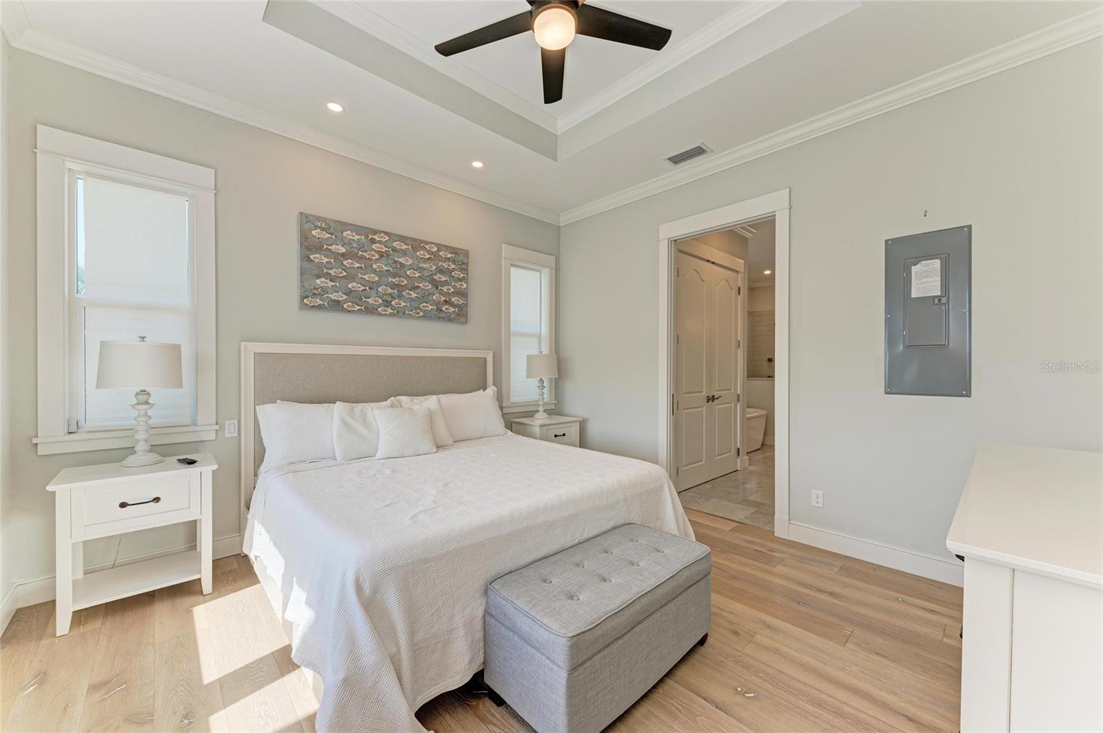 Welcome to this lovely 3-bedroom, 2-bath home, constructed in 2018 and located in the highly sought-after Palm Island Estates. This property provides effortless access to the Intracoastal Waterway and the Gulf of America, making it an ideal retreat for boating enthusiasts. Only a short walk away from the beautiful white sand beaches of Don Pedro Island, perfect for soaking up the sun and enjoying the peaceful coastal ambiance. As you enter this exquisite home, you'll be welcomed by impressive 10-foot ceilings embellished with crown molding and sophisticated tray ceilings. The interior showcases 8-foot doors and stunning Duchateau French Oak 6" wood plank flooring, which adds both warmth and charm. An abundance of windows and a sliding glass door open up to a generous 30' x 12' screened lanai, perfectly positioned for western exposure to capture breathtaking sunset views over Bocilla Lagoon. The custom kitchen is a true culinary delight, featuring elegant granite countertops, high-end stainless steel appliances, and a gas range complete with a convenient pot filler and hood. A walk-in pantry offers ample storage, while the island--with its large sink and bar seating--creates a seamless flow between the kitchen, living, and dining areas, ideal for hosting gatherings. The master bedroom serves as a tranquil retreat, boasting a spacious walk-in closet. The master bath is designed for ultimate relaxation, offering dual sinks with granite countertops, a luxurious soaking tub, and a roomy designer shower adorned with stylish subway tiles. The second bath/powder room is equally impressive, featuring chic subway tiles, Italian natural stone flooring, and a granite countertop. This home also comes equipped with designer fans, elegant lighting fixtures, and high-quality faucets throughout, as well as a security system for added peace of mind. Impact glass windows and doors enhance durability and safety, while a designated area for a future elevator adds convenience for years to come. This residence truly marries luxury with functionality!This home features a strong and durable exterior, complete with a metal roof, impact-rated windows, and resilient hardy board siding. The spacious deck and stairways are equipped with track railings and WeatherBest decking, providing both safety and aesthetic appeal. A beautifully paved driveway leads to an open garage and an under-home area, which includes a shower, pre-wired generator hookup, and 792 sq. ft. of enclosed storage space. The extra area beneath the home presents fantastic opportunities for future upgrades, such as an outdoor summer kitchen, and there's plenty of room for a pool in the fenced backyard. Step out onto the 296 sq. ft. dock, also featuring WeatherBest decking, where you can take advantage of a 10,000-pound boat lift and freshwater spicket. Enhanced by thoughtfully designed landscaping, the striking exterior elevation gives this property a refined island charm that truly sets it apart. Discover the best of waterfront living in this enchanting home!BE SURE TO CLICK THE FULL VIRTUAL TOUR LINKS FOR DETAILS!
