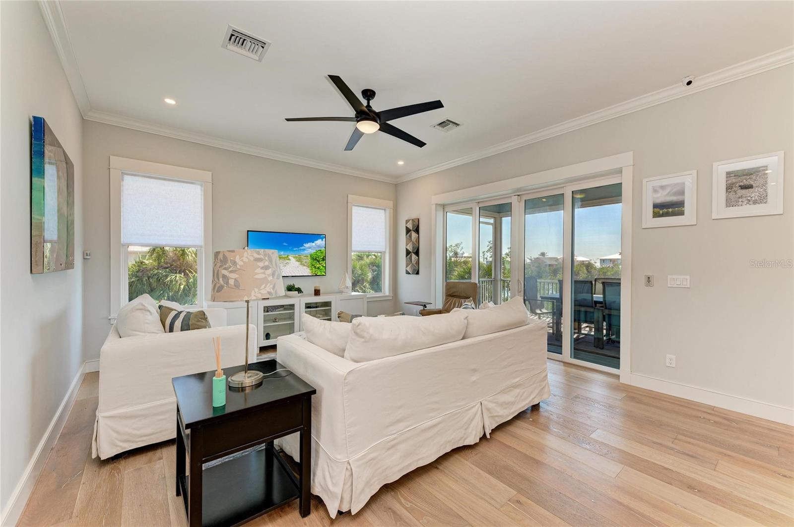 - Exterior: Balcony, Lighting, Outdoor Shower, Rain Gutters, Sliding Doors, Storage