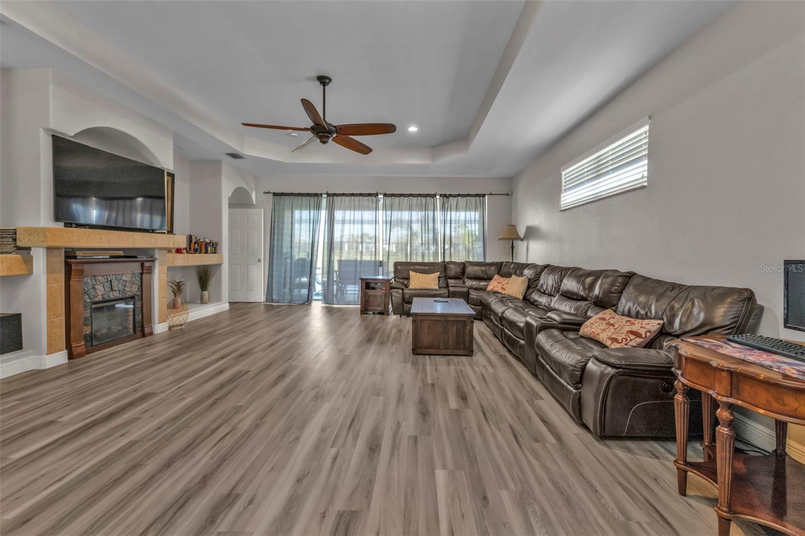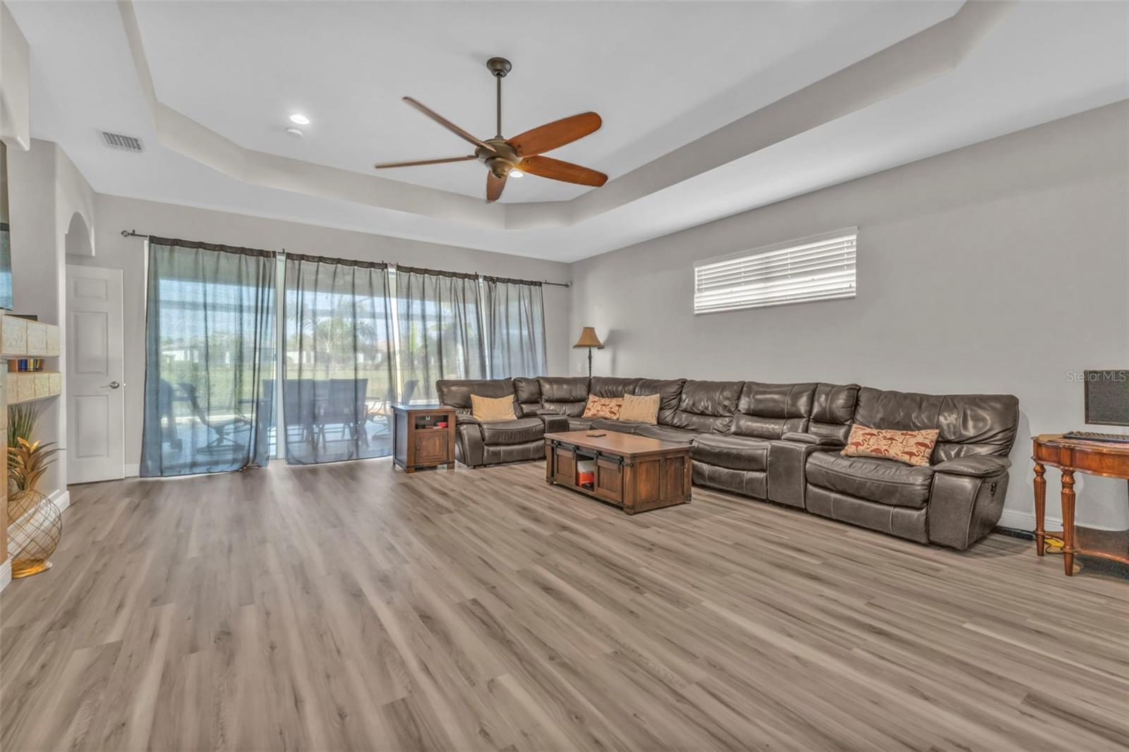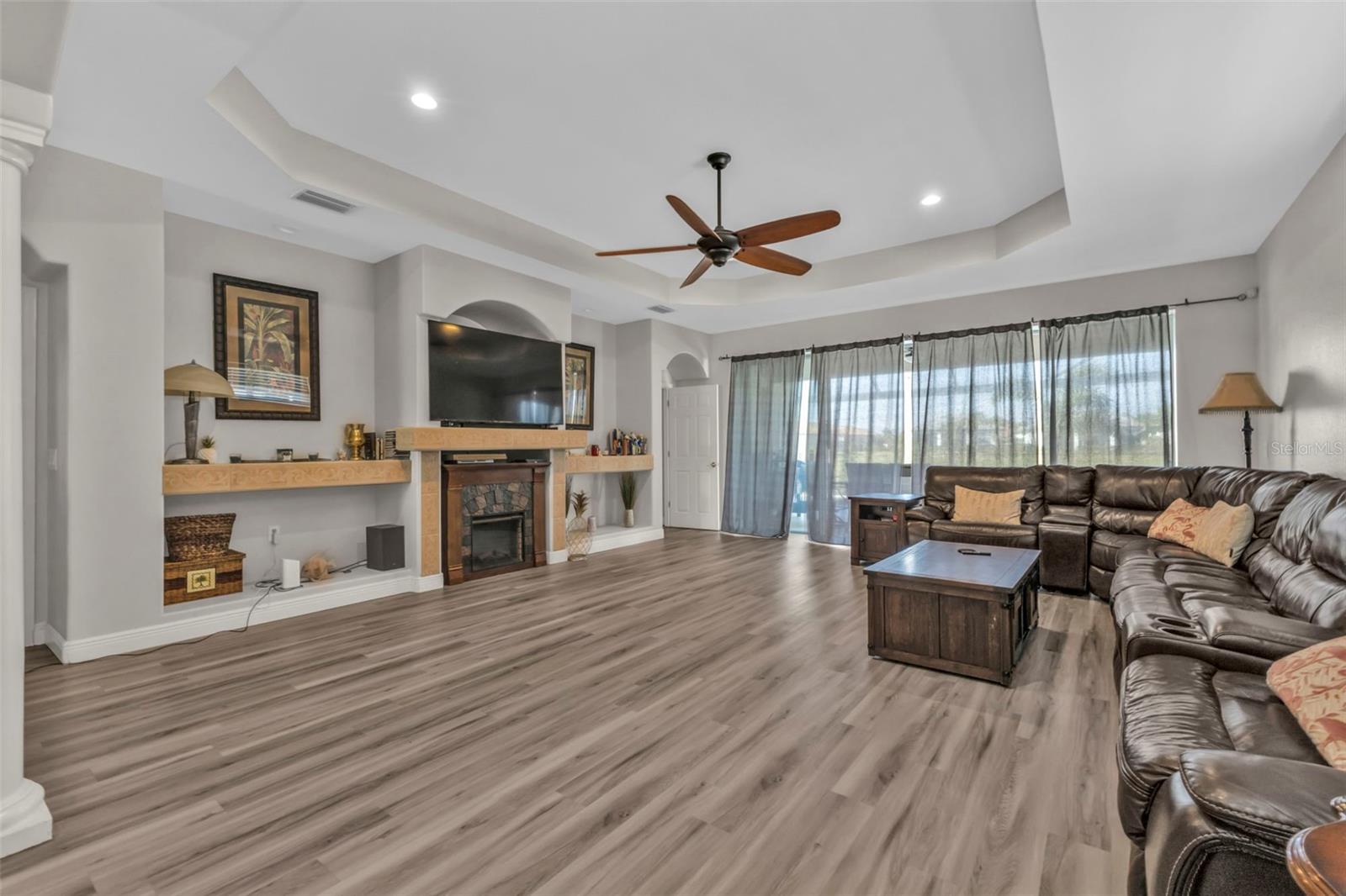 SELLER SAYS SELL! Best priced pool home in NORTH PORT OR LAKESIDE! Beautiful LARGE POOL home with an ENORMOUS GREAT ROOM that is perfect for entertaining or for those just looking for extra space! Located in the highly sought after lakeside Planttion! BraND NEW POOL CAGE AND EXTENTION ON LANAI! Gorgeous LAKE VIEW with plenty of privacy. This is a unique floor plan with a split bedroom layout. A columned archway separates the dining and living room areas. The living room features a beautiful built-in entertainment center, tray ceiling plus a 4-panel pocket slider which opens to the lanai and pool area! Spacious kitchen with large breakfast bar, 42" solid wood cabinets, newer STAINLESS STEEL APPLIANCES and DOUBLE PANTRIES for extra storage. New Driveway pavers installed in 2022, as well as new vacuum system for pool in 2022. To add the lanai was upgraded in 2023 with new pool cage, new extended concrete on the exterior of the lanai, hot tub and electrical installed in 2023, new irrigation controls and lines in 2023, pool deck newly painted in 2023 and new landscaping and upgrades! In 2024, new paver pathway to pool area installed, new range and BRAND NEW POOL PUMP! The master suite has a tray ceiling, large walk-in closet, dual sinks, garden tub, walk-in shower and pocket sliders which open up to the pool area! Soft, neutral colors throughout plus diagonal tile throughout the great room! No carpets to maintain as all bedrooms have wood laminate flooring. Upgraded AC and air handler with UV lighting. This is truly a UNIQUE home! Located in the Lakeside Plantation community. Amenities include a large, heated community pool and hot tub, tennis courts, fitness center, billiard room, basketball court, playground, card room, and a large clubhouse with WI-FI. Monthly social activities are planned for all ages! This is one of the rare homes located in the community that is NOT part of the HOA. There are no HOA fees required for this property - but you still have access to all of the amenities! All of the benefits and amenities of living in a community without the extra fees!