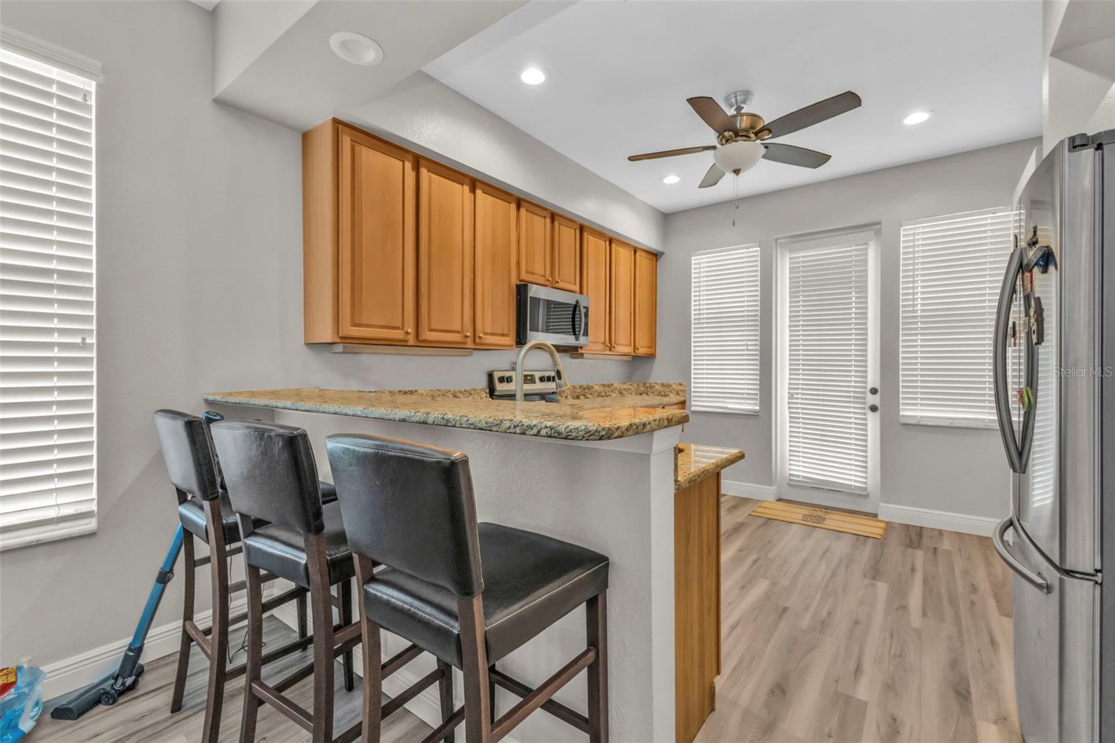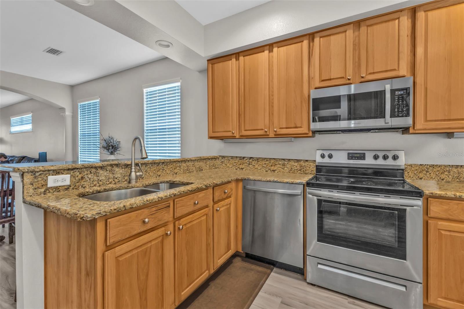 - Exterior: Lighting, Rain Gutters, Sidewalk, Sliding Doors