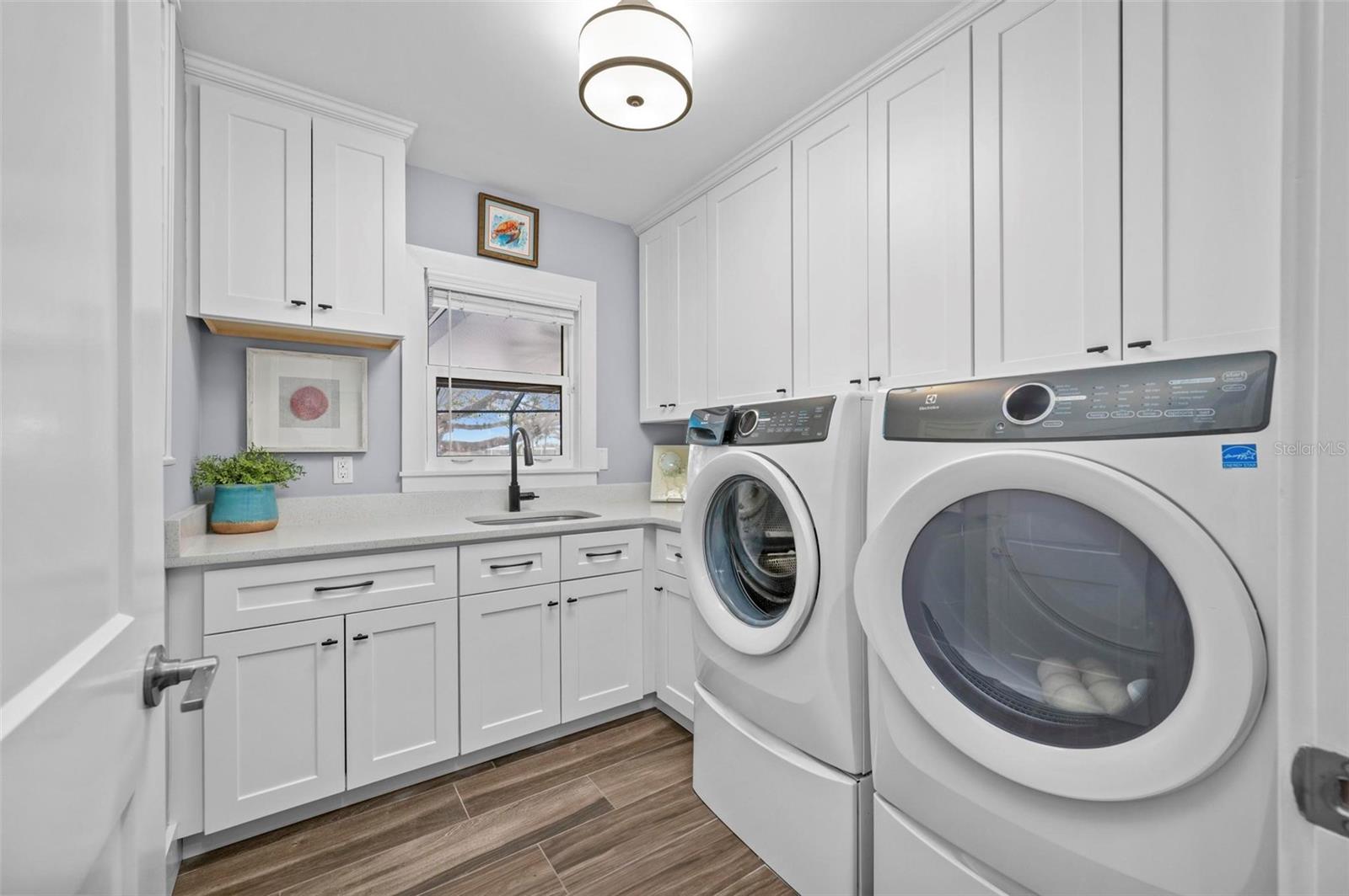 - Appliances: Built-In Oven, Dishwasher, Dryer, Electric Water Heater, Exhaust Fan, Microwave, Range, Refrigerator, Washer, Wine Refrigerator
