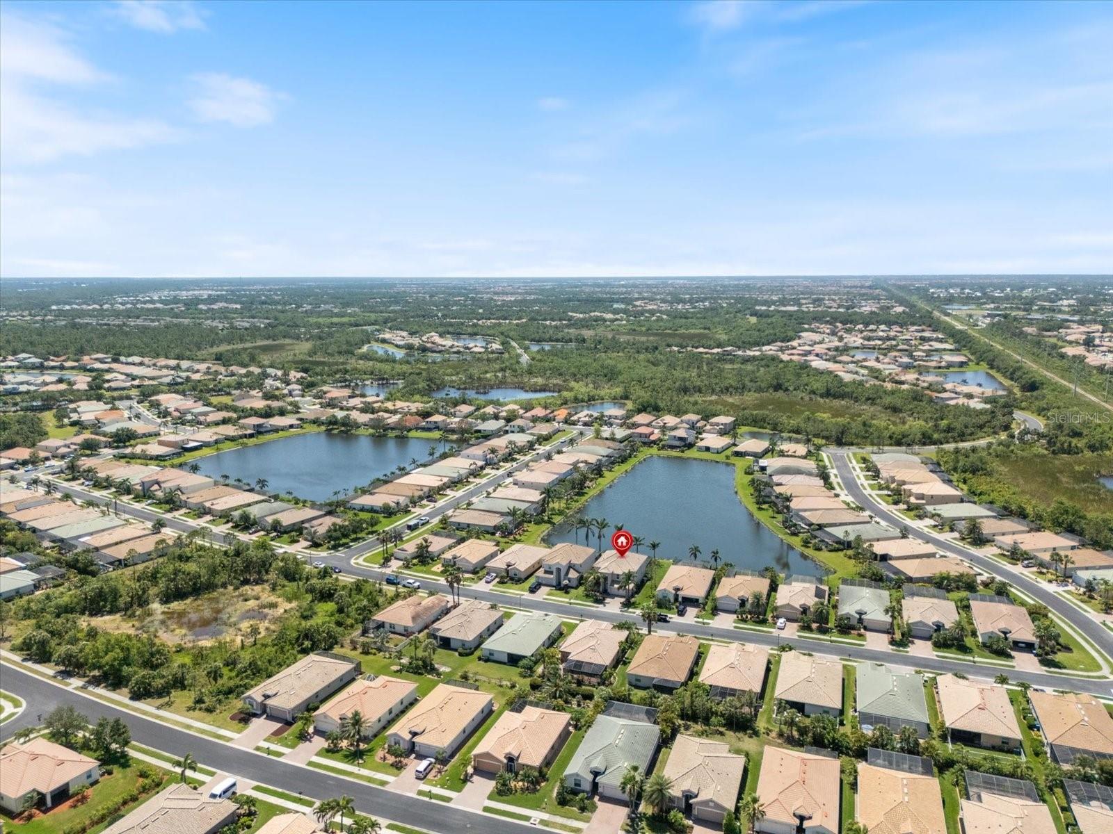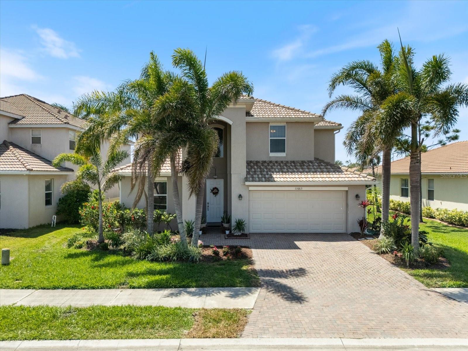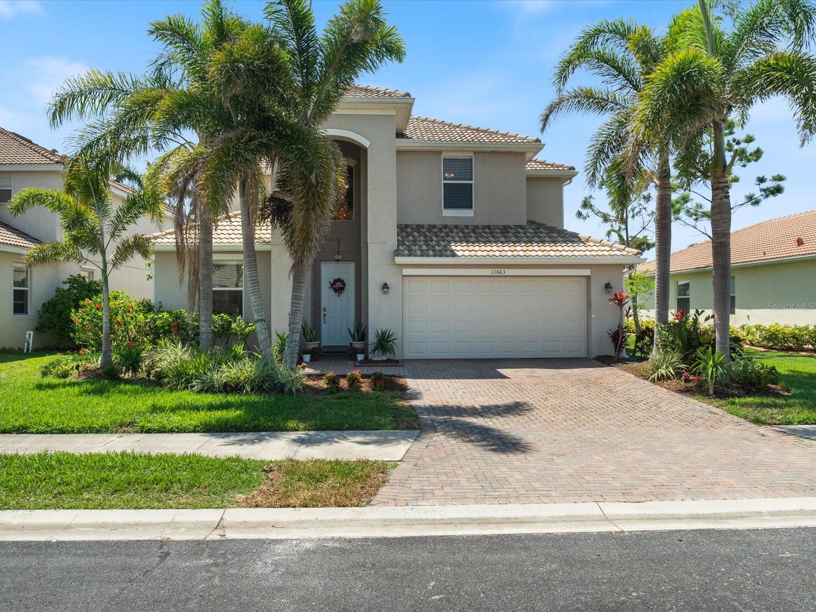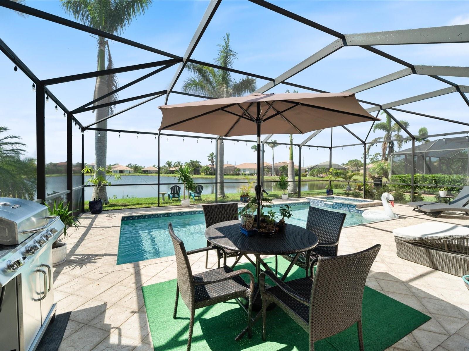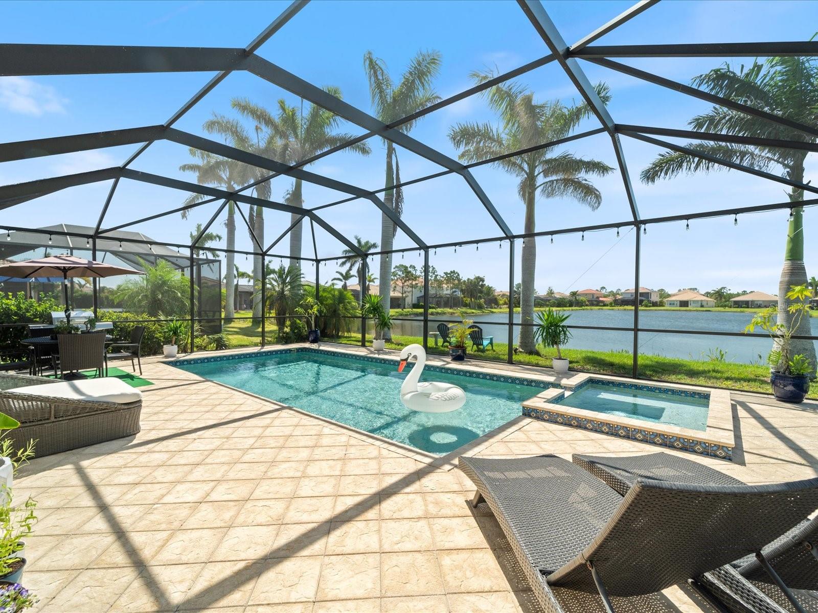 Two story 3280 sq. ft. home with 5 bedrooms 3 full baths, large bonus room, loft area, and a three car garage. A large lanai extends across the width of the house has a custom rectangular heated pool and a spa. The back of the house has a southern exposure great for lounging by the pool with a long view of the lake that is filled with largemouth bass for the Florida fisherman. The home is located in the Stoneybrook community in Venice which is a gated community with a guard at the gate. The house entrance has a high ceiling foyer with a large spectacular crystal chandelier which then opens into the living room, as well as dining room. The kitchen is bright and open to the oversized family room which has a view of the lake, and is great for entertaining. There is a bedroom and one bath downstairs with four bedrooms and two baths upstairs. The shower in the Primary's bedroom was enlarged and upgraded with one piece vinyl panels and a nonslip floor. Bonus room can be used for a gym, 2nd family room, study, office, or a movie-media room. This home has plenty of room for a large family, invited guests, in-law set up. There are four foxtail palms in front of the house and three large Royal palms in the back of the house. The community has a pool, spa, tennis courts, pickle ball courts, gym, baseball field, a community center, and is near beaches, hospitals, grocery stores, downtown Venice, and Wellen Park.