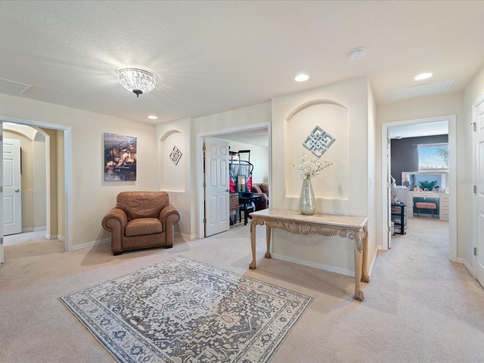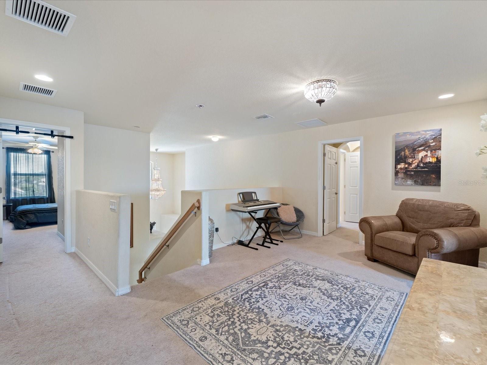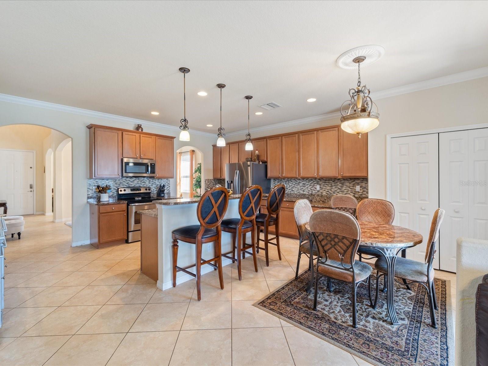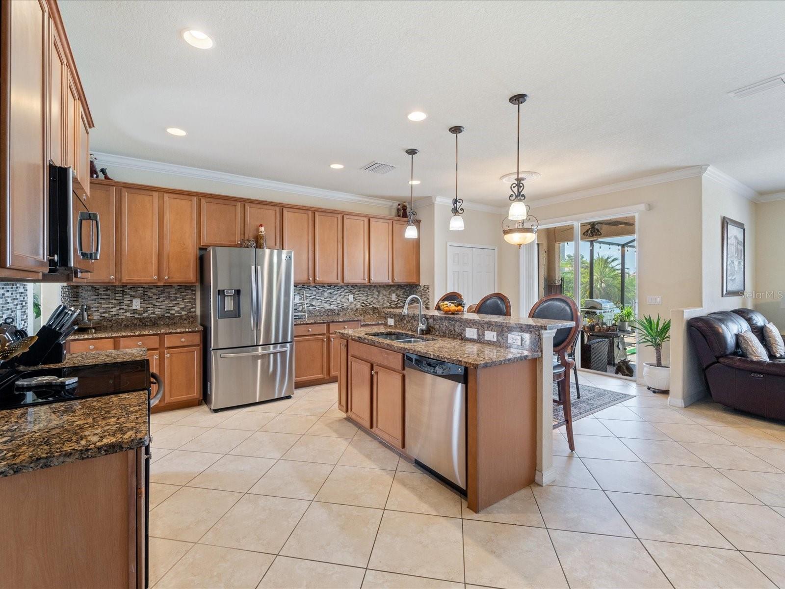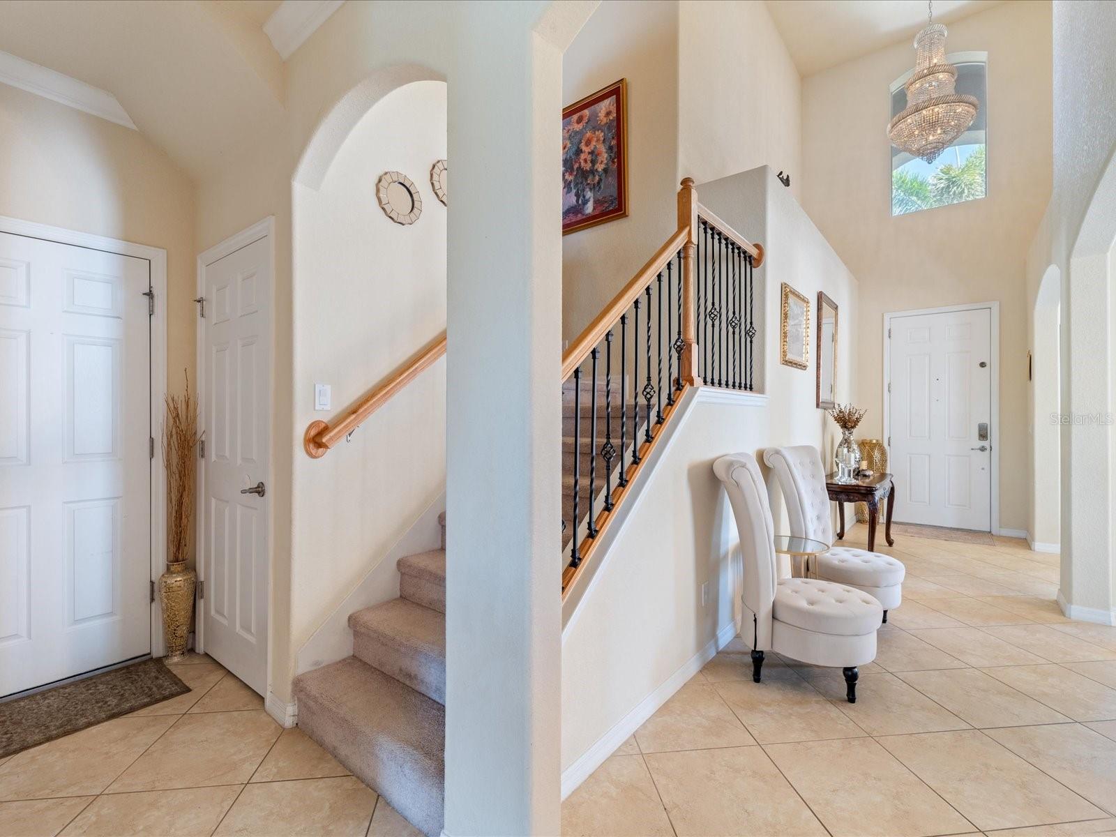 Two story 3280 sq. ft. home with 5 bedrooms 3 full baths, large bonus room, loft area, and a three car garage. A large lanai extends across the width of the house has a custom rectangular heated pool and a spa. The back of the house has a southern exposure great for lounging by the pool with a long view of the lake that is filled with largemouth bass for the Florida fisherman. The home is located in the Stoneybrook community in Venice which is a gated community with a guard at the gate. The house entrance has a high ceiling foyer with a large spectacular crystal chandelier which then opens into the living room, as well as dining room. The kitchen is bright and open to the oversized family room which has a view of the lake, and is great for entertaining. There is a bedroom and one bath downstairs with four bedrooms and two baths upstairs. The shower in the Primary's bedroom was enlarged and upgraded with one piece vinyl panels and a nonslip floor. Bonus room can be used for a gym, 2nd family room, study, office, or a movie-media room. This home has plenty of room for a large family, invited guests, in-law set up. There are four foxtail palms in front of the house and three large Royal palms in the back of the house. The community has a pool, spa, tennis courts, pickle ball courts, gym, baseball field, a community center, and is near beaches, hospitals, grocery stores, downtown Venice, and Wellen Park.