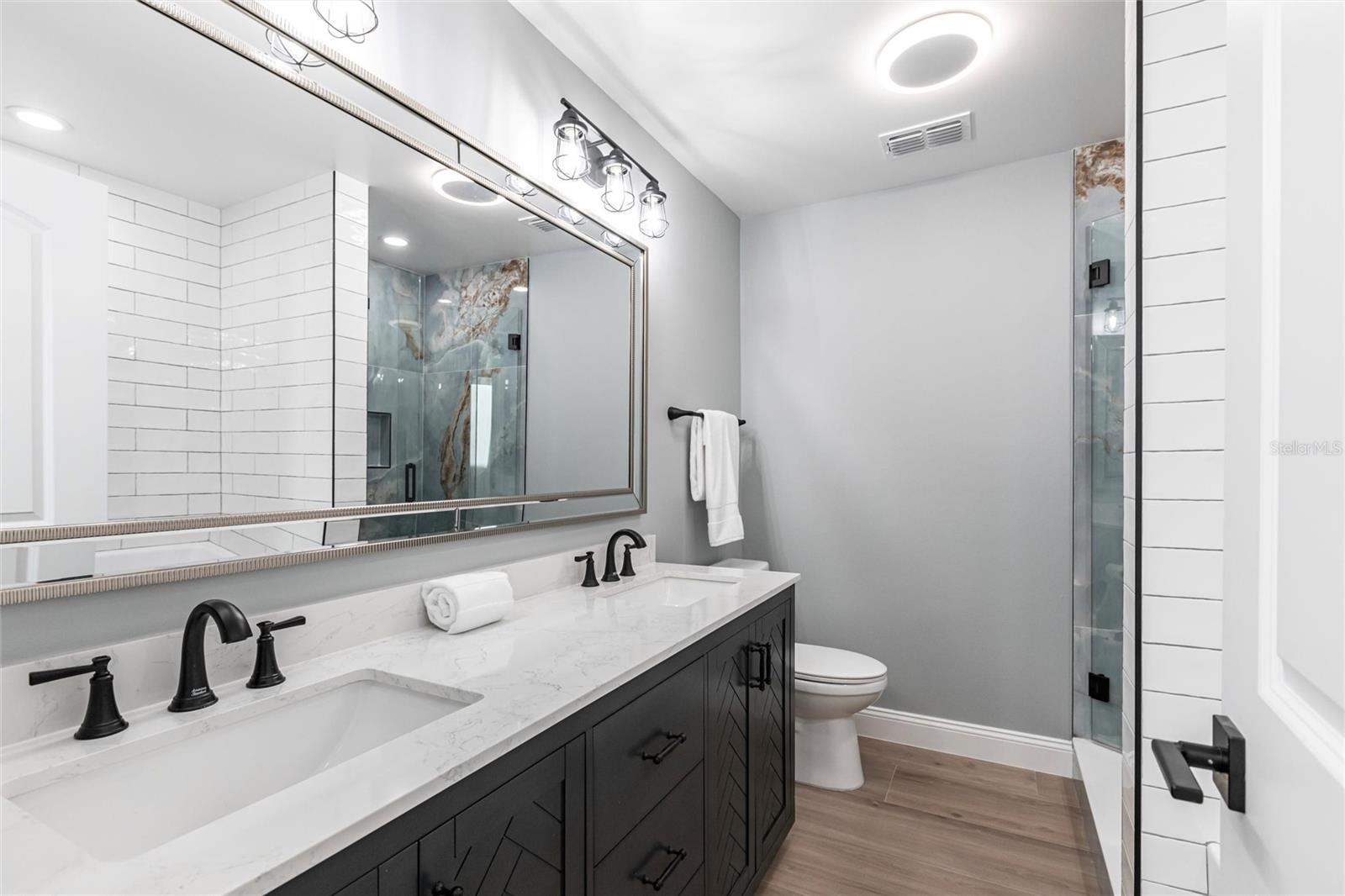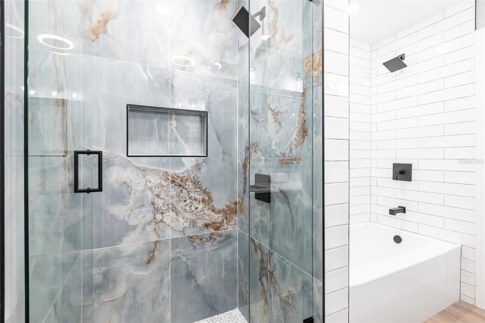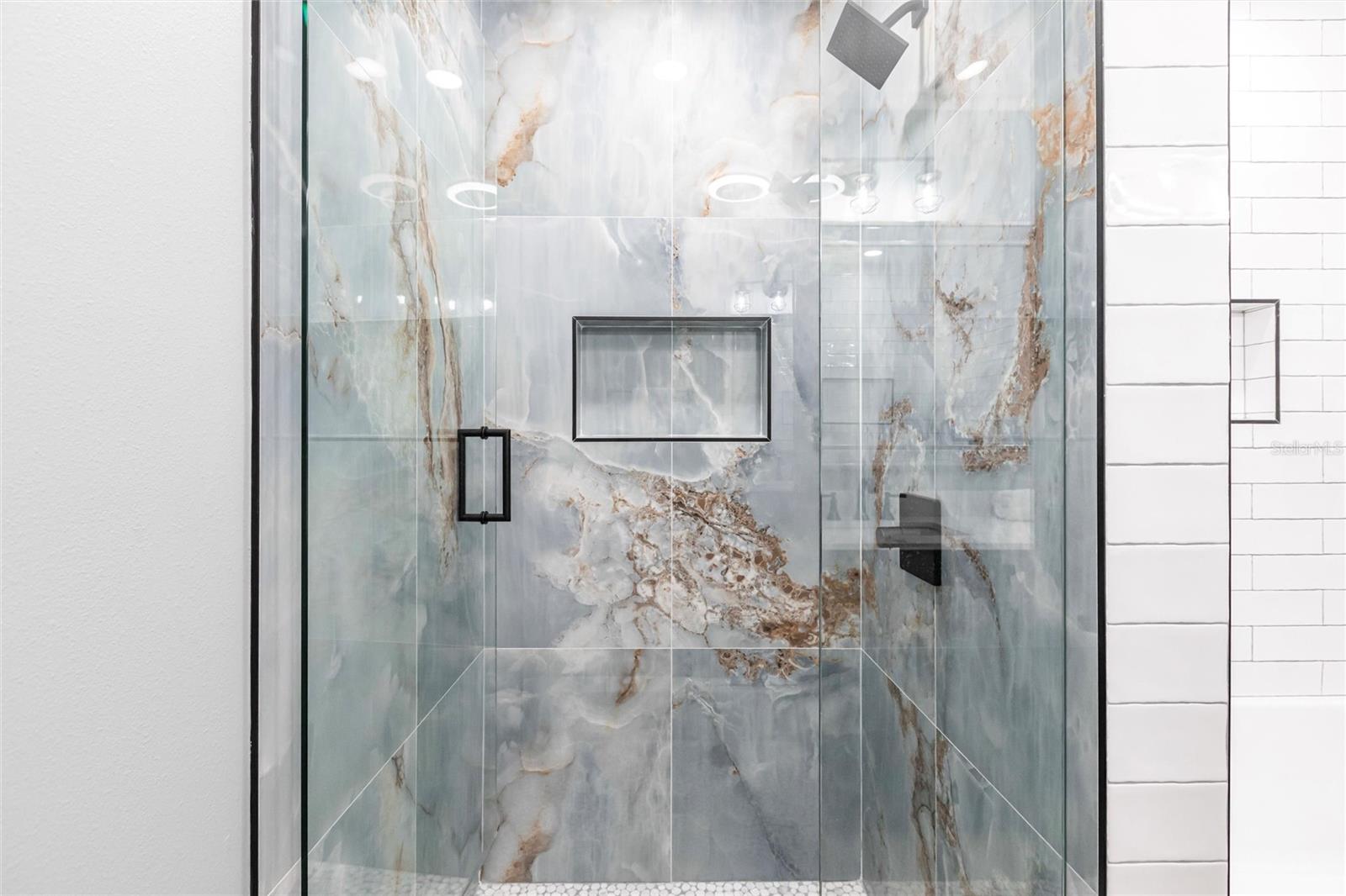 - Exterior: Outdoor Shower, Private Mailbox, Sidewalk, Sliding Doors